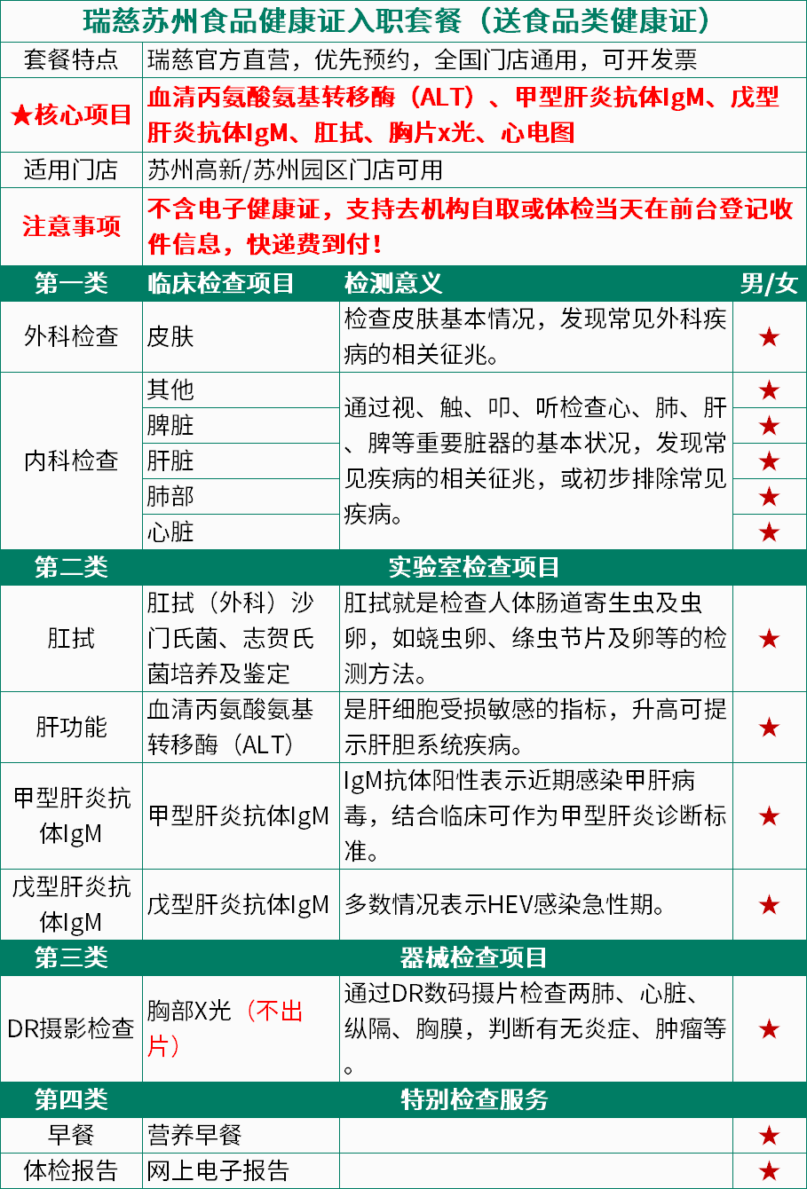 食品健康证入职体检套餐(苏州) 送食品健康证