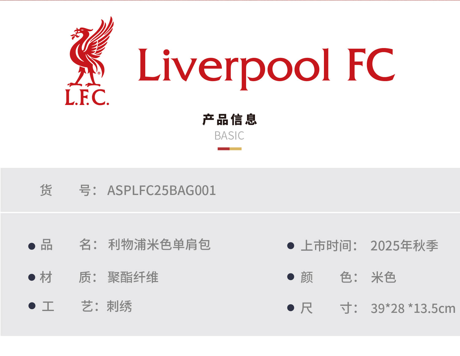 【官方正版】利物浦俱乐部 | 米色单肩包运动户外斜挎包