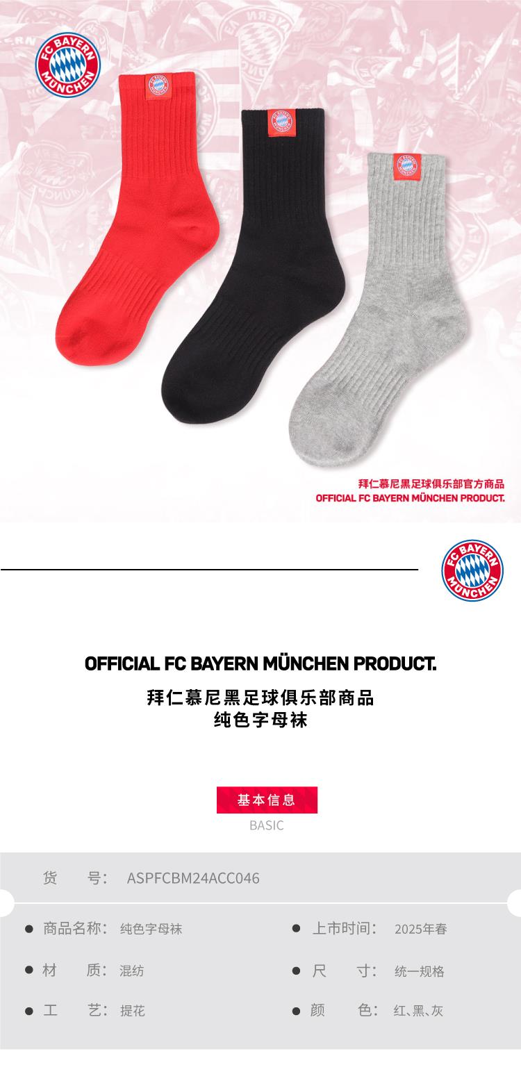 【官方正版】拜仁慕尼黑足球俱乐部 | 纯色字母针织袜袜子