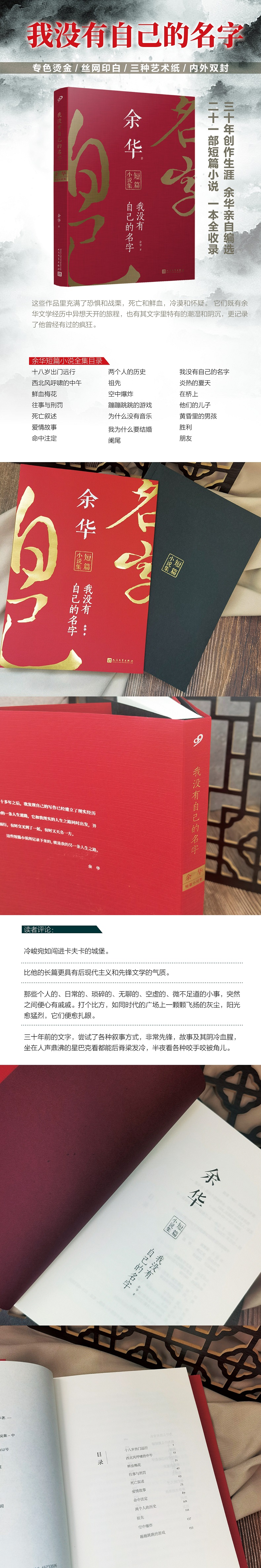 余华在本部小说集中,共选择了21篇短篇小说进行收录,其中包括早期的代表作《十八岁出门远行》,进行文体探索的《鲜血梅花》和进入创作黄金期之后的《黄昏里的男孩》等。篇目顺序并没有严格按照时间排序,而是以文字的内在联系进行了排序,由可见的上世纪八十年代的先锋逐渐走向九十年代的沉稳凝重。余华在其短篇小说中的创作中展现了更多样的文字面貌,甚至还有武侠小说题材的创作。他的短篇,有一种俯瞰世事略带狡猾的言说,兼具畅销小说强烈的故事性和纯文学作品高超的艺术性。本书充满了对命运的叩问、对人性的探究和对自然的敬畏,也充满了对生命的无限怜悯和对现实的深沉思考。