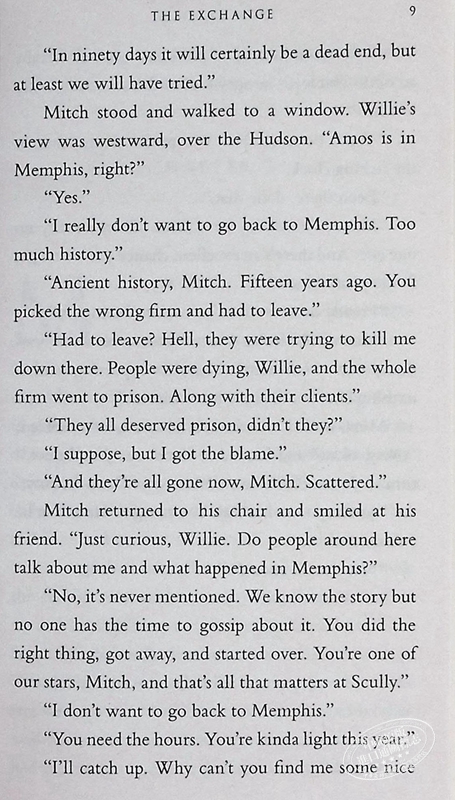 What became of Mitch and Abby McDeere after they exposed the crimes of Memphis law firm Bendini, Lambert & Locke and fled the country? The answer is in The Exchange, the riveting sequel to The Firm, the blockbuster thriller that launched the career of America’s favorite storyteller. It is now fifteen years later, and Mitch and Abby are living in Manhattan, where Mitch is a partner at the largest law firm in the world. When a mentor in Rome asks him for a favor that will take him far from home, Mitch finds himself at the center of a sinister plot that has worldwide implications—and once again endangers his colleagues, friends, and family. Mitch has become a master at staying one step ahead of his adversaries, but this time there’s nowhere to hide.