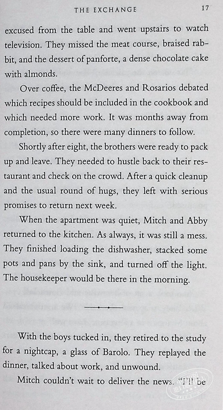 米奇和艾比·麦克迪尔揭露孟菲斯本迪尼·兰伯特·洛克律师事务所的罪行并逃离该国后,他们怎么样了? 答案就在《The Exchange》中,它是《The Firm》的引人入胜的续集,这部轰动一时的惊悚片开启了美国备受欢迎的故事讲述者的职业生涯。 十五年后,米奇和艾比住在曼哈顿,米奇是世界大律师事务所的合伙人。 当罗马的一位导师请求他帮忙时,他将远离家乡,米奇发现自己处于一个具有全球影响的险恶阴谋的中心,并再次危及他的同事、朋友和家人。 米奇已经成为领先对手一步的高手,但这一次他无处可躲。