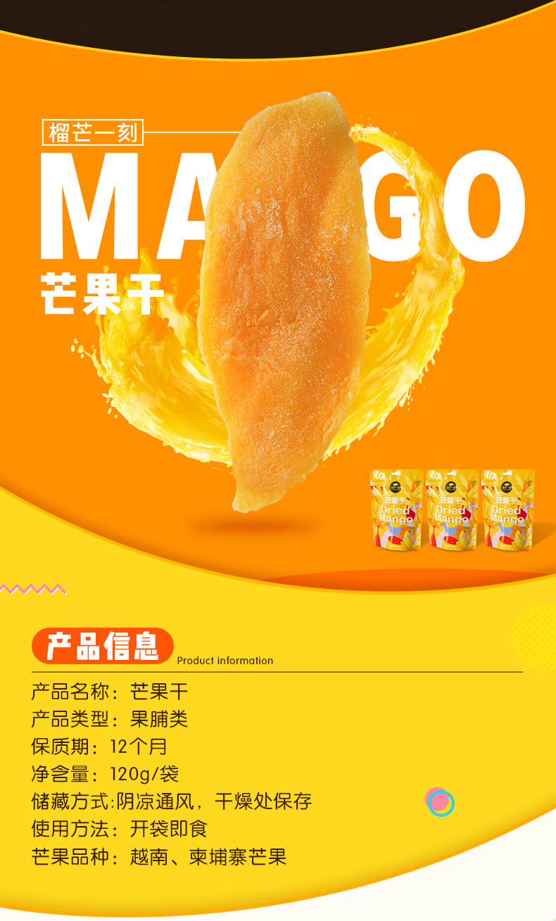 【厚切果肉】榴芒一刻 芒果干 3袋装 120g*3