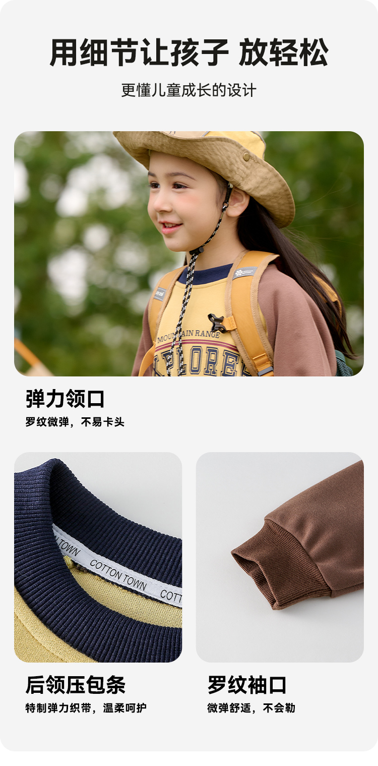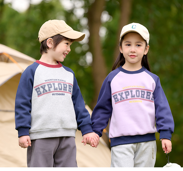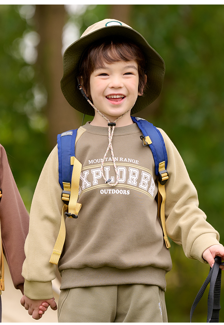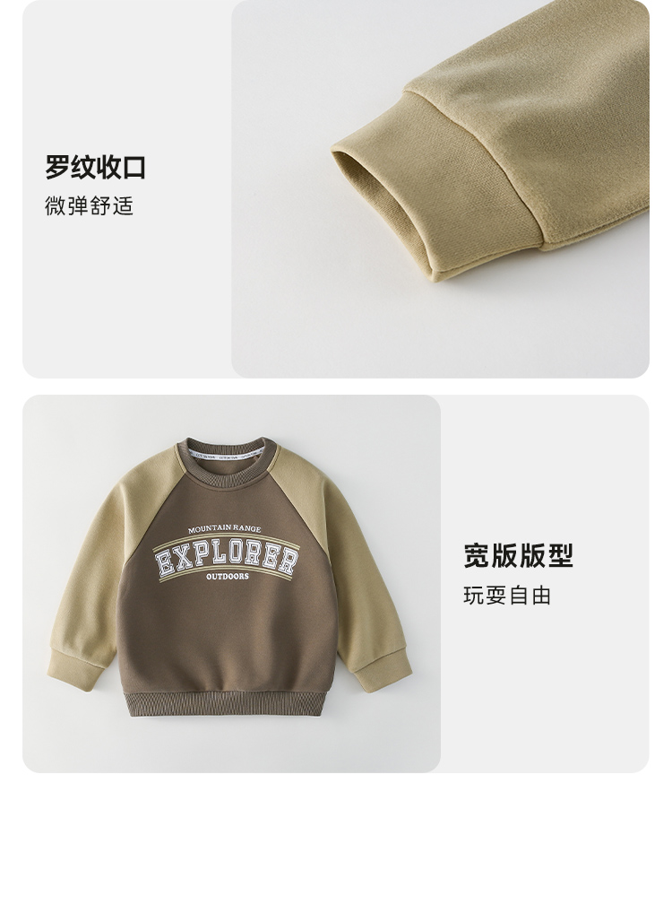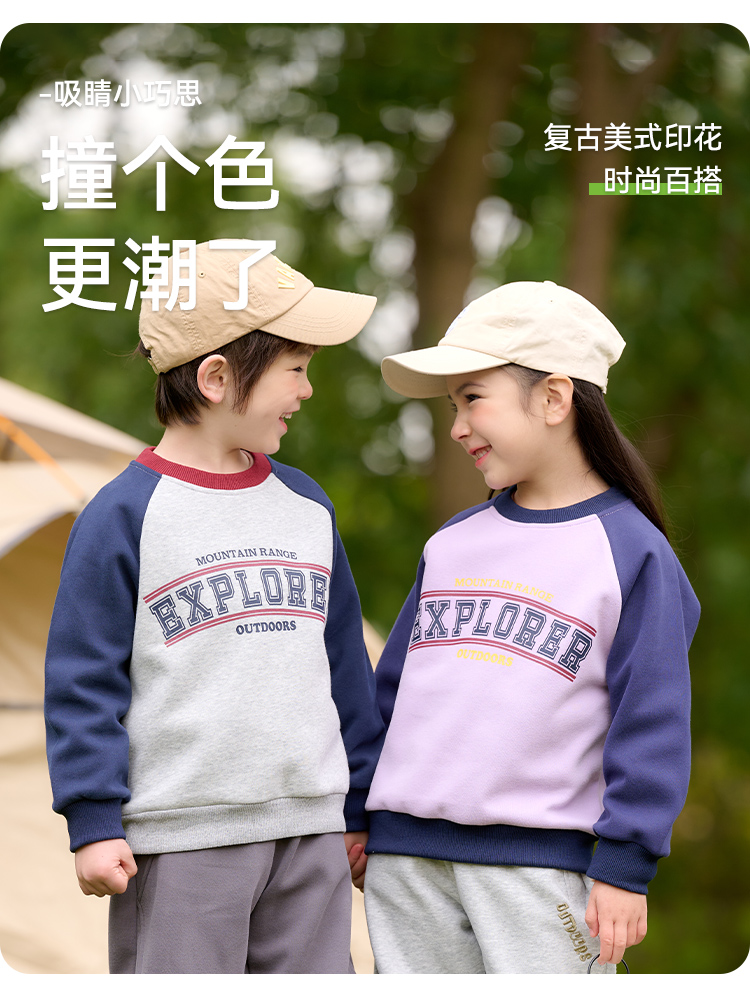 棉花堂2025年春款复古美式印花撞色针织圆领童装卫衣——F251024YX