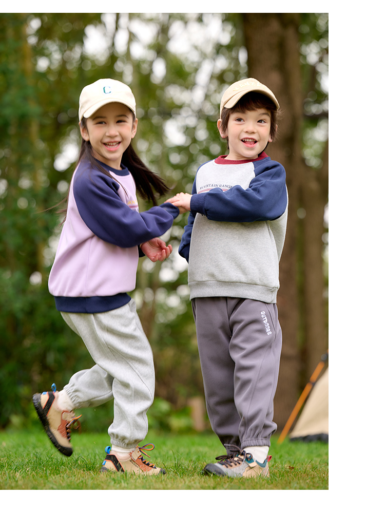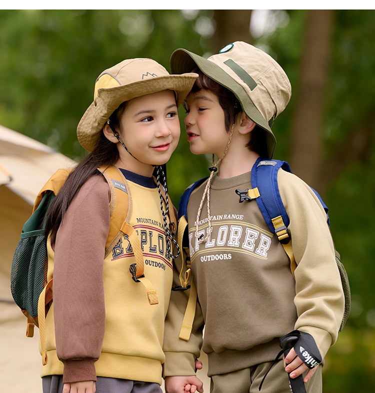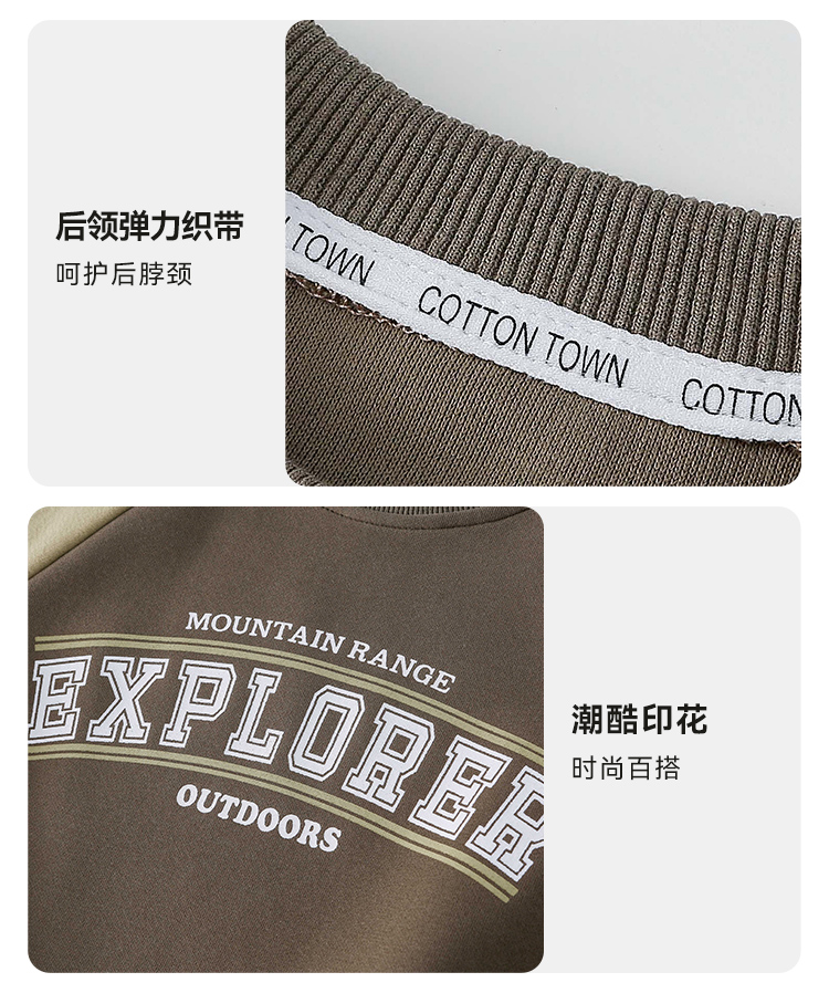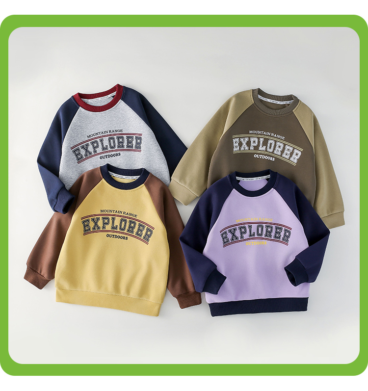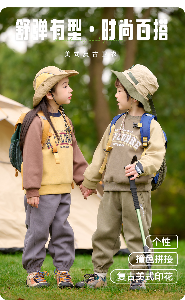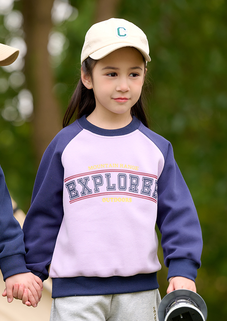 棉花堂2025年春款复古美式印花撞色针织圆领童装卫衣——F251024YX