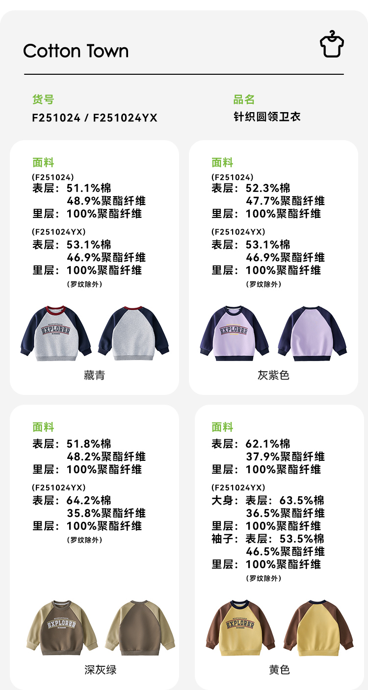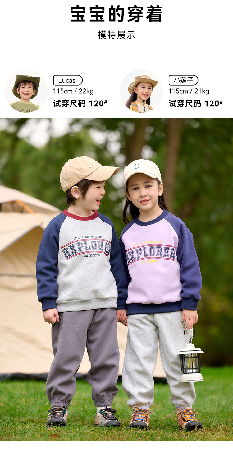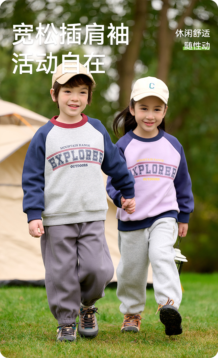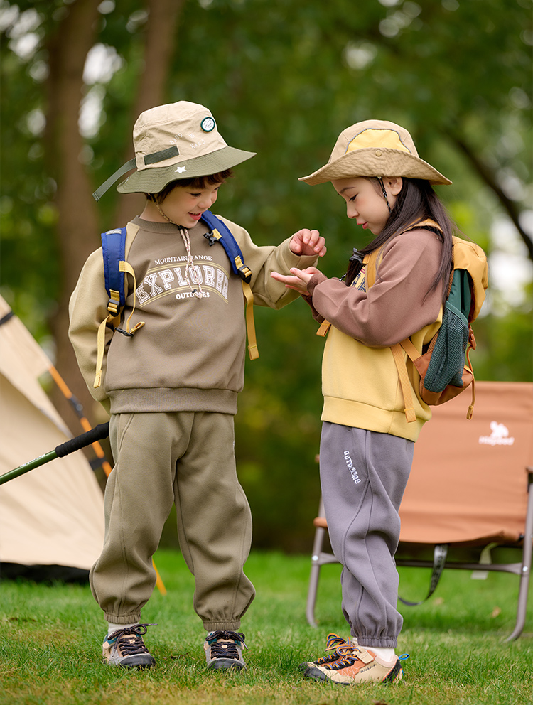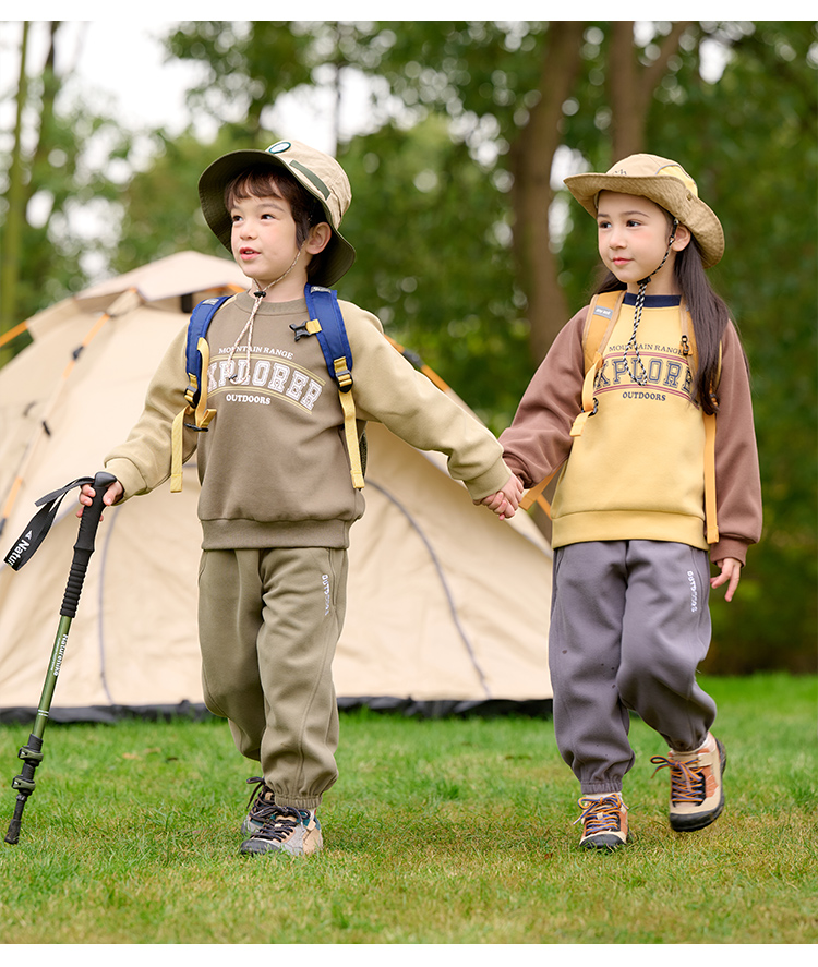 棉花堂2025年春款复古美式印花撞色针织圆领童装卫衣——F251024YX