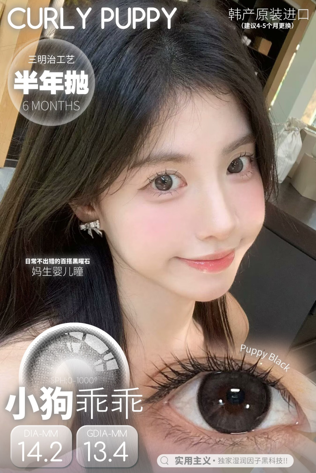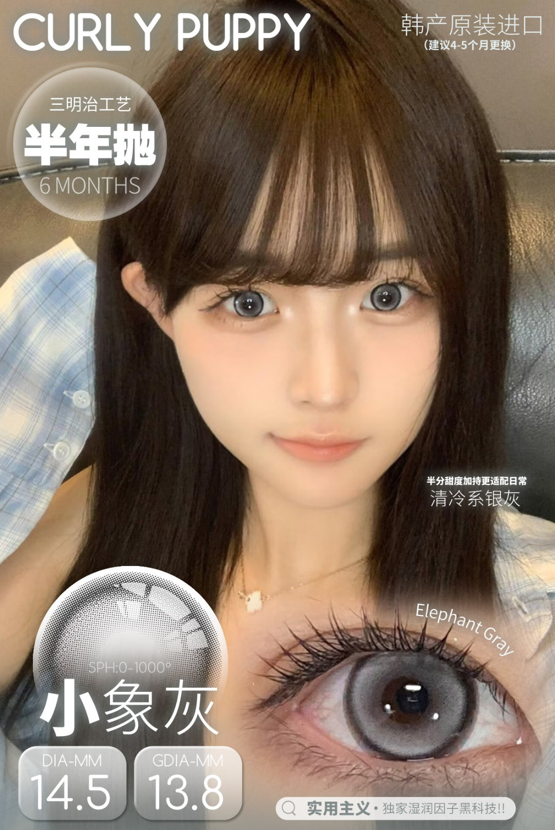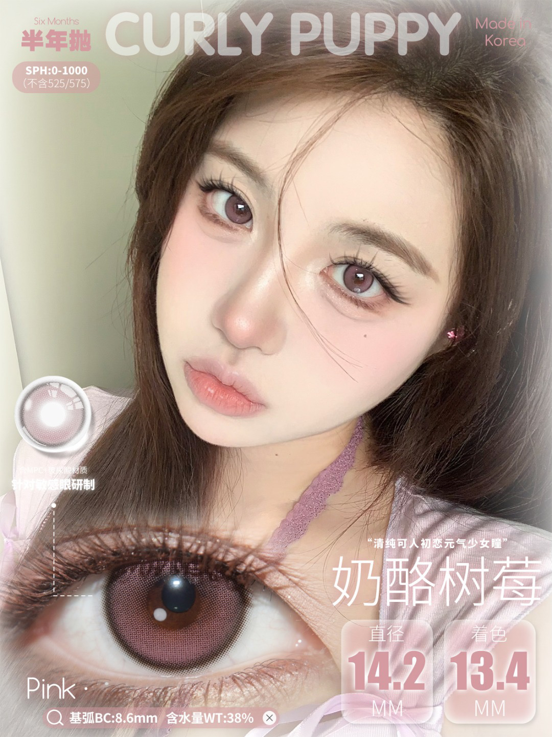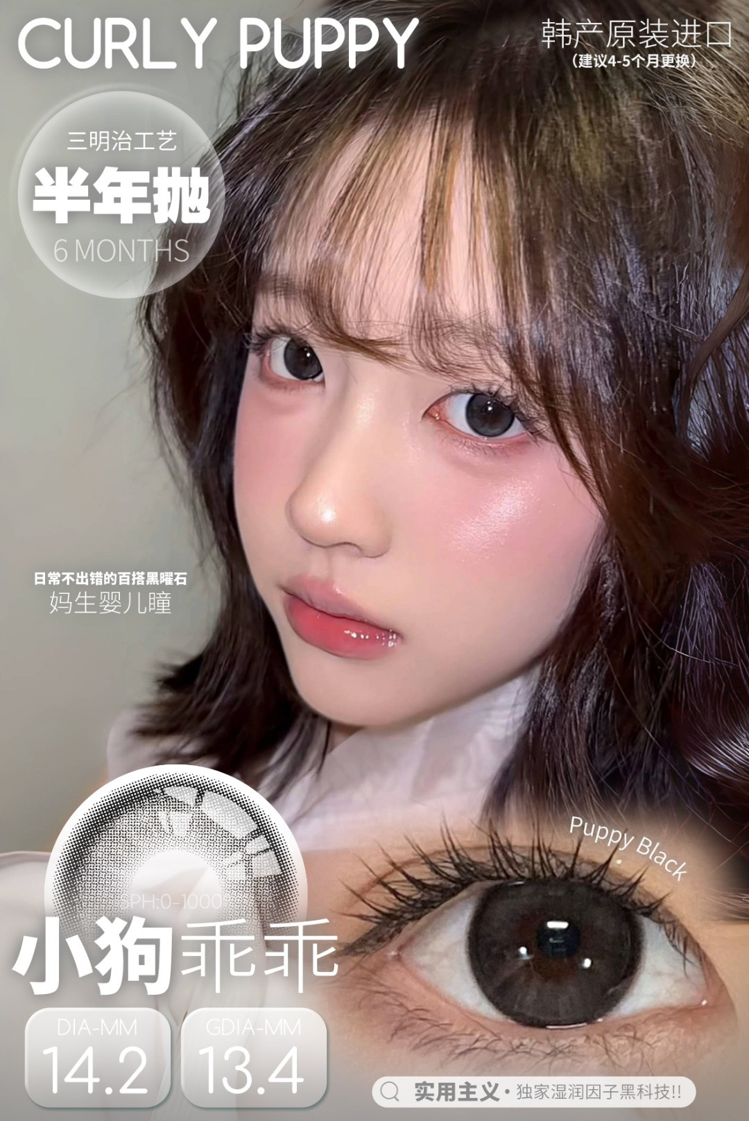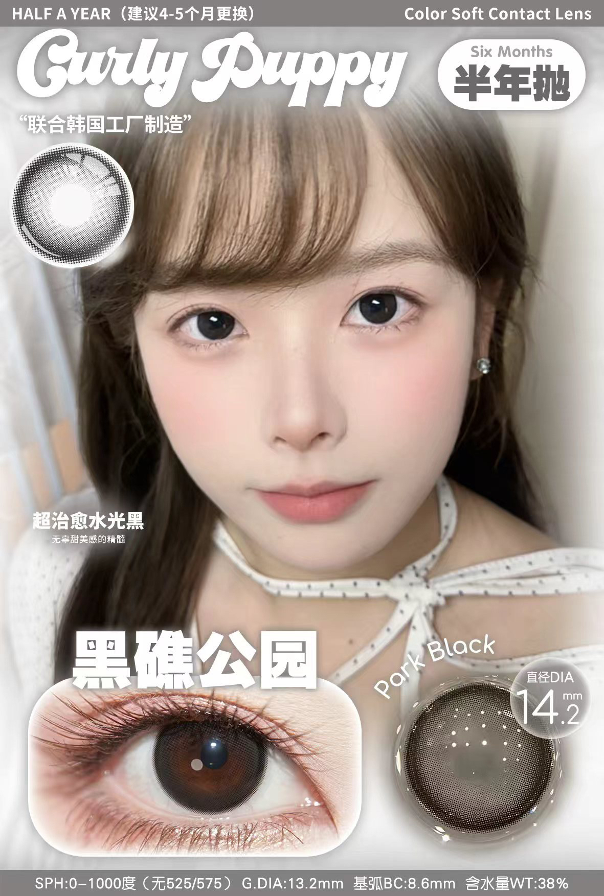 CP韩产主打14.2自然硅水凝胶半年抛三明治美瞳