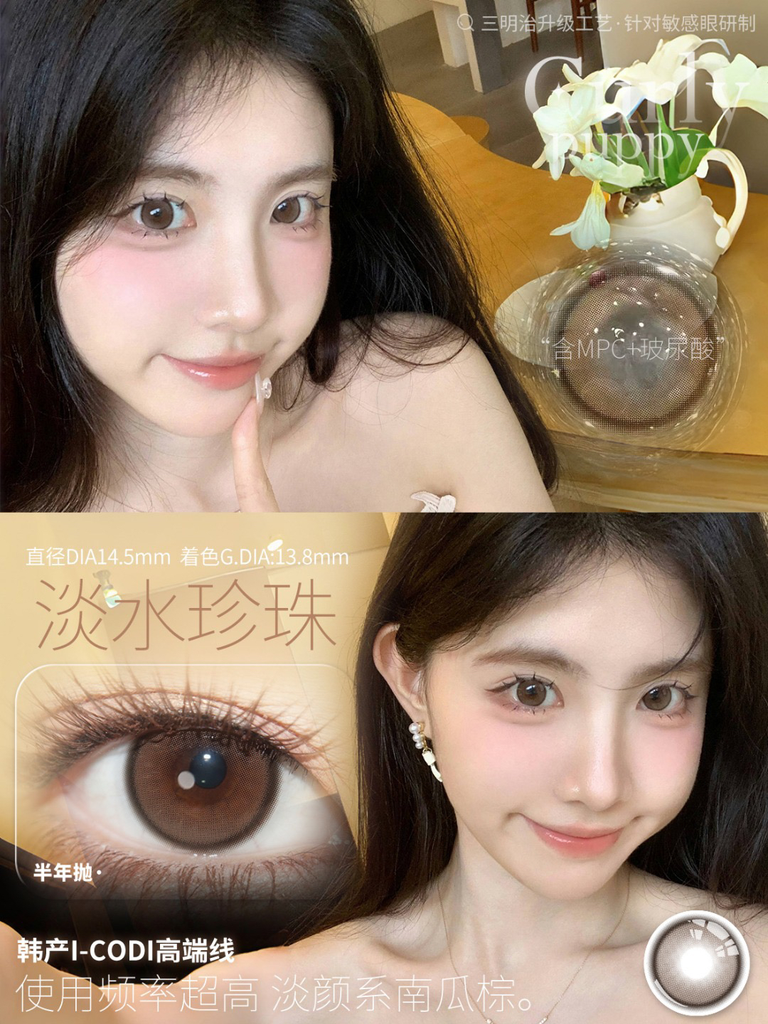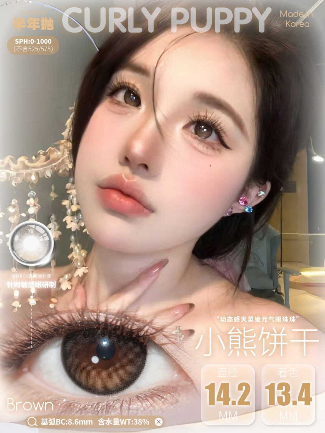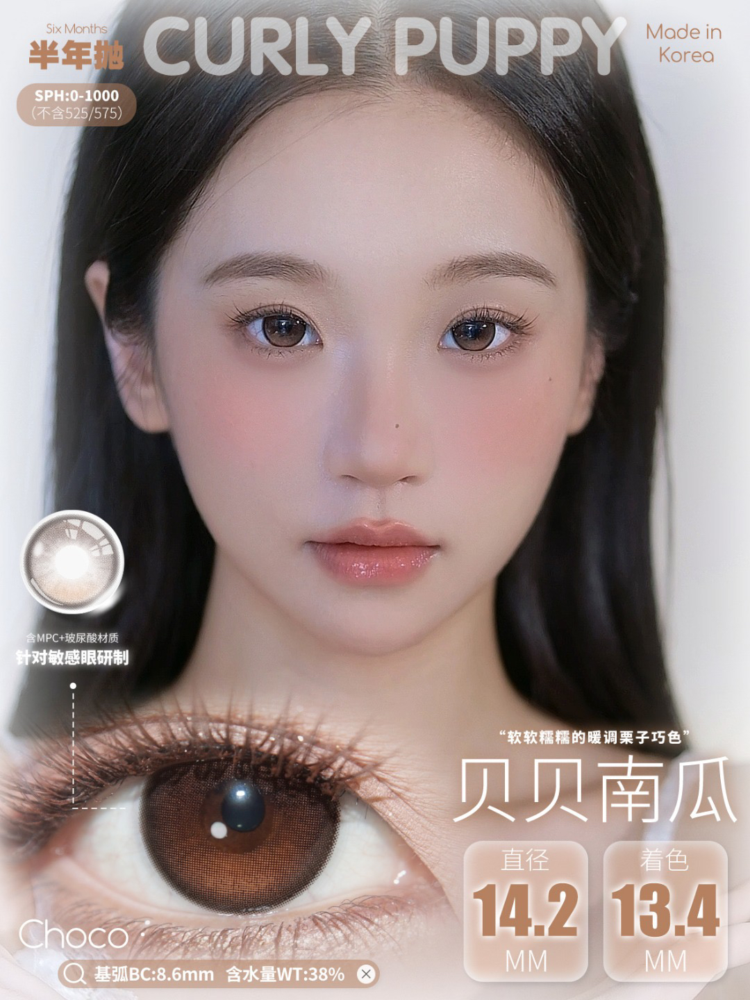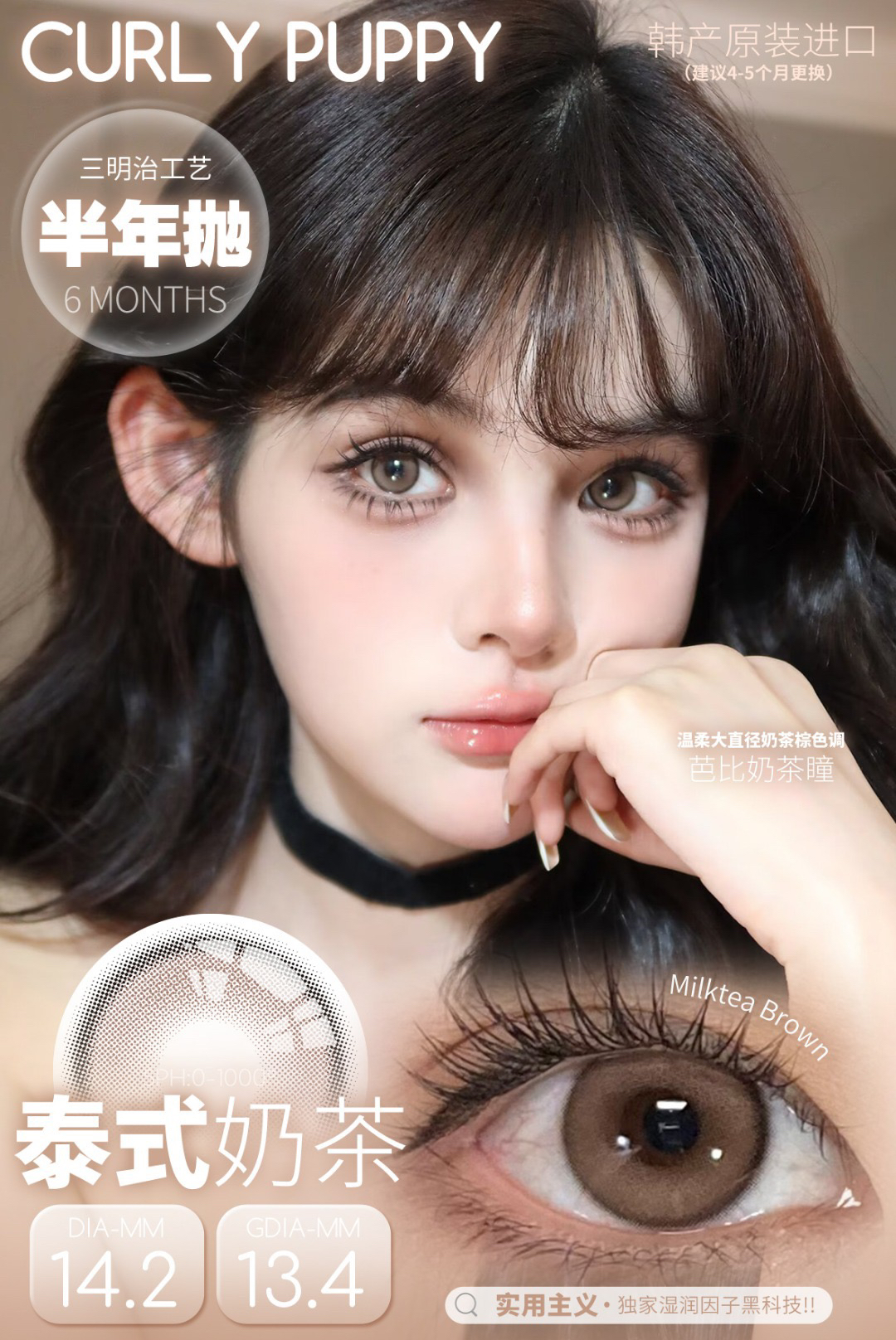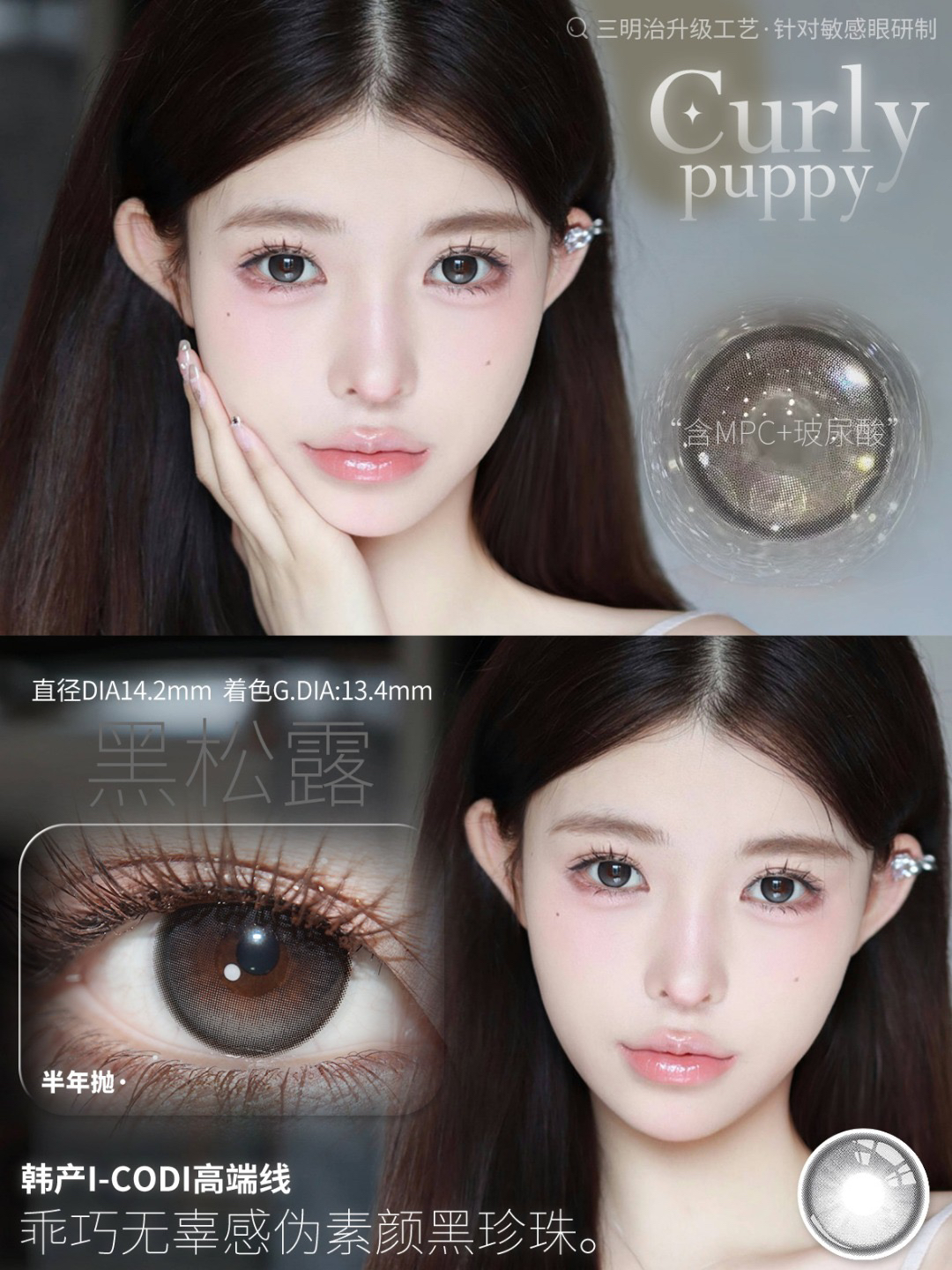 CP韩产主打14.2自然硅水凝胶半年抛三明治美瞳