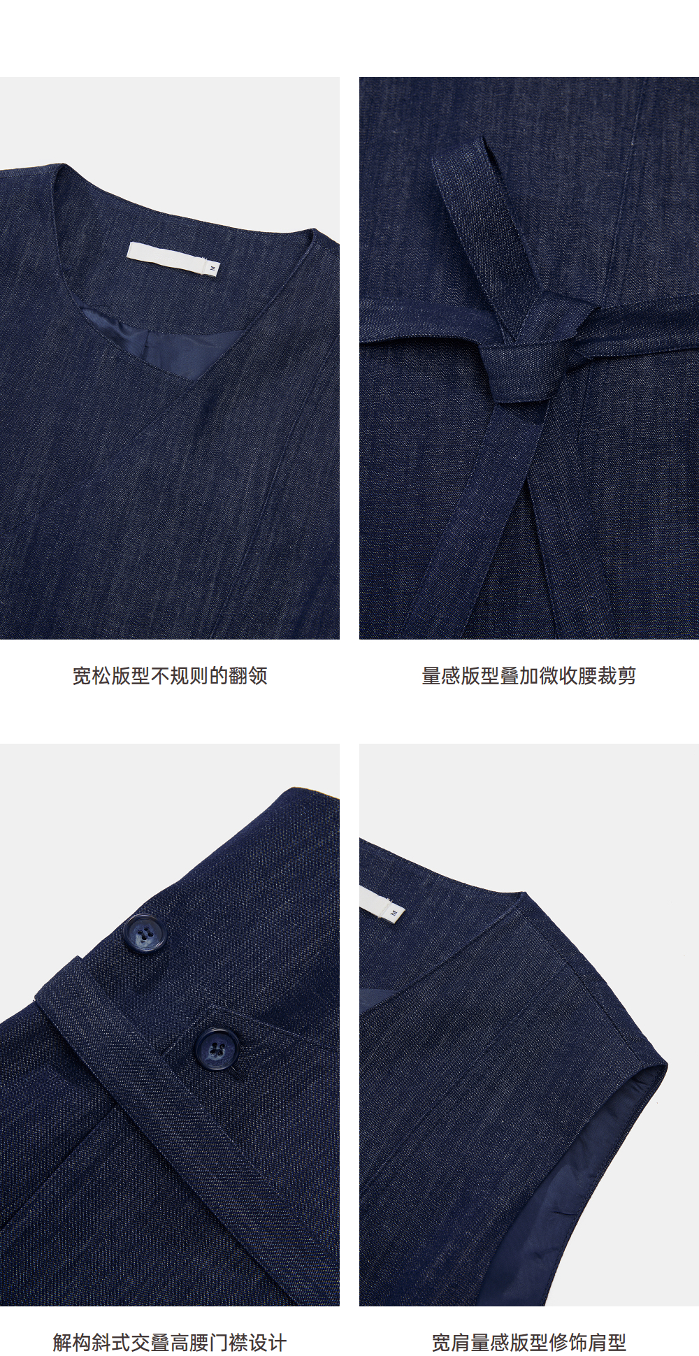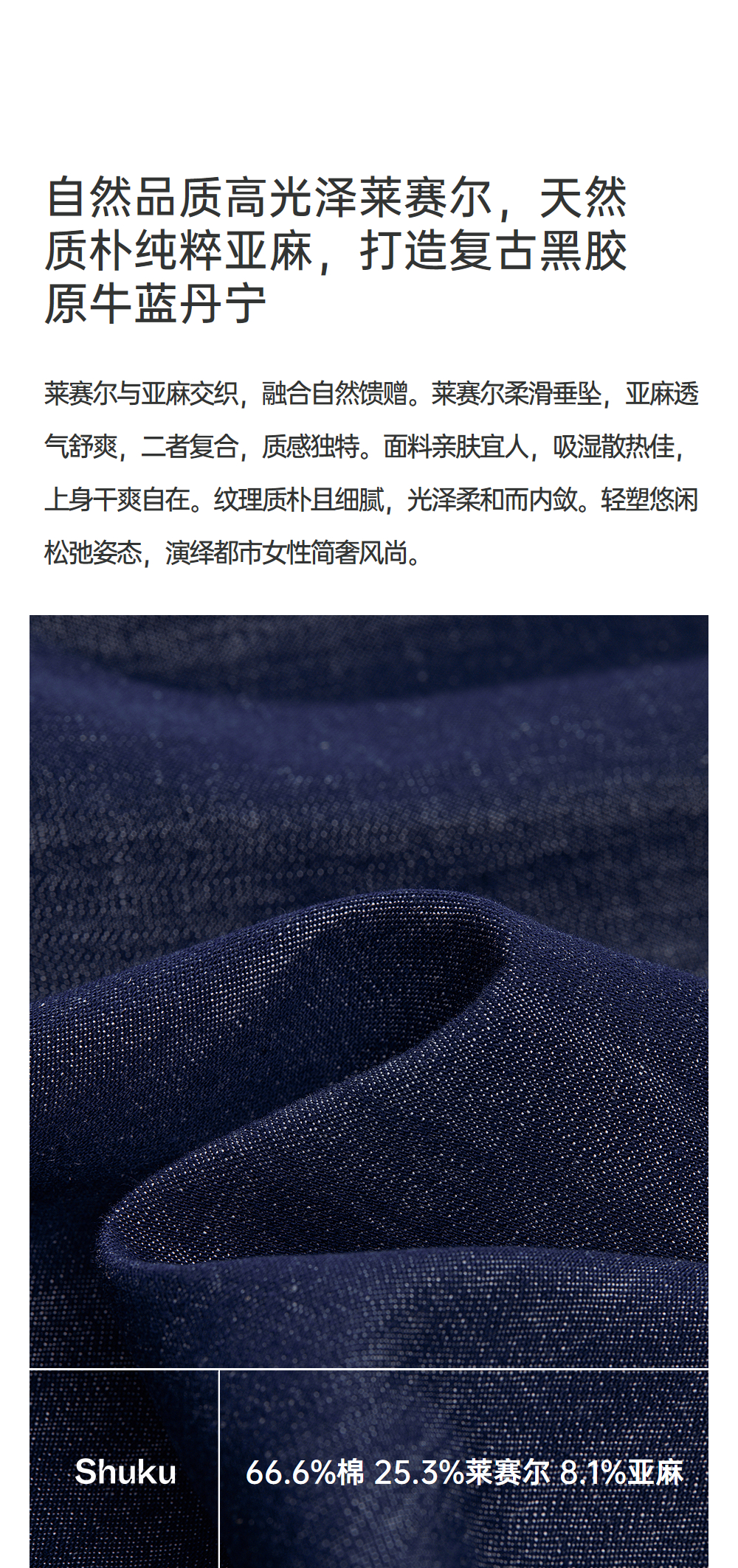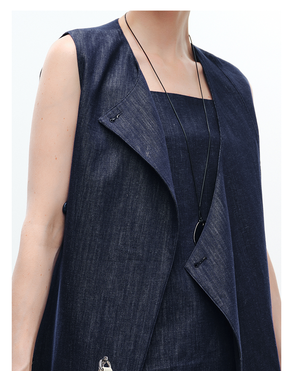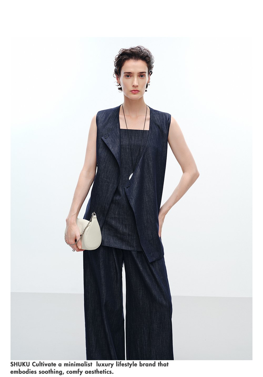 舒库2025春季新款女装马甲莱赛尔亚麻高级感上衣品质牛仔蓝马夹