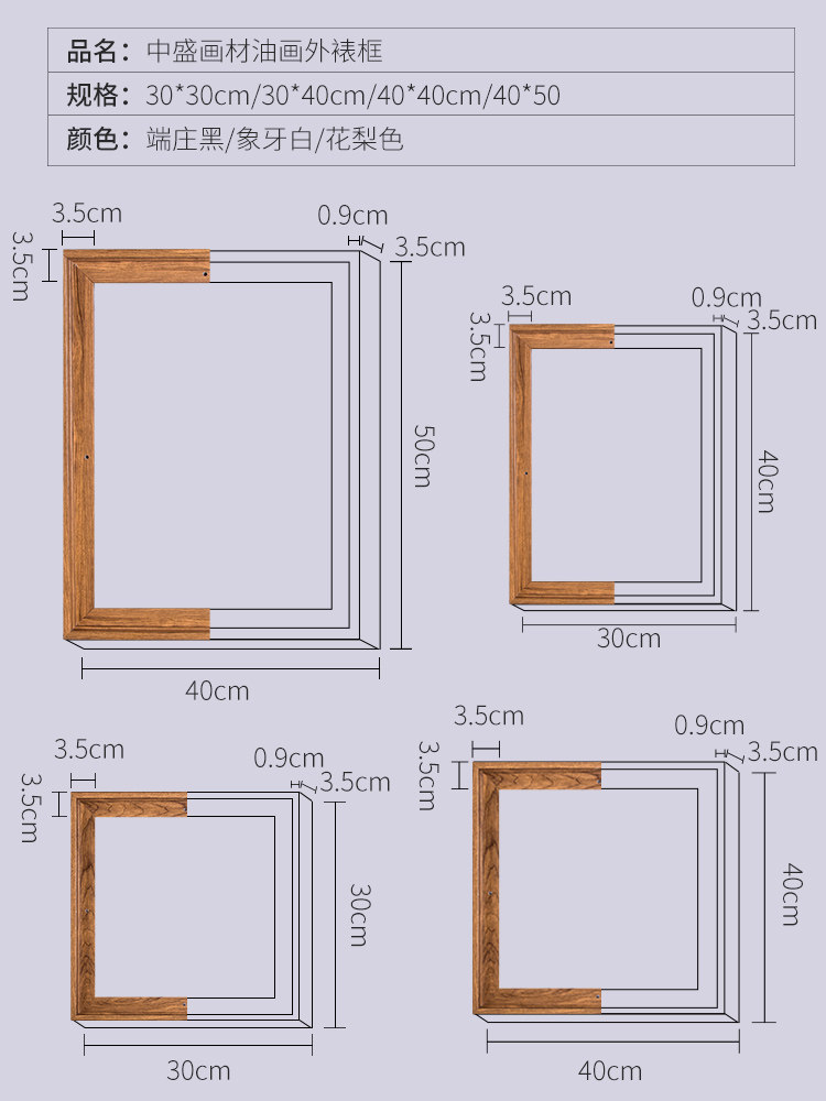 中盛画材 油画外裱框实木相框无痕挂墙装饰创意画框外框简约花梨