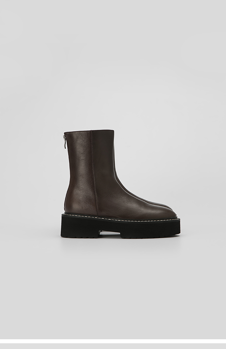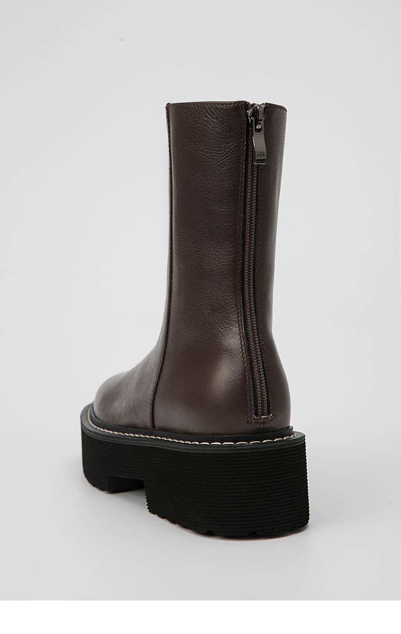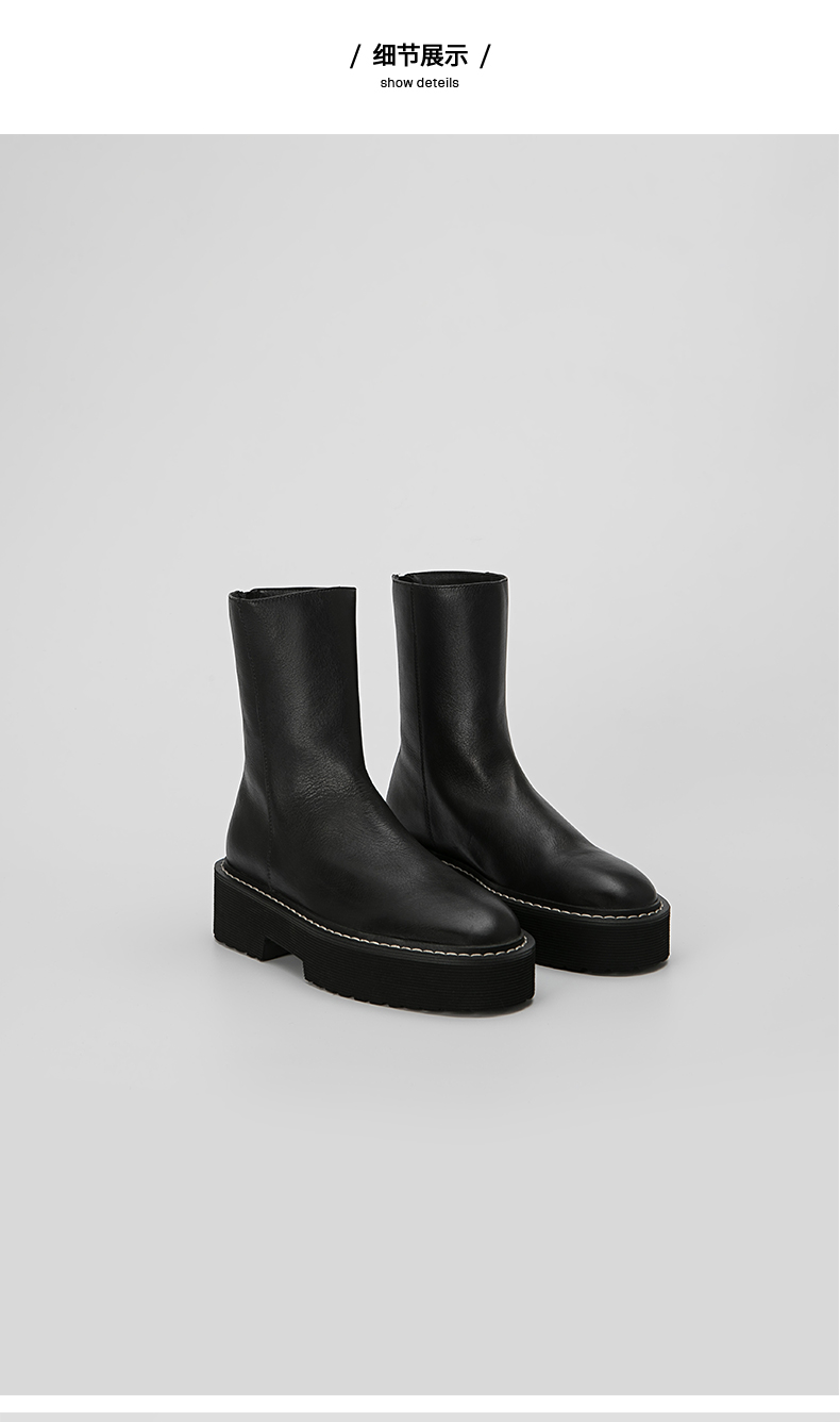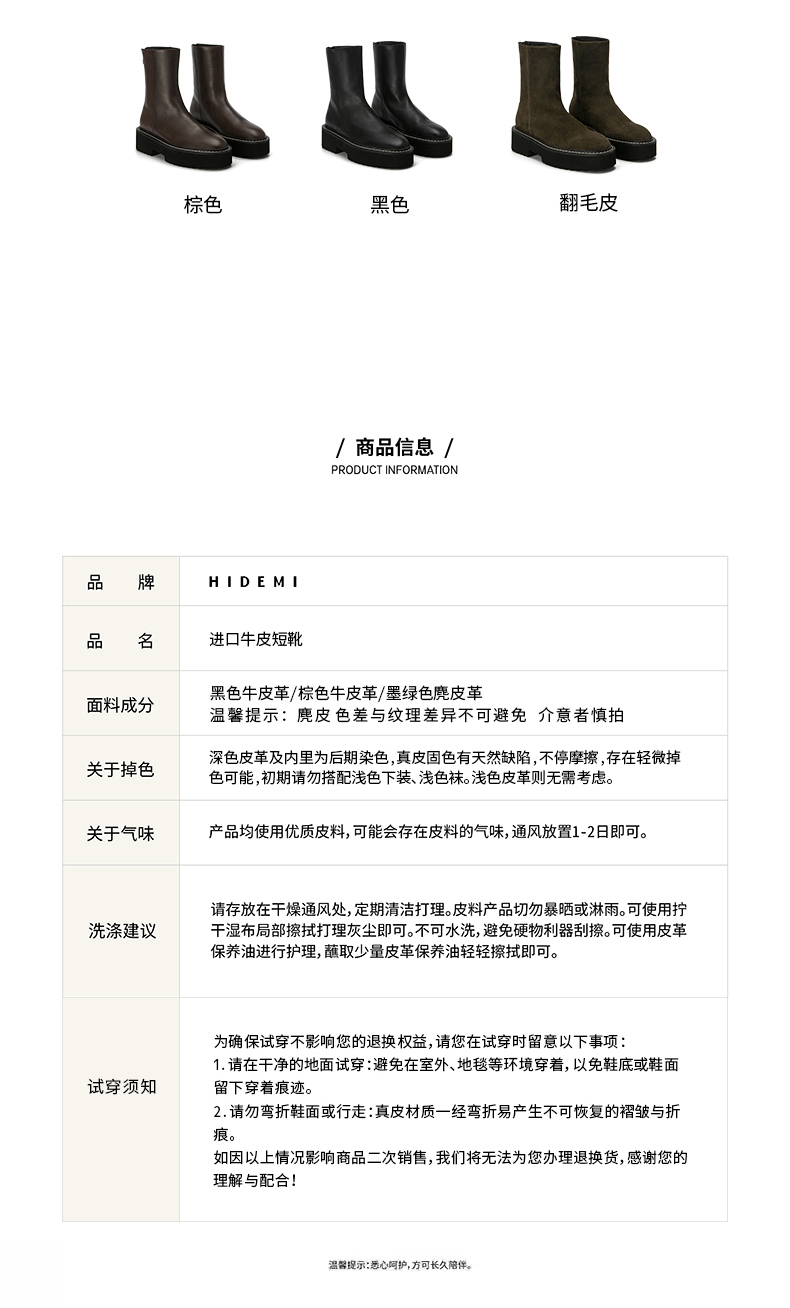HIDEMI简约加厚增高底女鞋牛皮擦色短靴 黑色牛皮/棕色牛皮/墨绿色麂皮