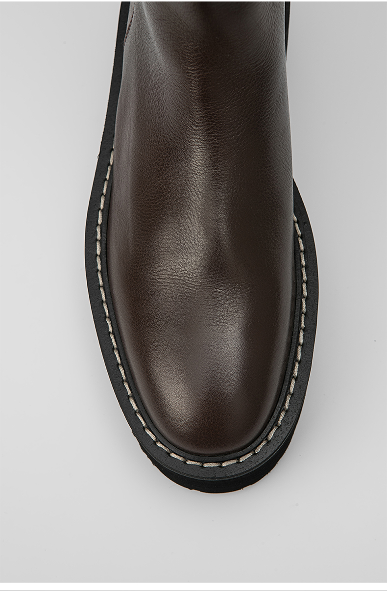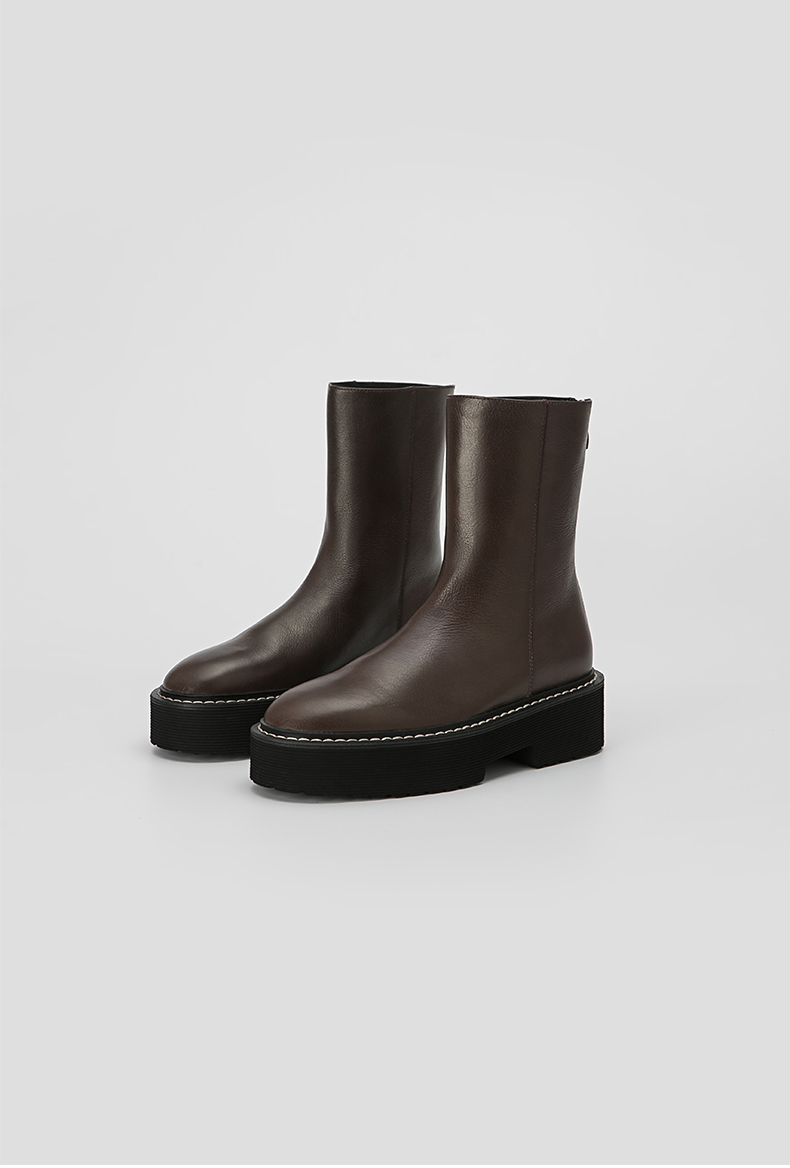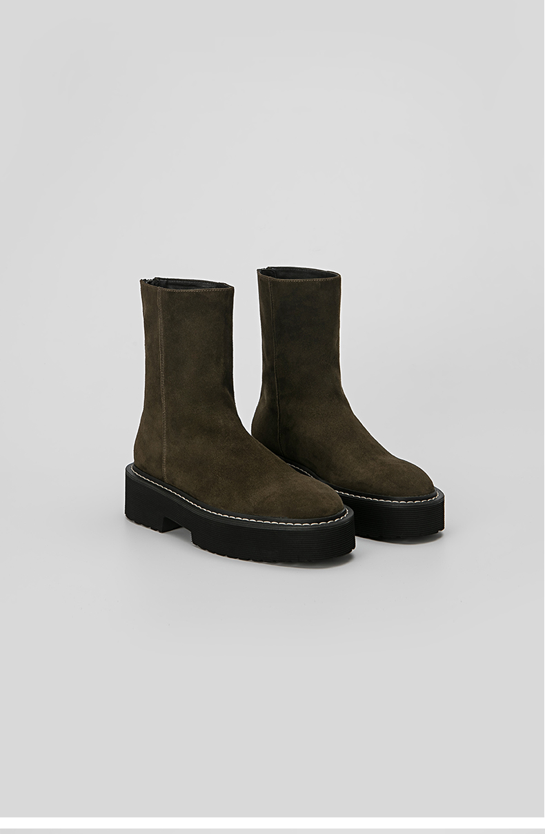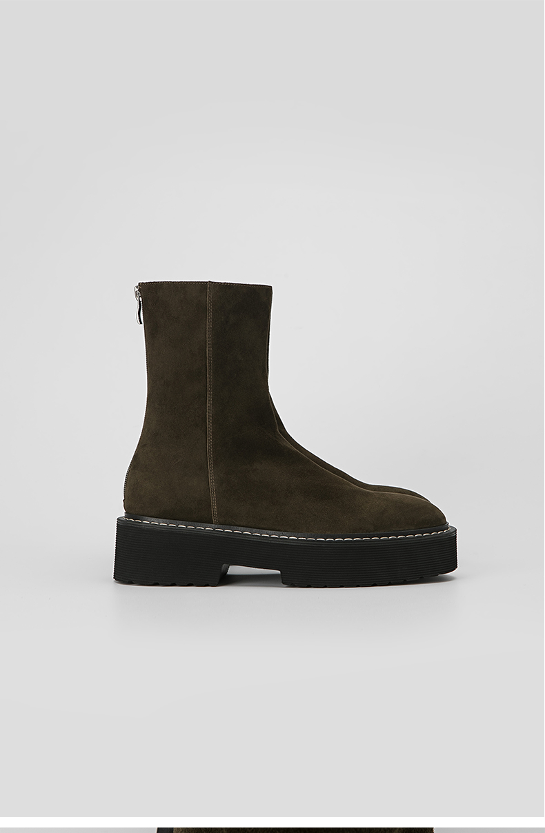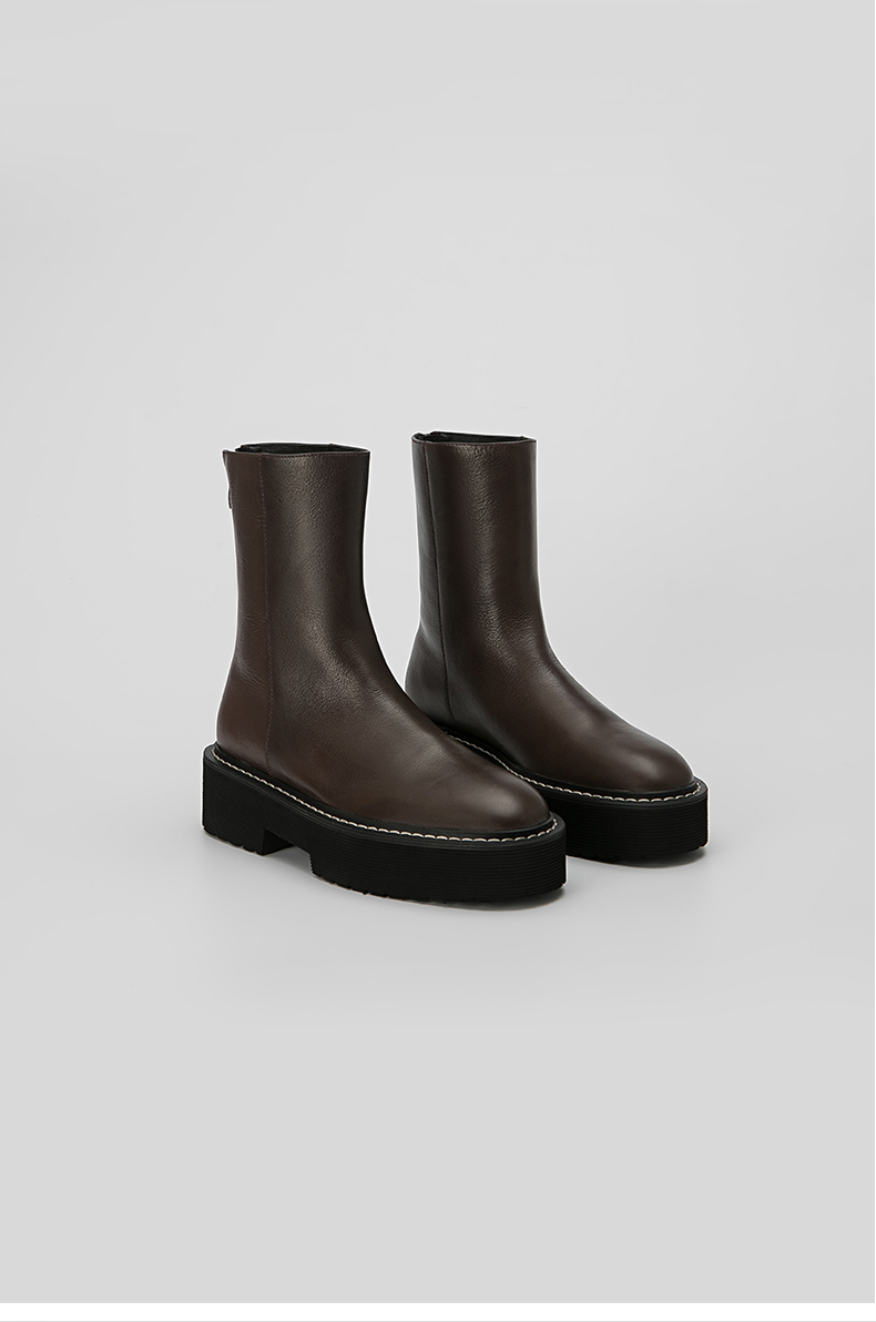 HIDEMI简约加厚增高底女鞋牛皮擦色短靴 黑色牛皮/棕色牛皮/墨绿色麂皮