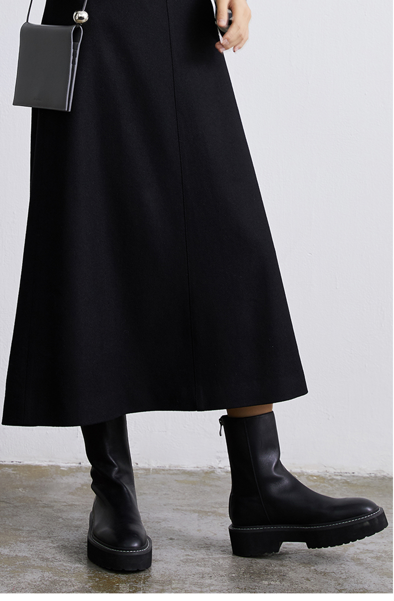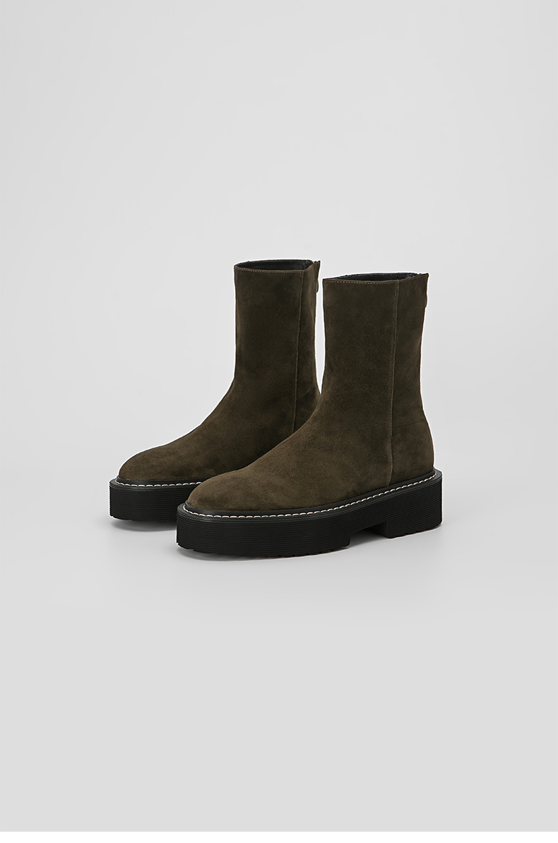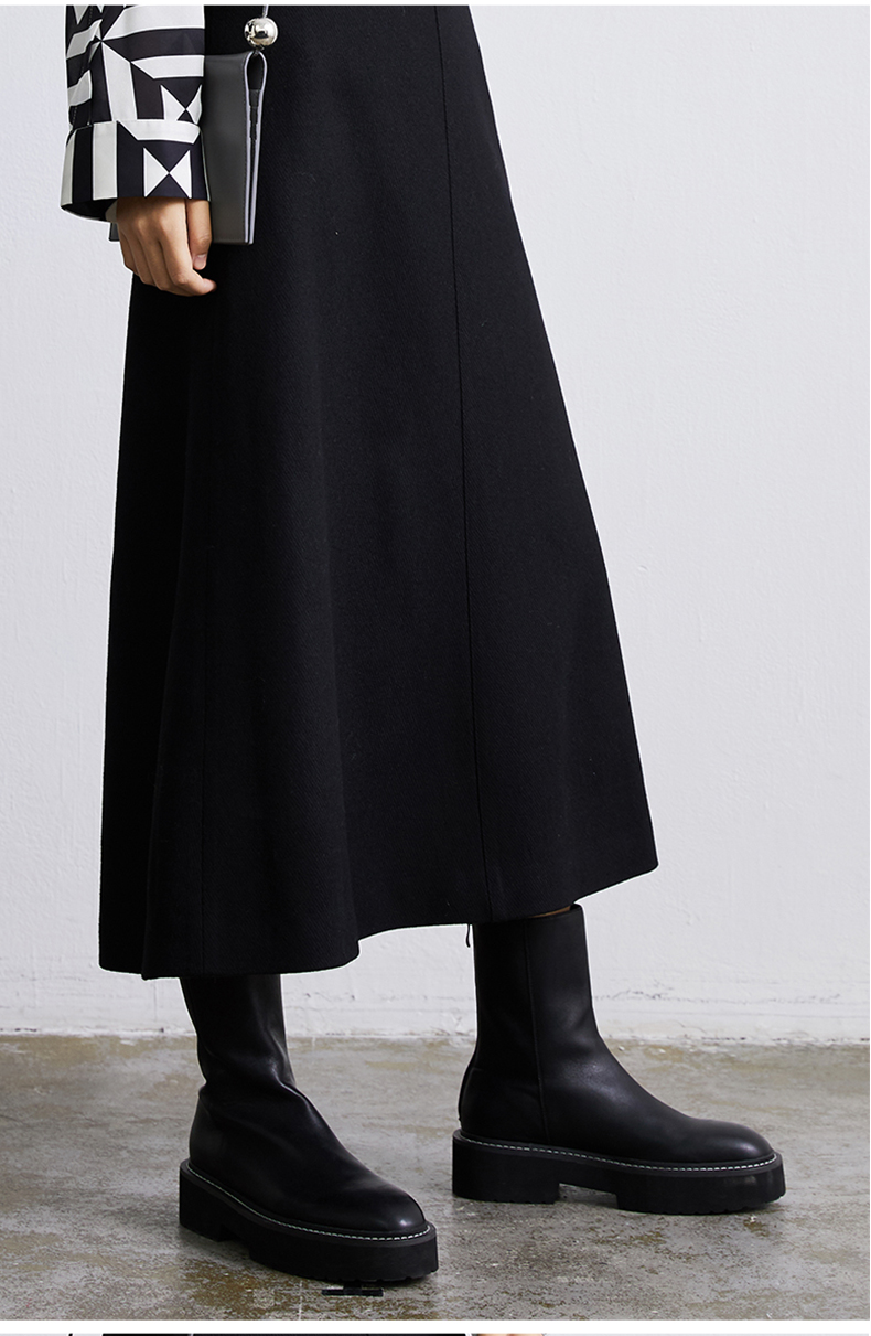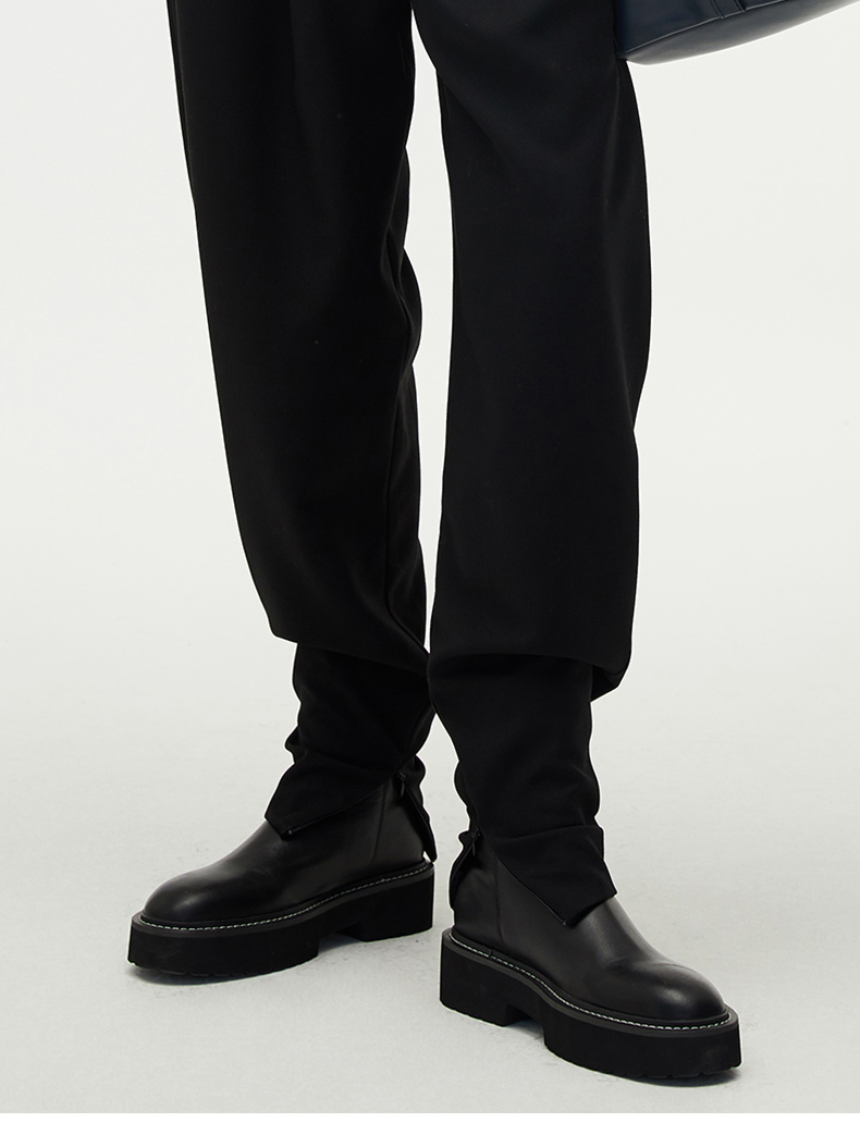 HIDEMI简约加厚增高底女鞋牛皮擦色短靴 黑色牛皮/棕色牛皮/墨绿色麂皮