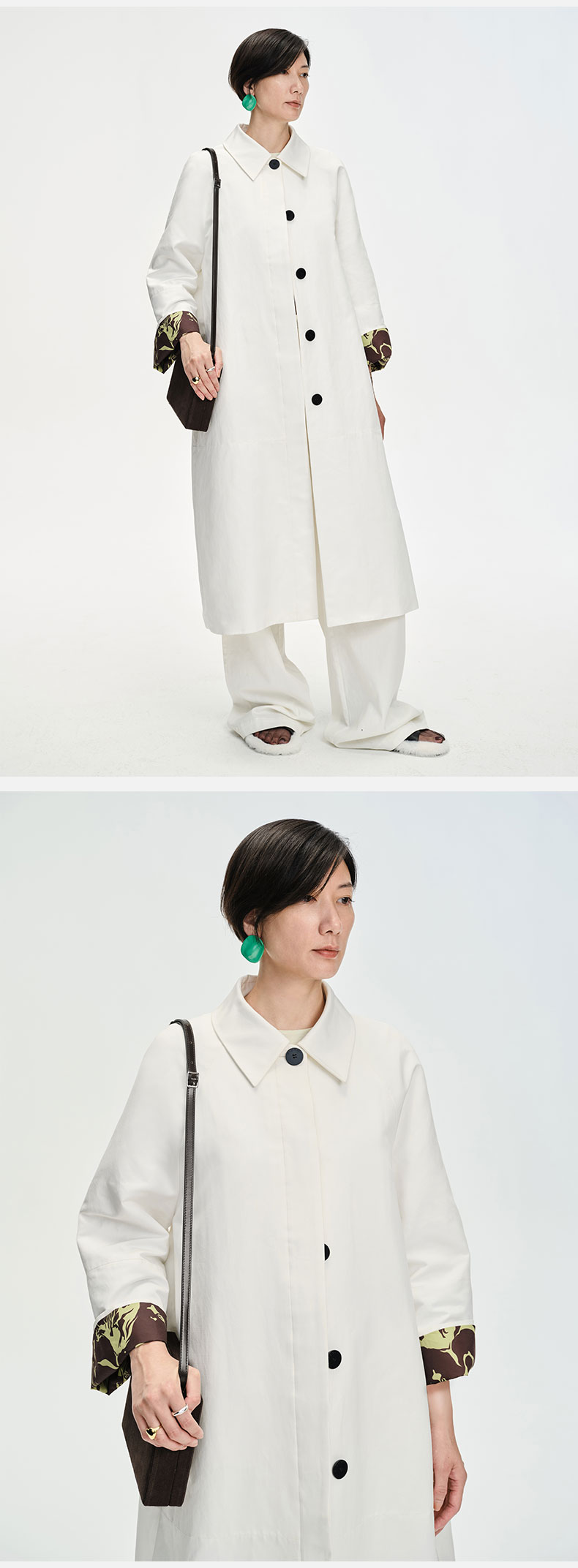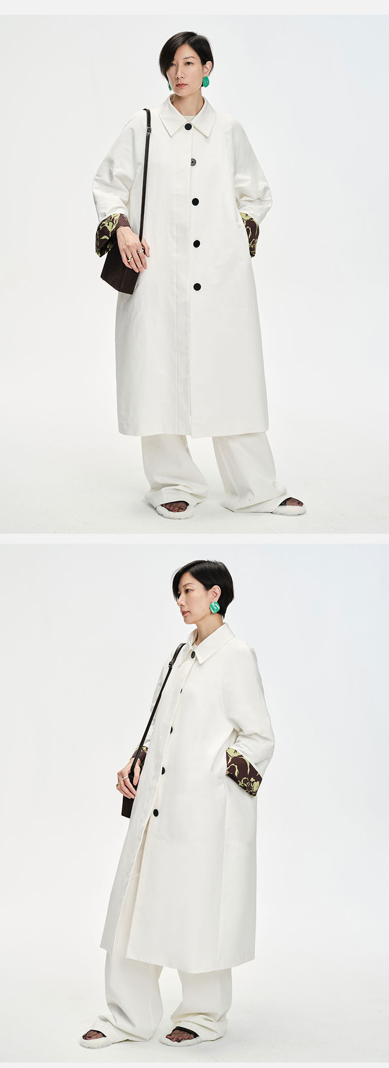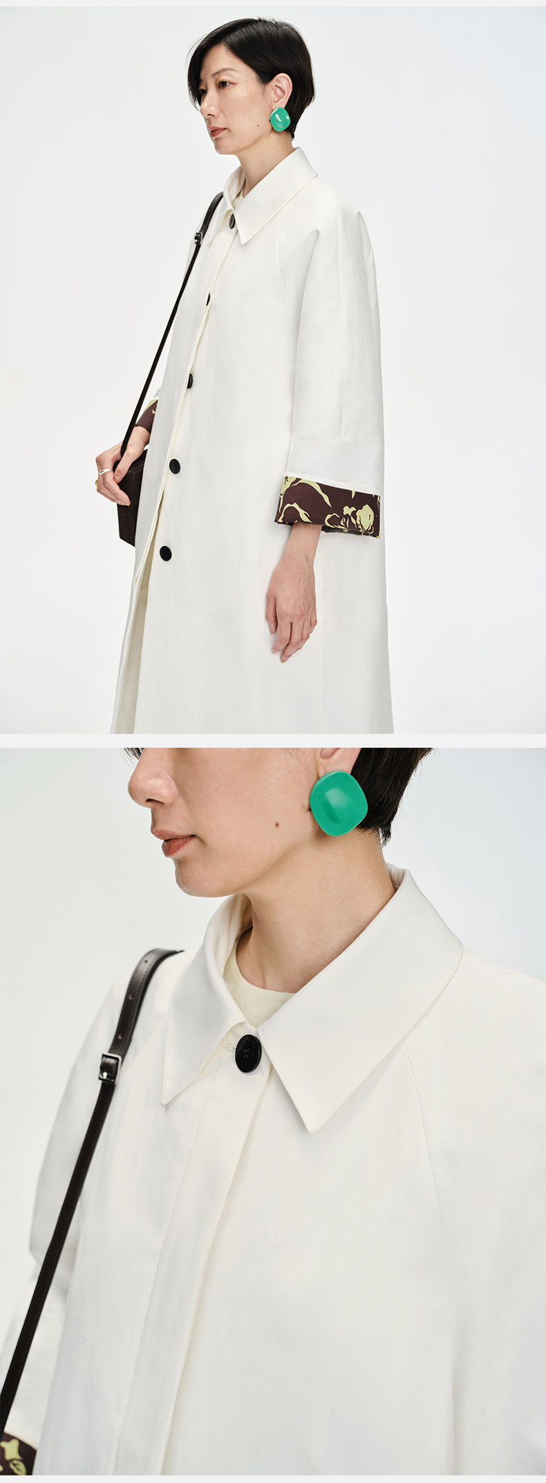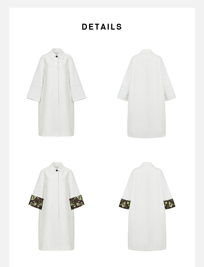 HIDEMI 白色极简设计感印花翻袖廓形风衣