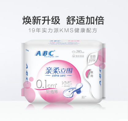 ABC轻透薄亲柔立围清凉舒爽棉柔夜用卫生巾280mm8片装 特价