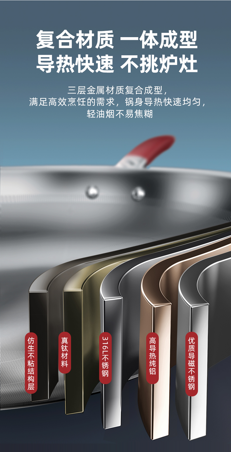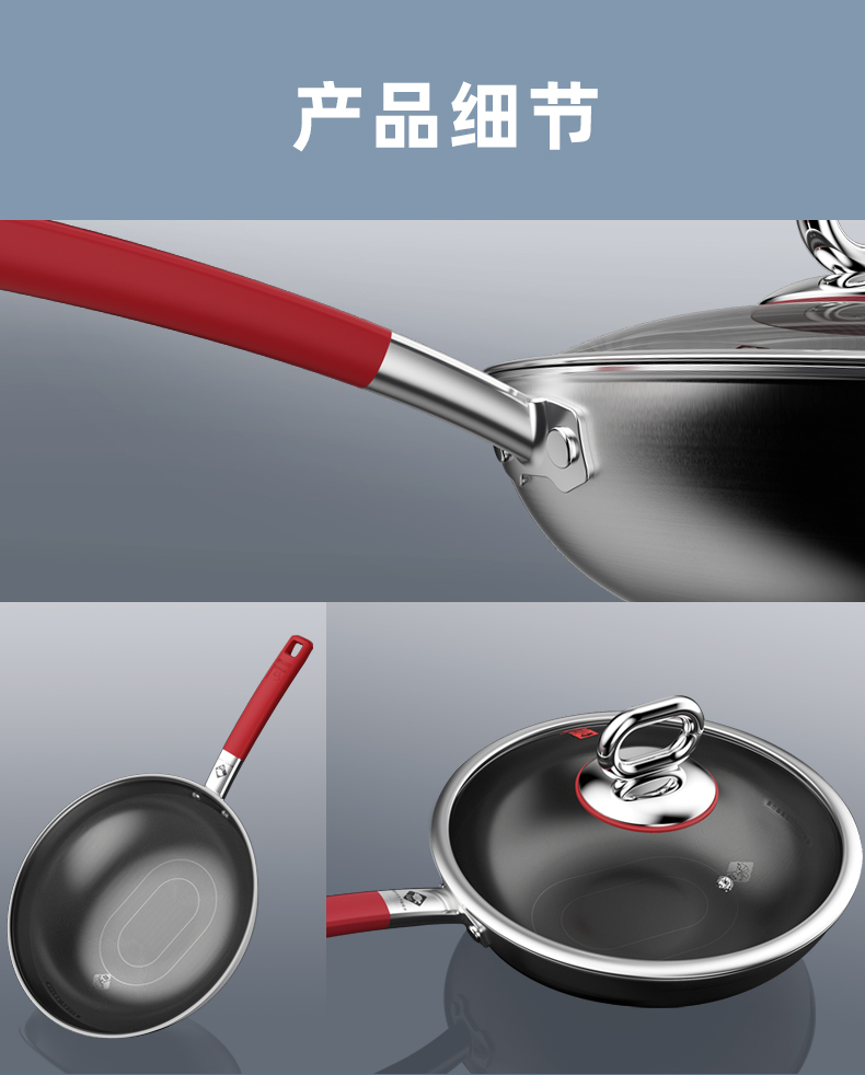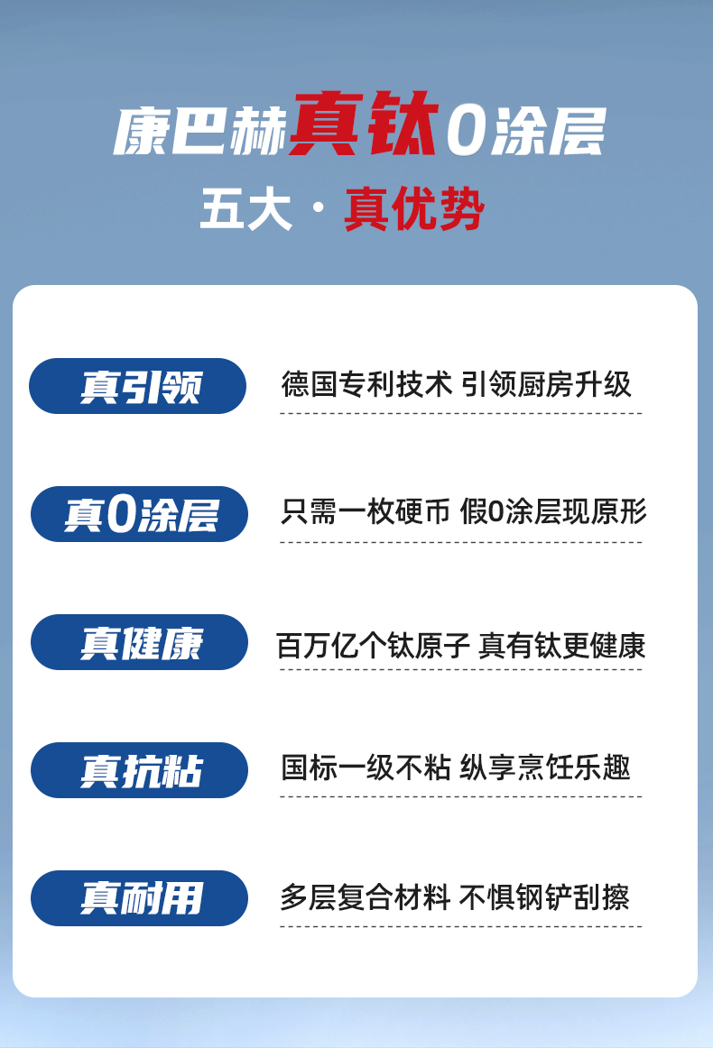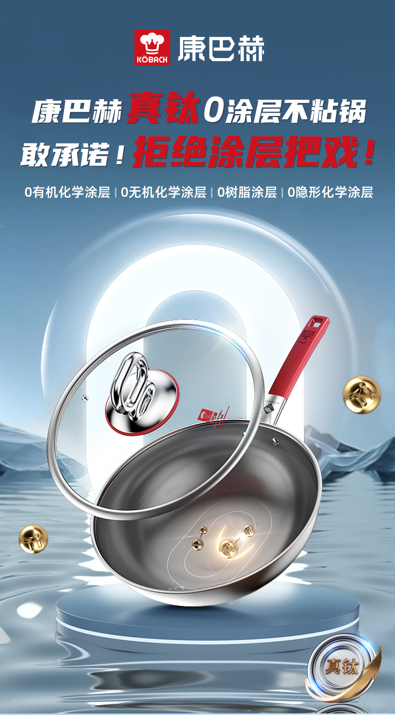 康巴赫真钛0涂层不粘炒锅第三代-套装32cm