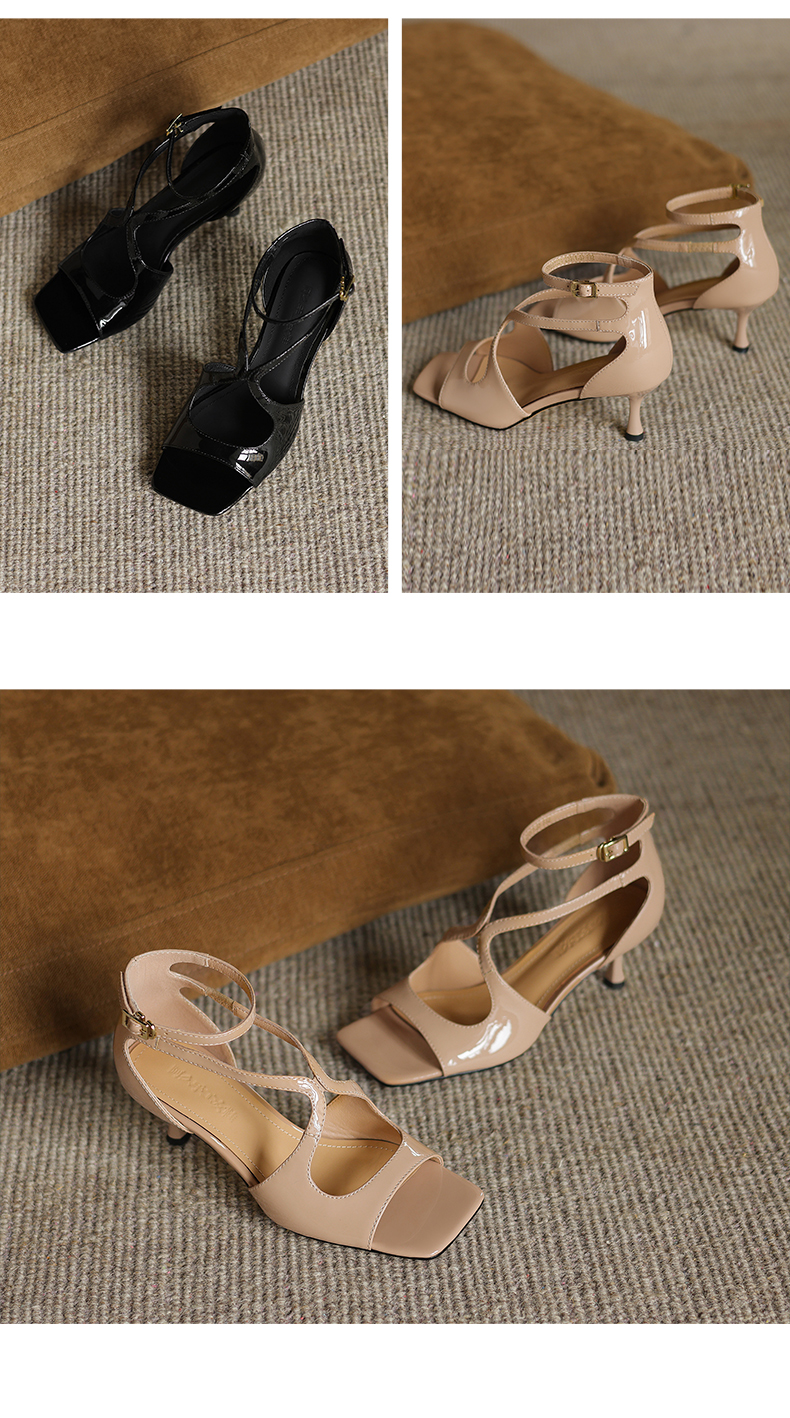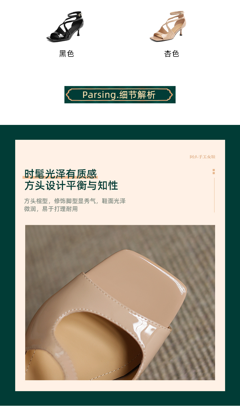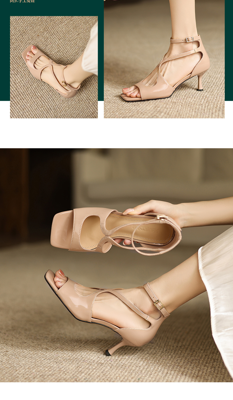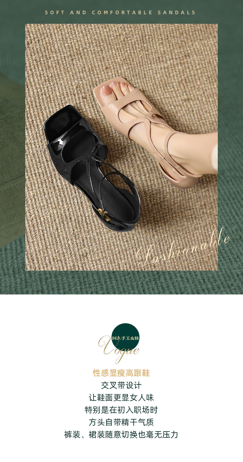 阿么手工女鞋气质法式鱼嘴真皮凉鞋2025新款交叉带性感高跟鞋6CM