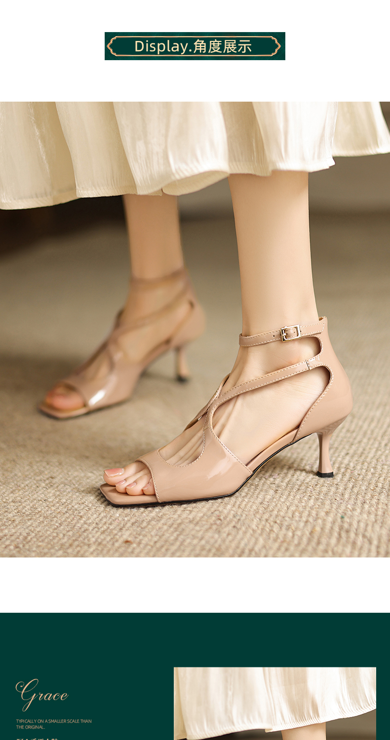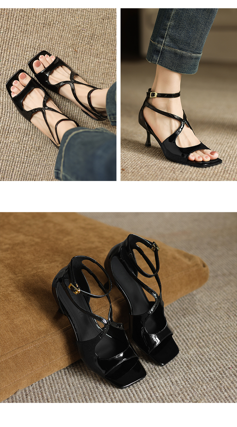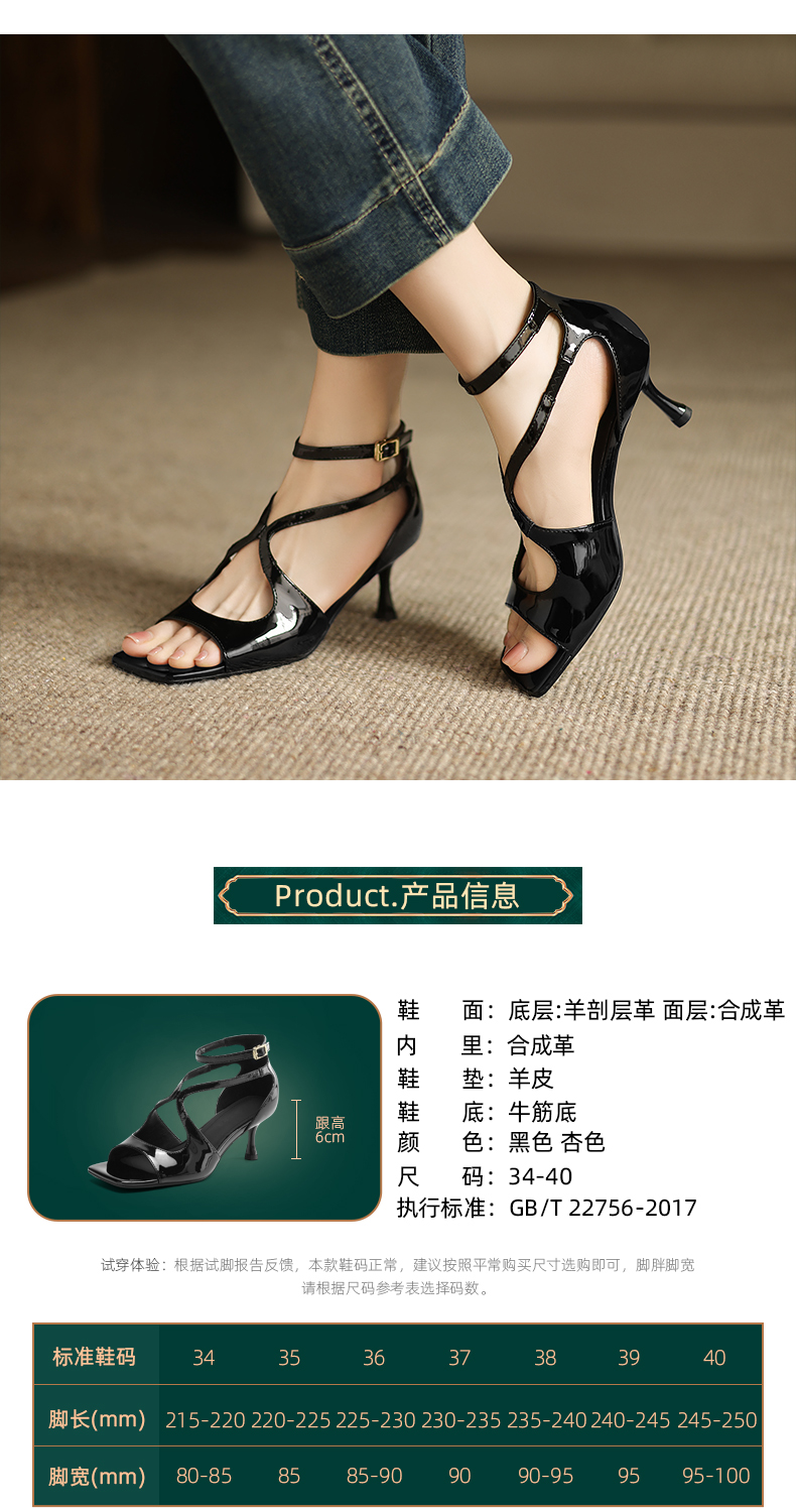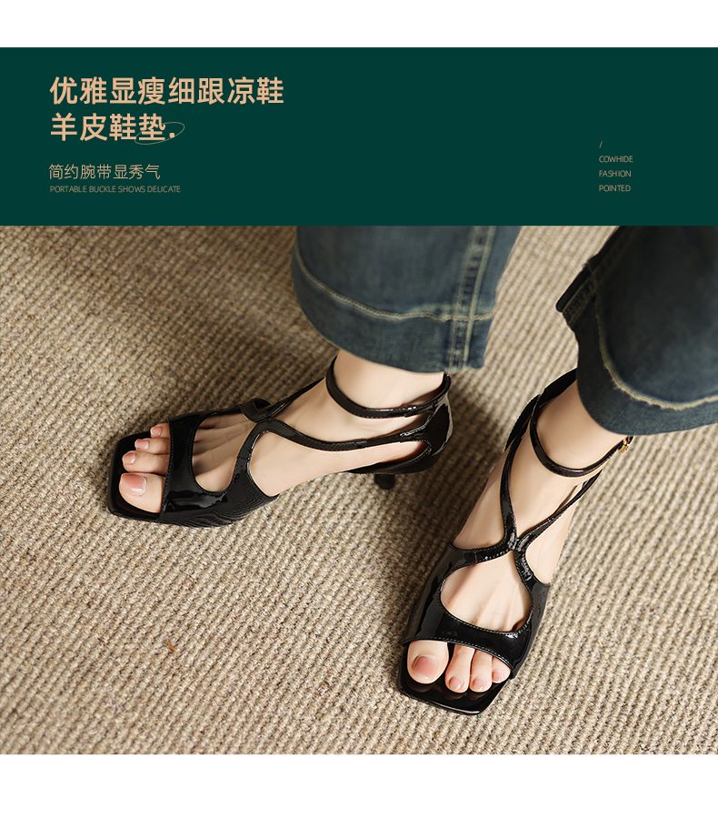 阿么手工女鞋气质法式鱼嘴真皮凉鞋2025新款交叉带性感高跟鞋6CM