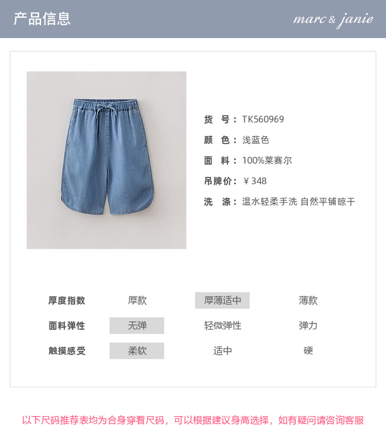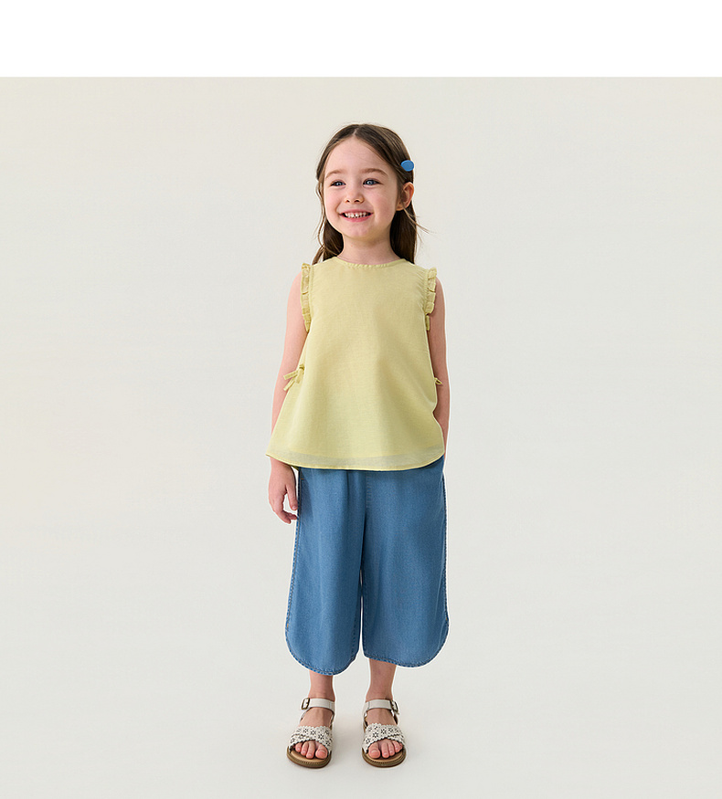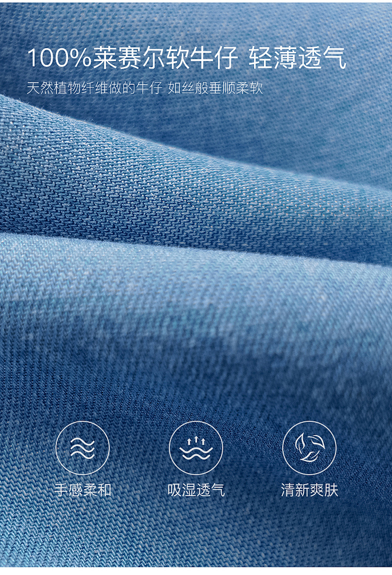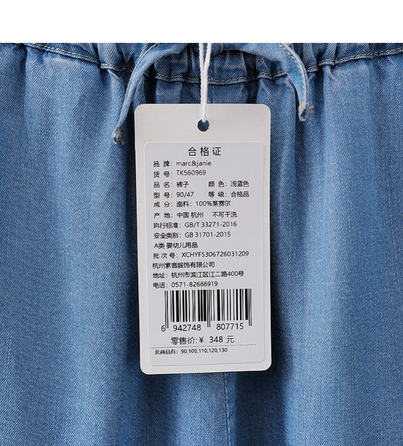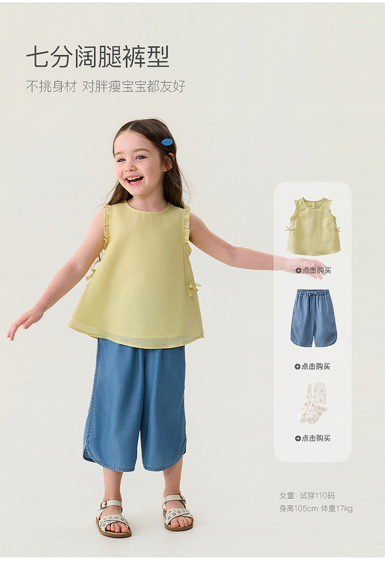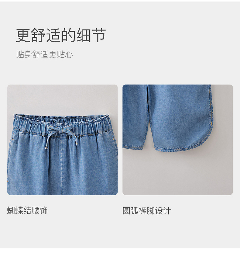 马克珍妮100%莱赛尔女童七分软牛仔阔腿裤2026年夏装新款560969