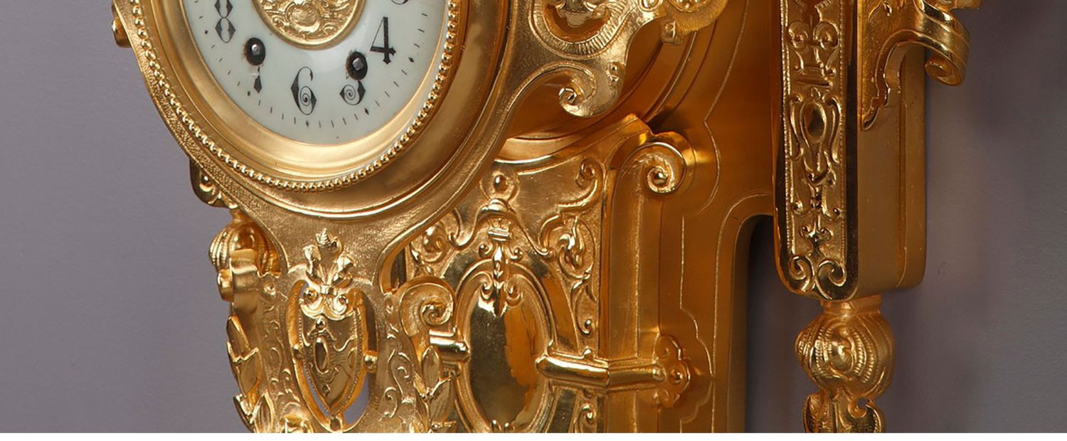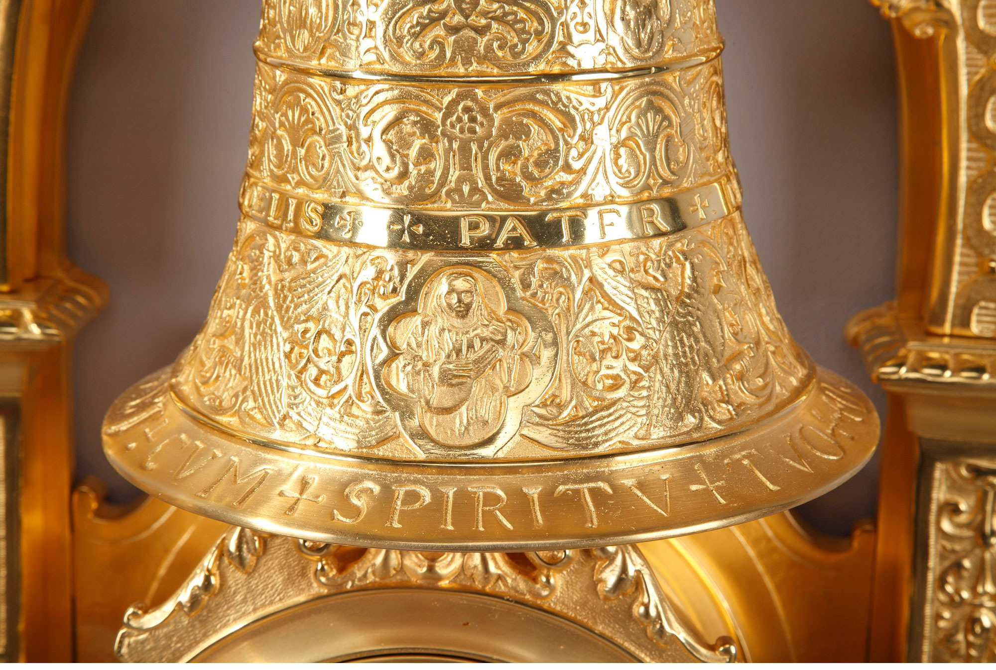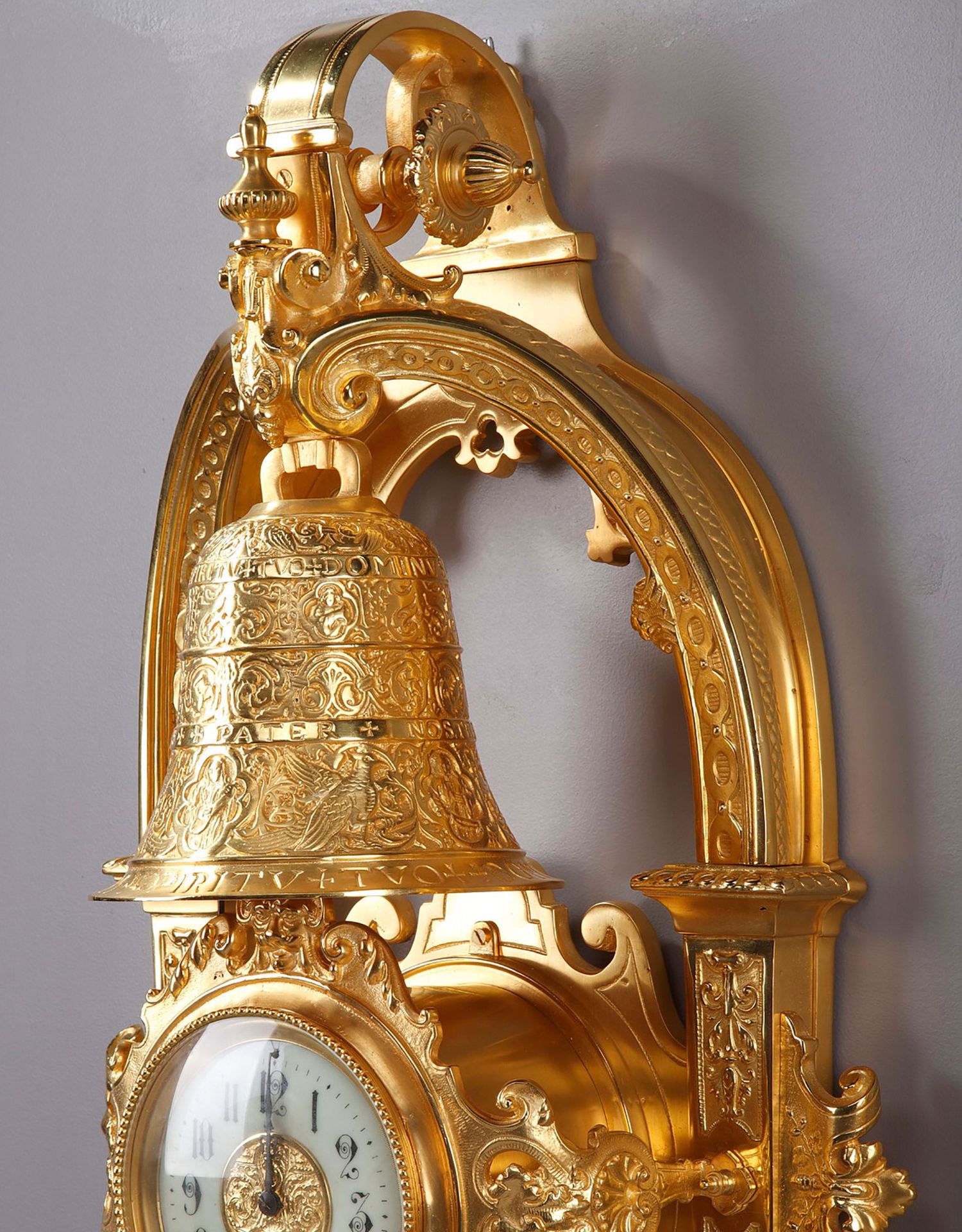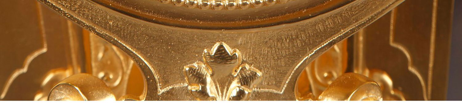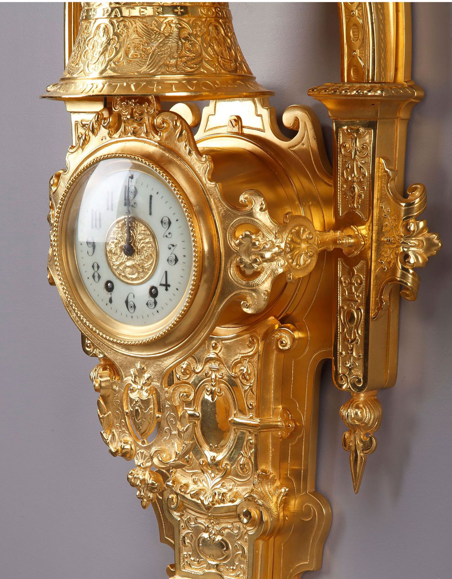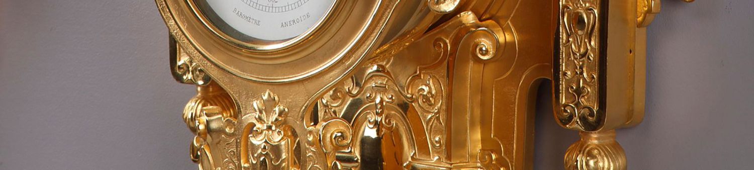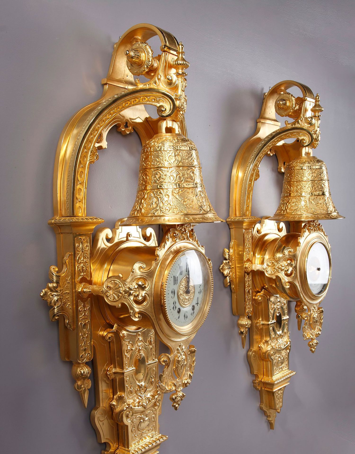 独角鹿西洋古董法国工坊签名教堂主题铜鎏金挂钟及气压计一对