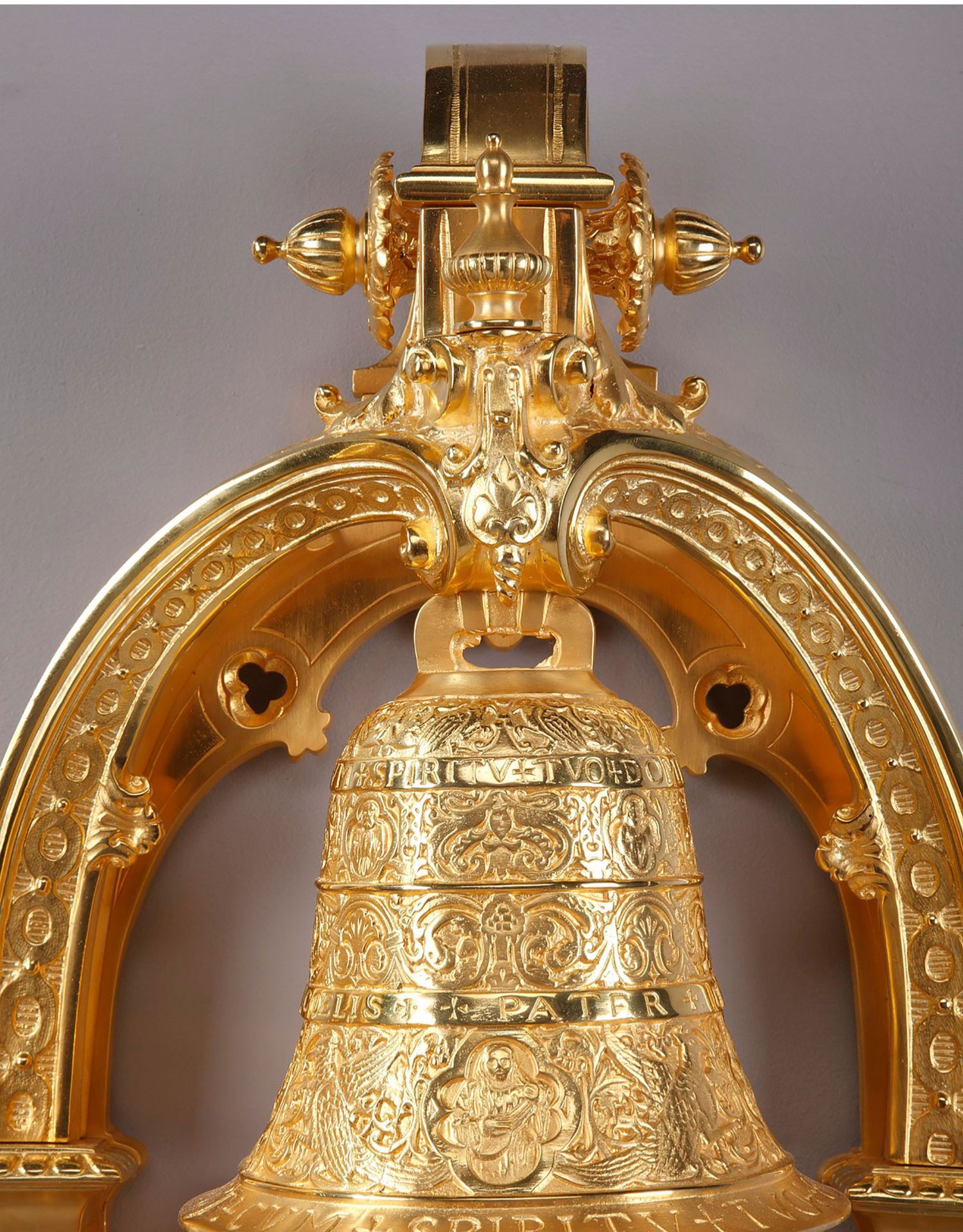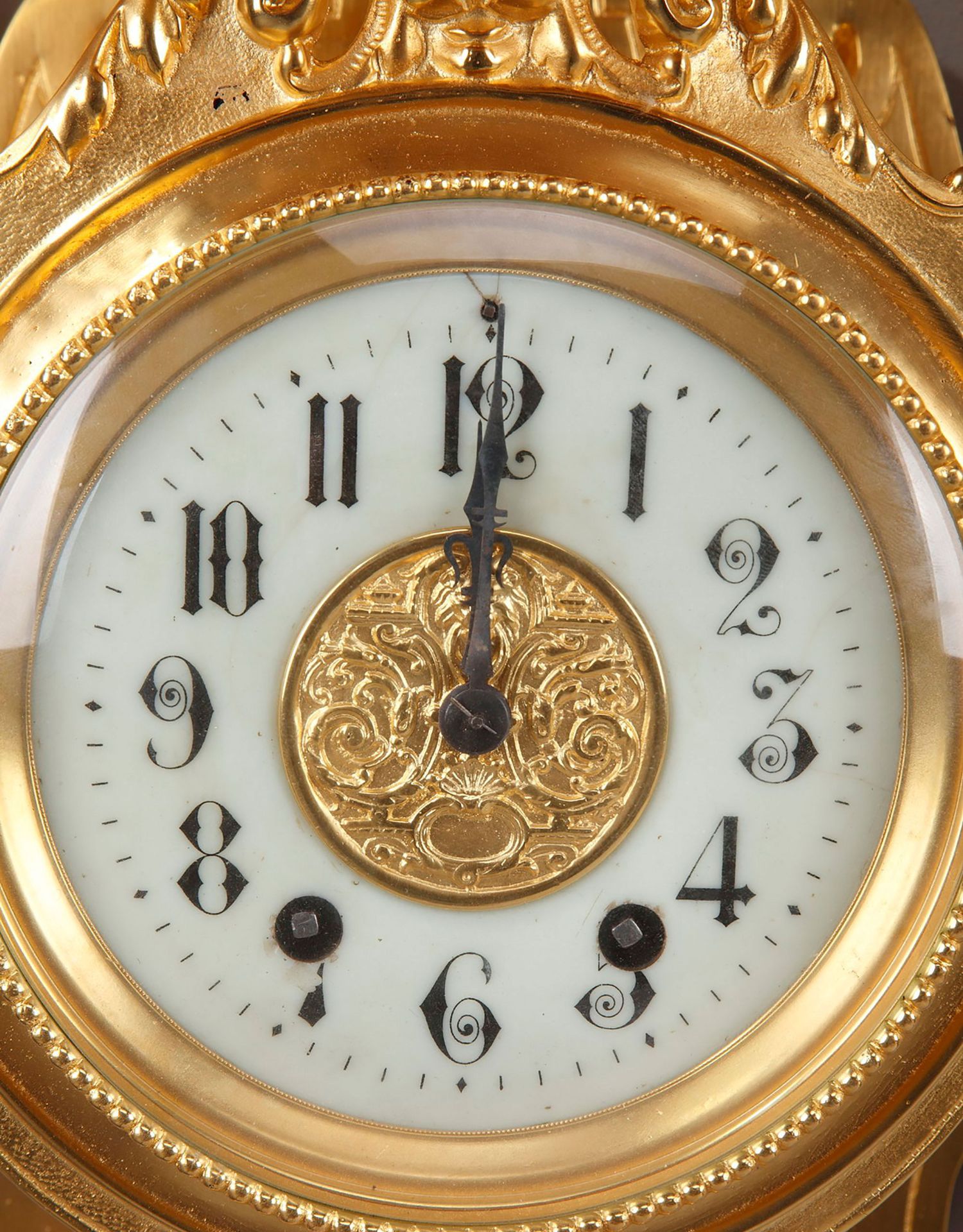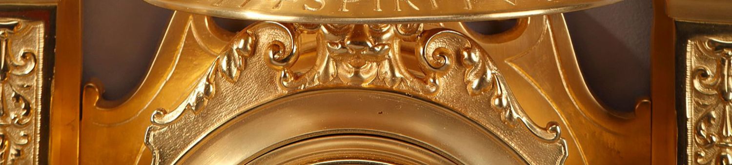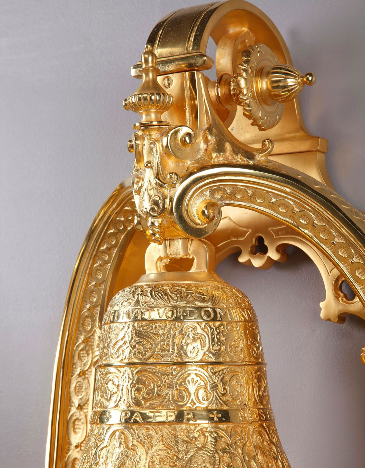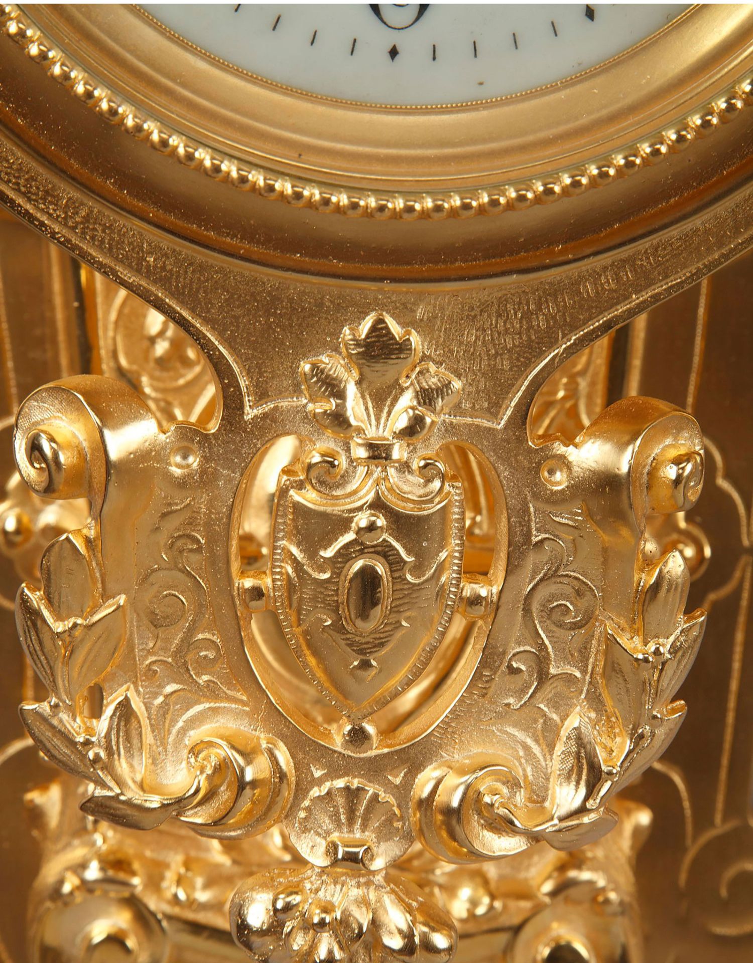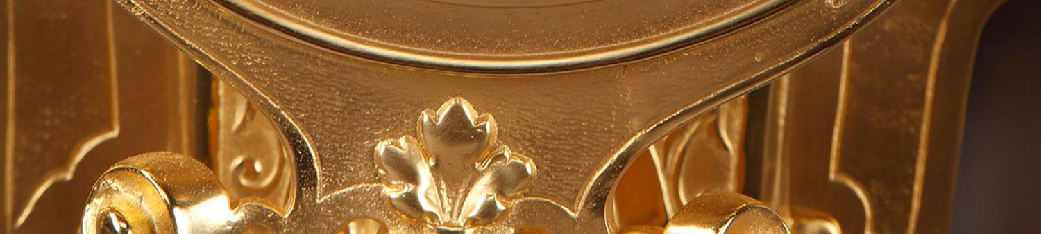 独角鹿西洋古董法国工坊签名教堂主题铜鎏金挂钟及气压计一对