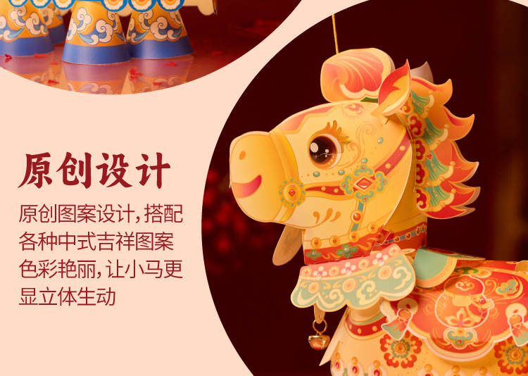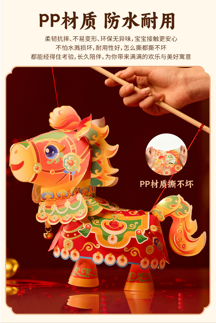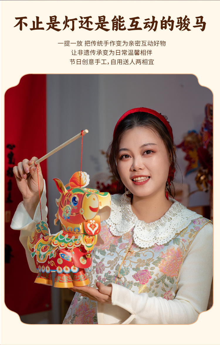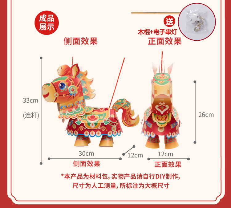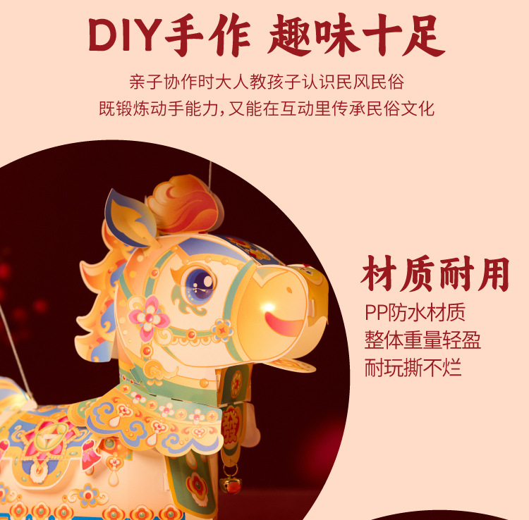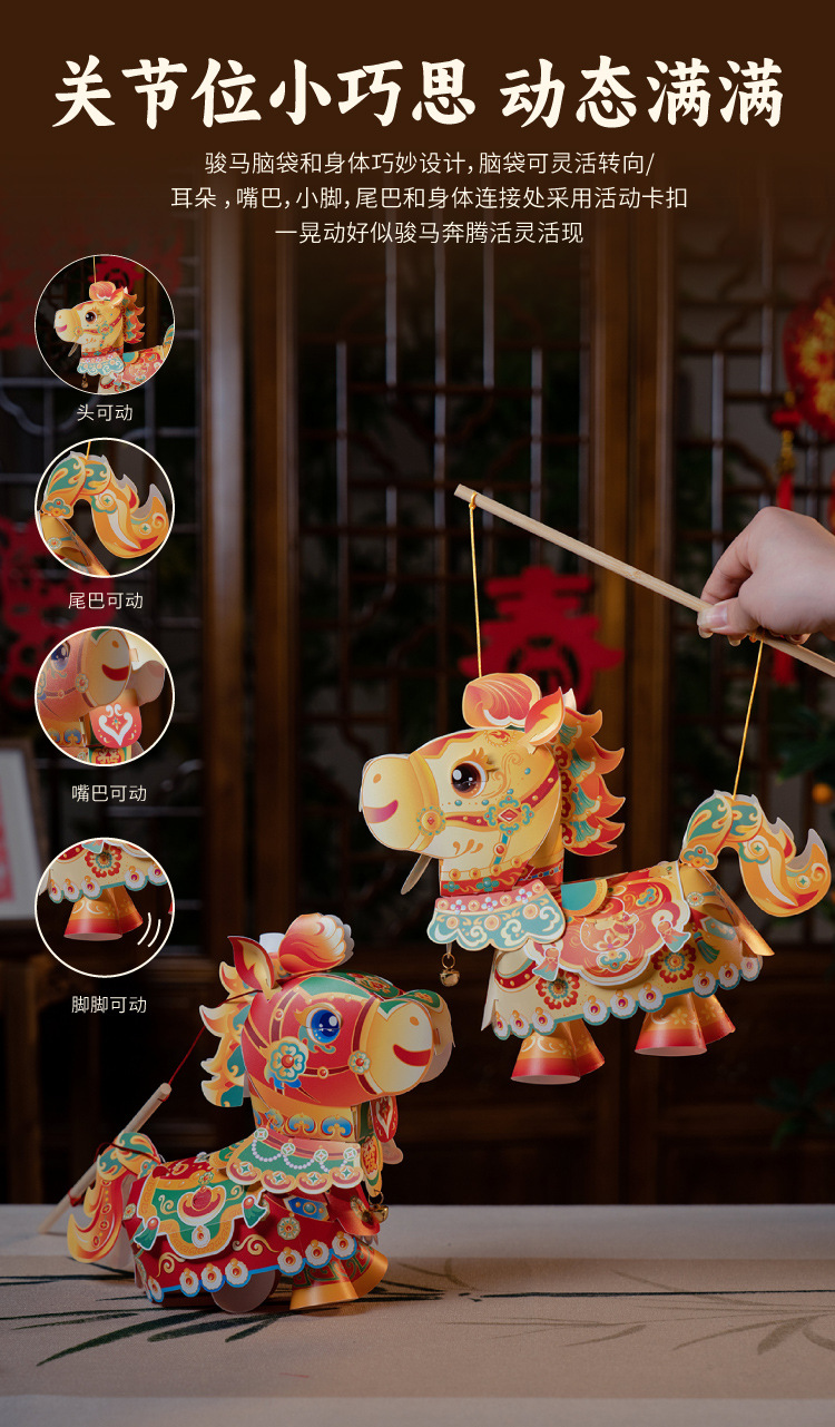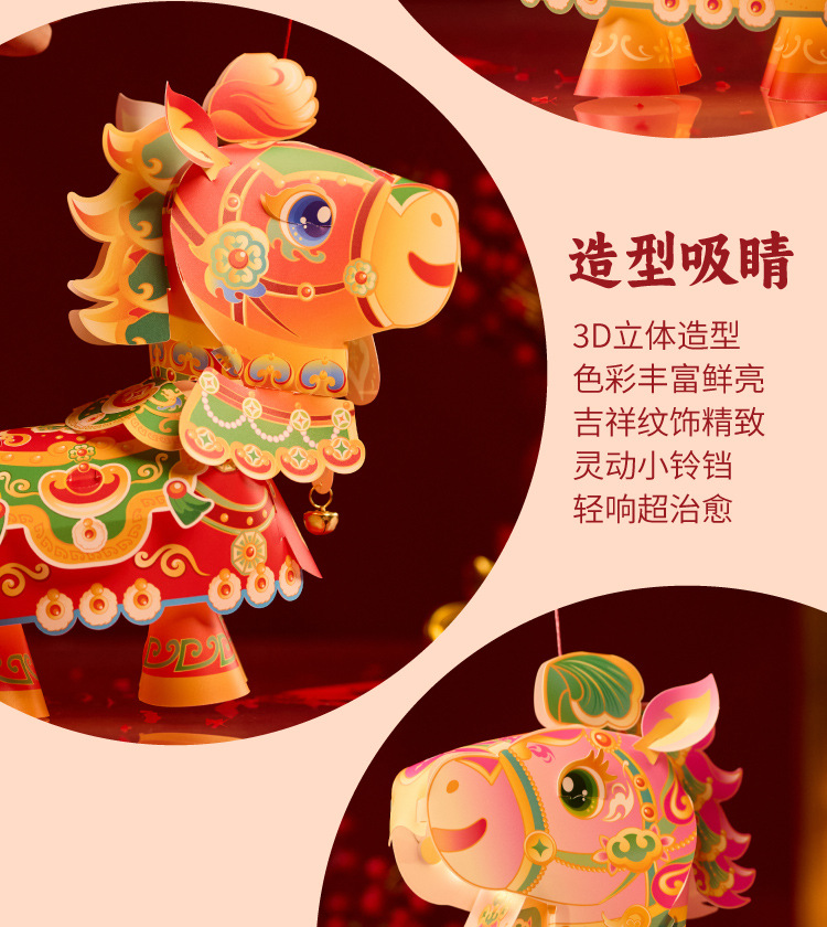 【非遗手工❗️9.9抢🔥国潮新年灯笼】国潮骏马 萌趣吸睛 能端坐 能伫立 还能欢蹦乱跳!马上发diy儿童动手制作材料包手提发光马年春节元宵