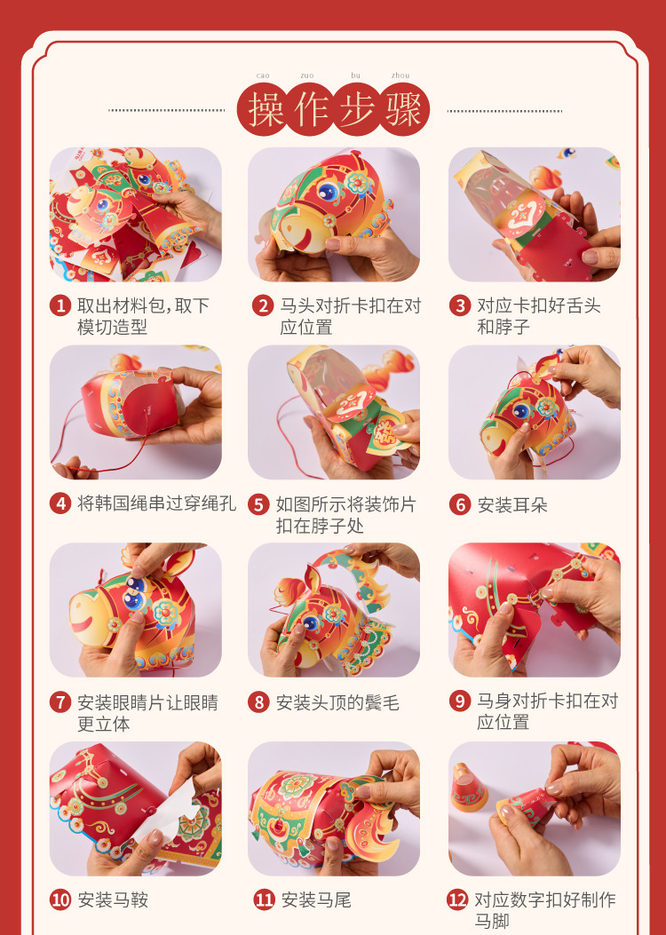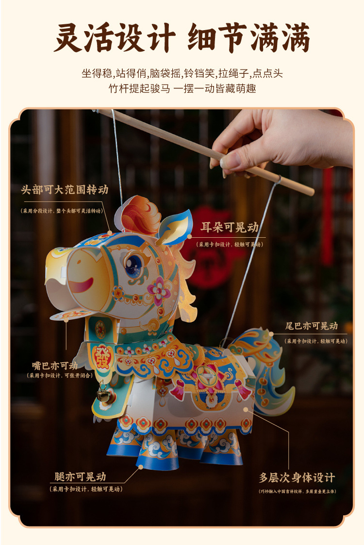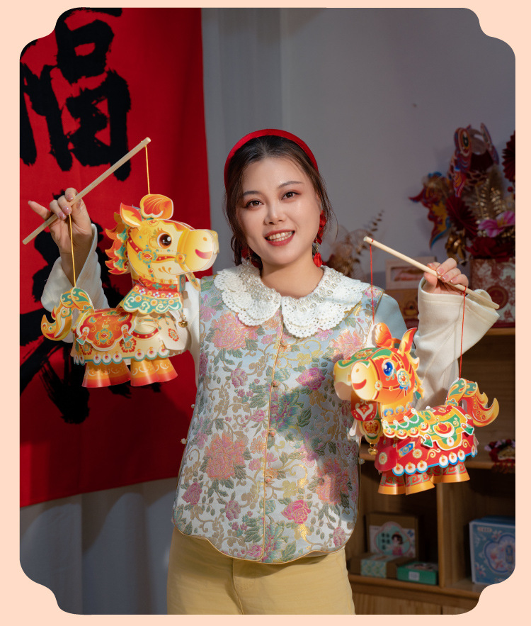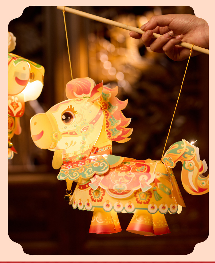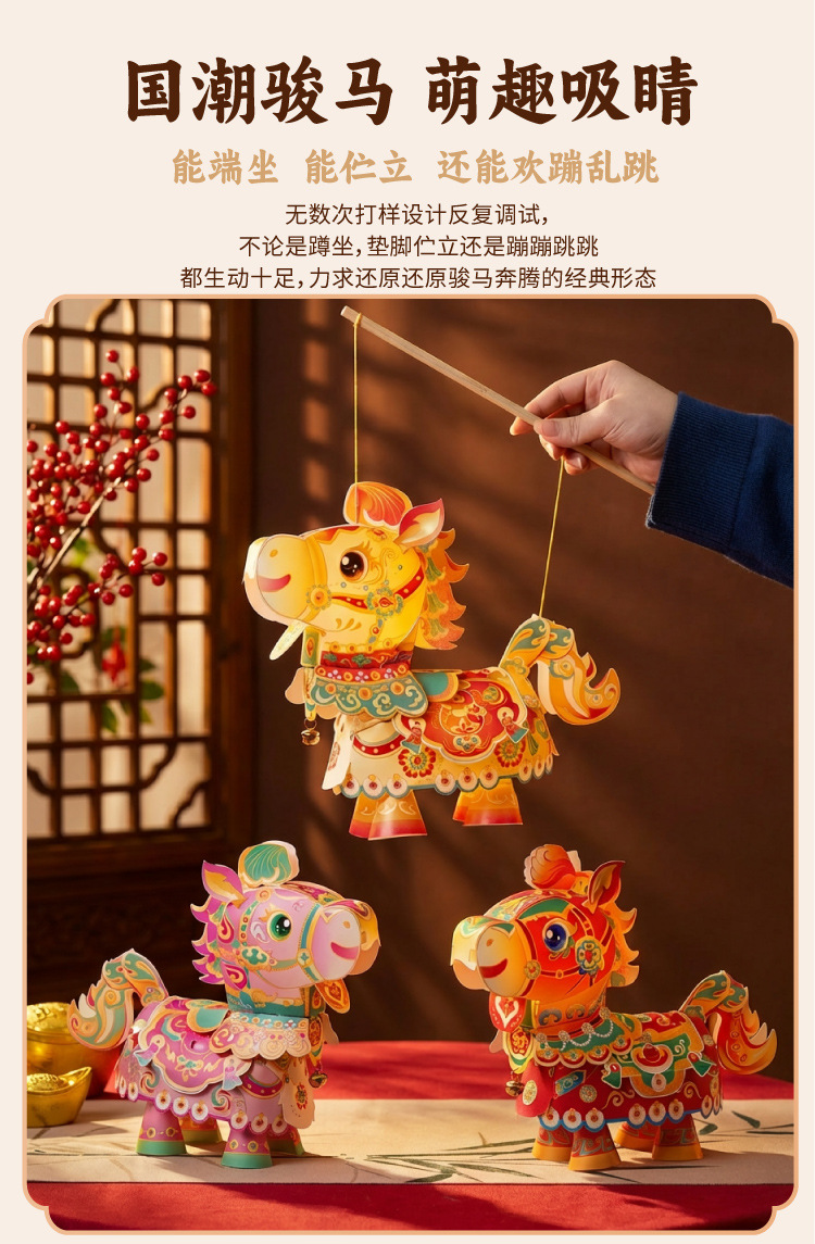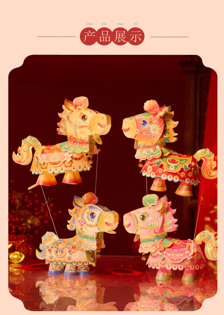 【非遗手工❗️9.9抢🔥国潮新年灯笼】国潮骏马 萌趣吸睛 能端坐 能伫立 还能欢蹦乱跳!马上发diy儿童动手制作材料包手提发光马年春节元宵