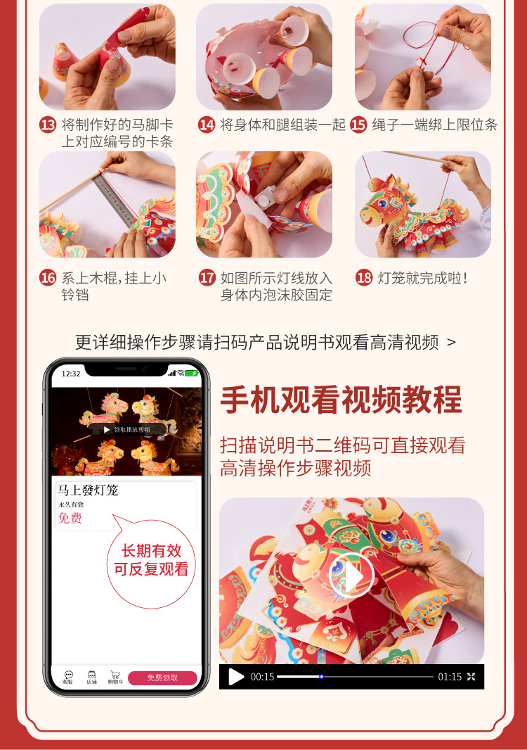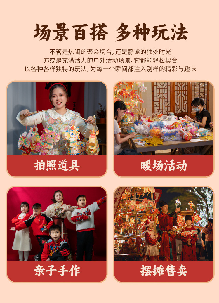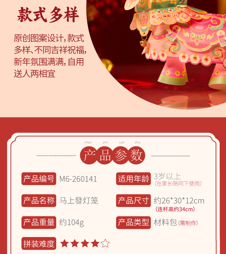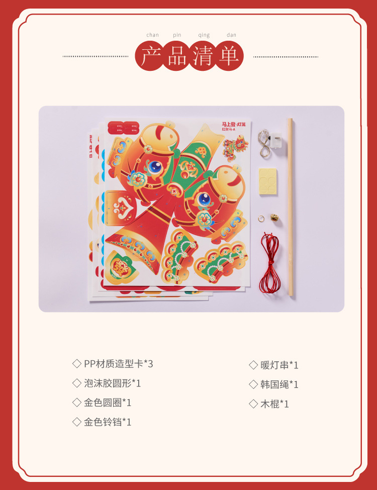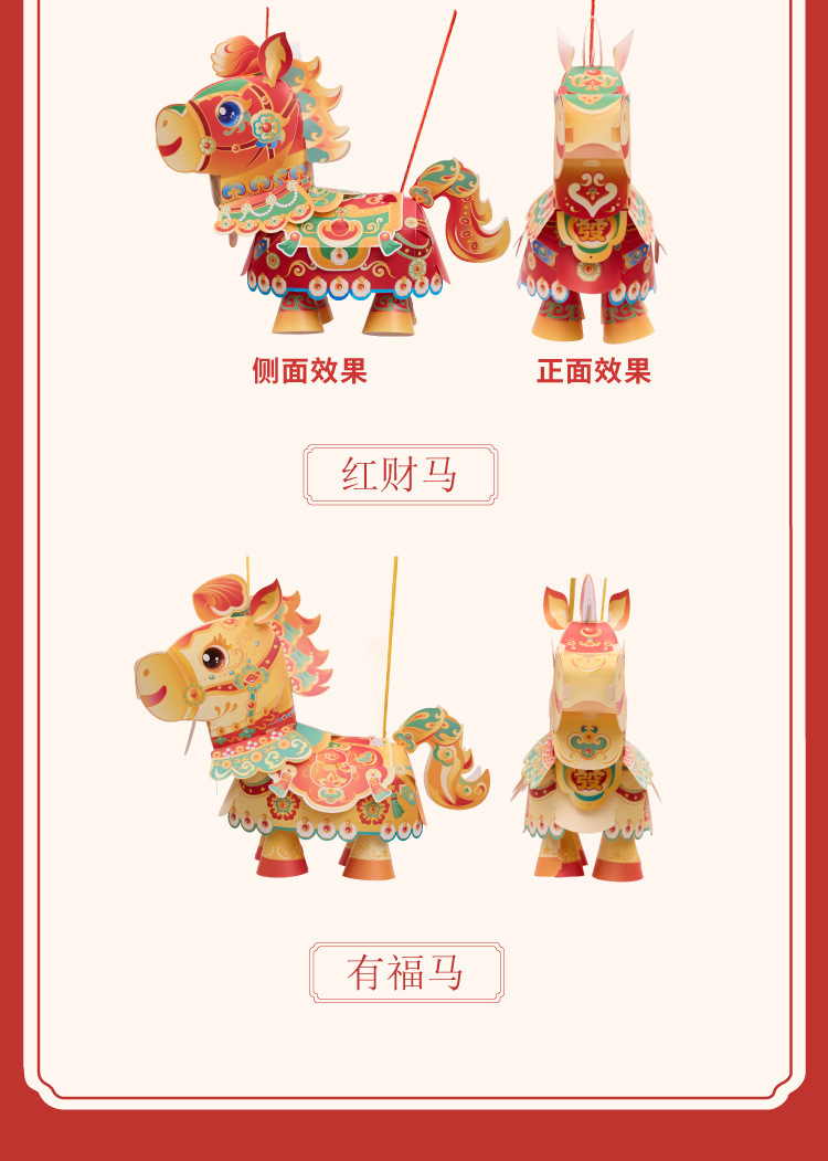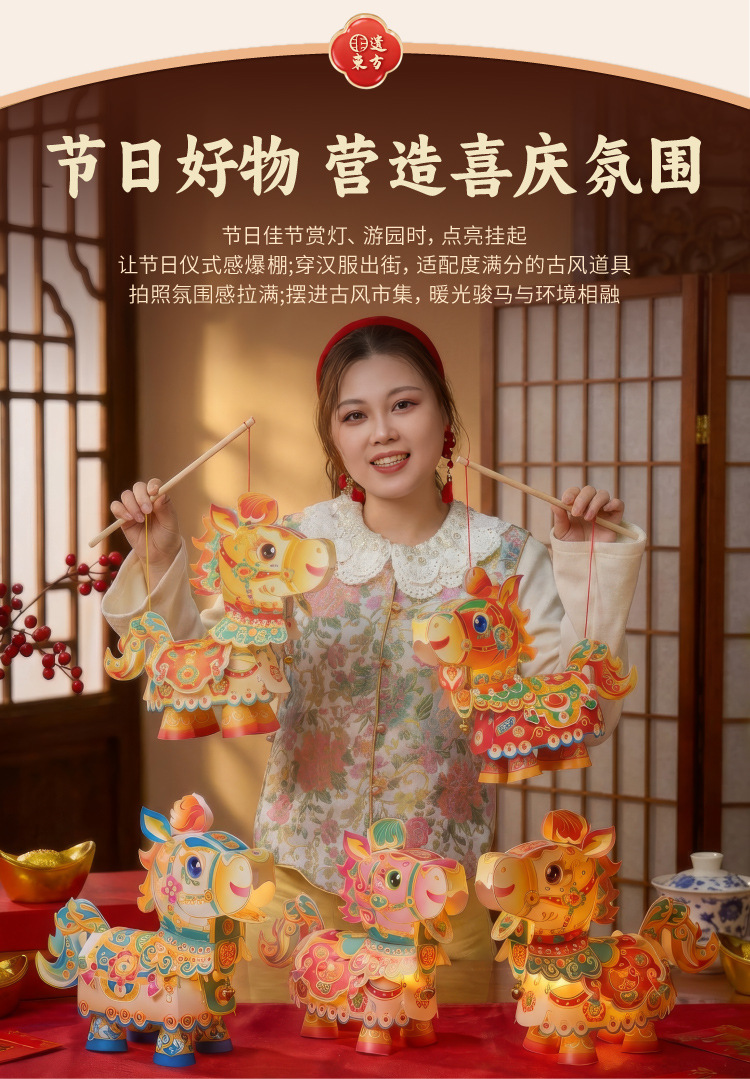 【非遗手工❗️9.9抢🔥国潮新年灯笼】国潮骏马 萌趣吸睛 能端坐 能伫立 还能欢蹦乱跳!马上发diy儿童动手制作材料包手提发光马年春节元宵