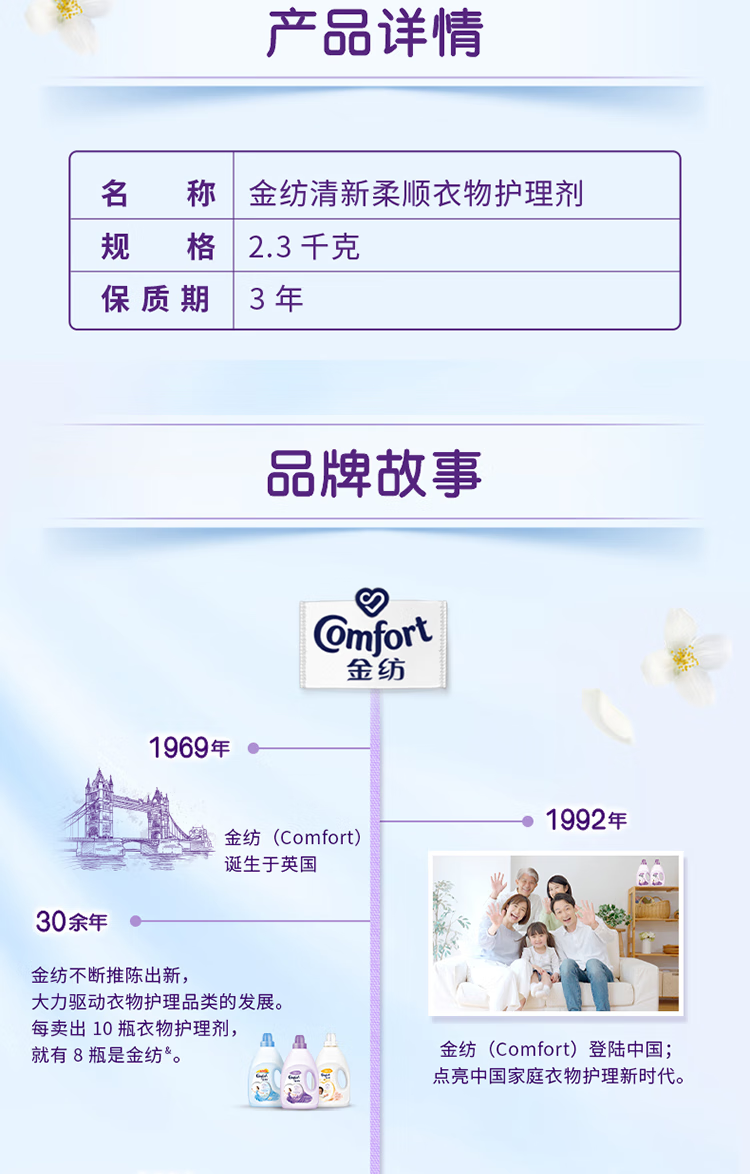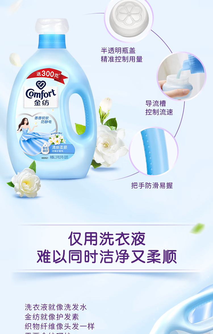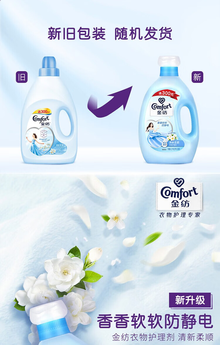 金纺去汗味衣物柔顺剂 防静电柔顺持久留香 清新柔顺2.3kg
