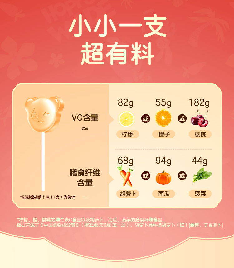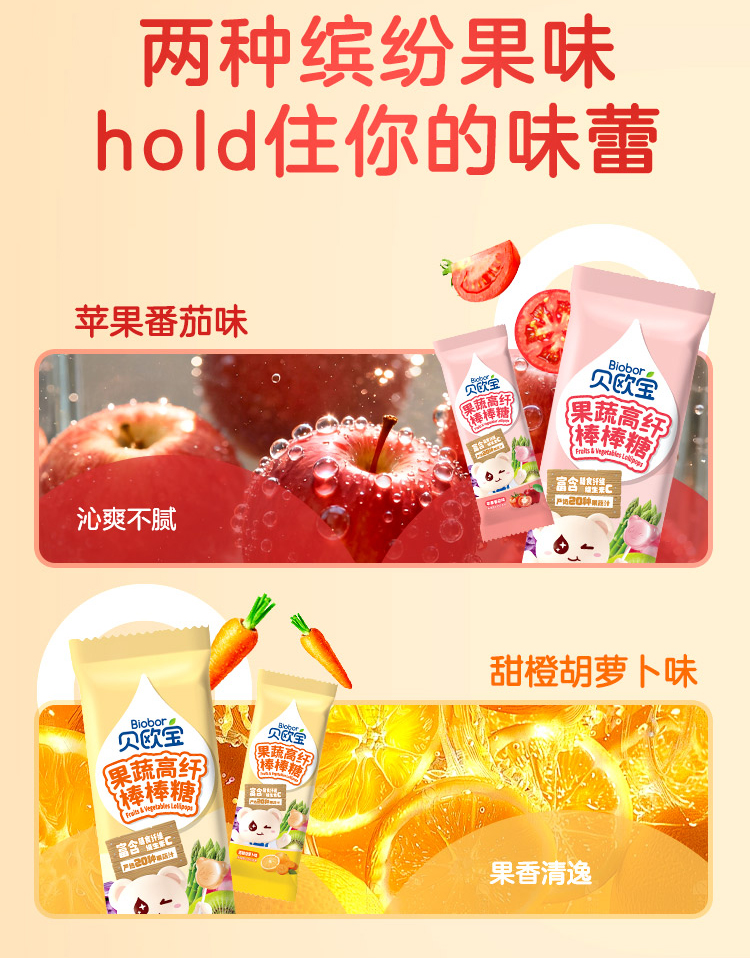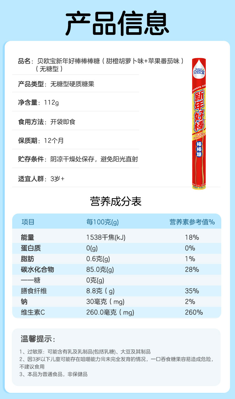 贝欧宝0糖棒棒糖富含膳食纤维维生素C儿童糖果零食