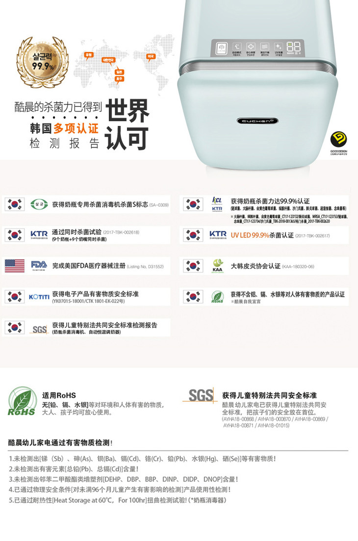 韩国cuchen酷晨 原装进口婴儿奶瓶杀菌消毒器马卡龙系列