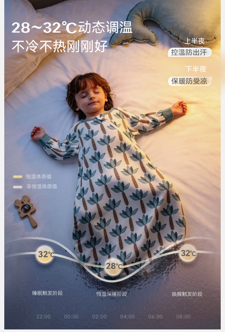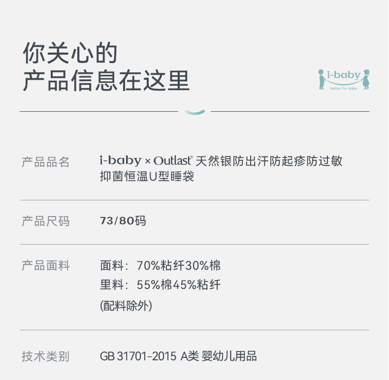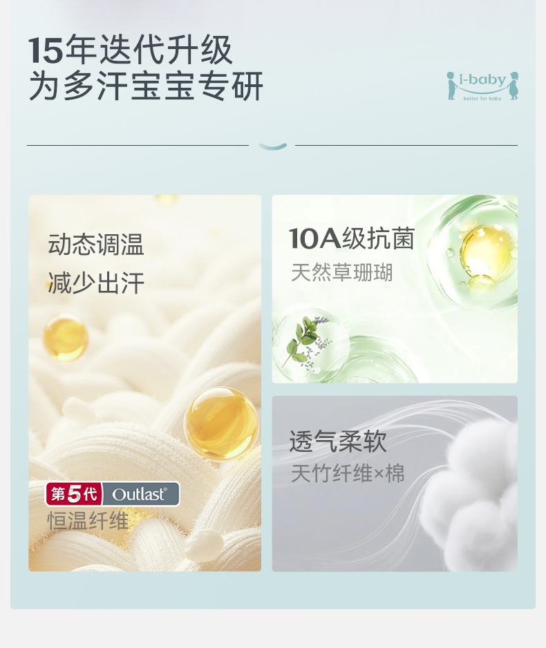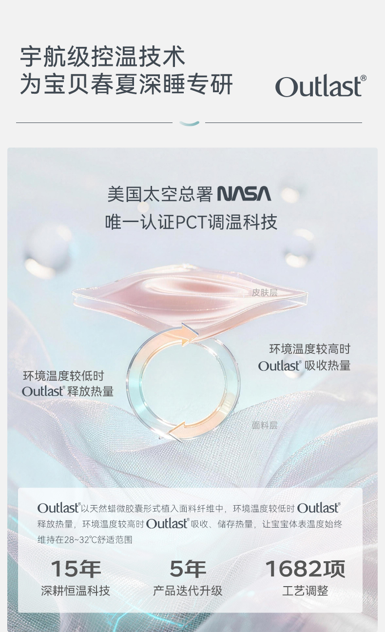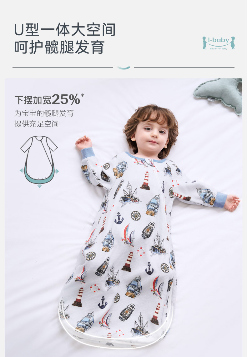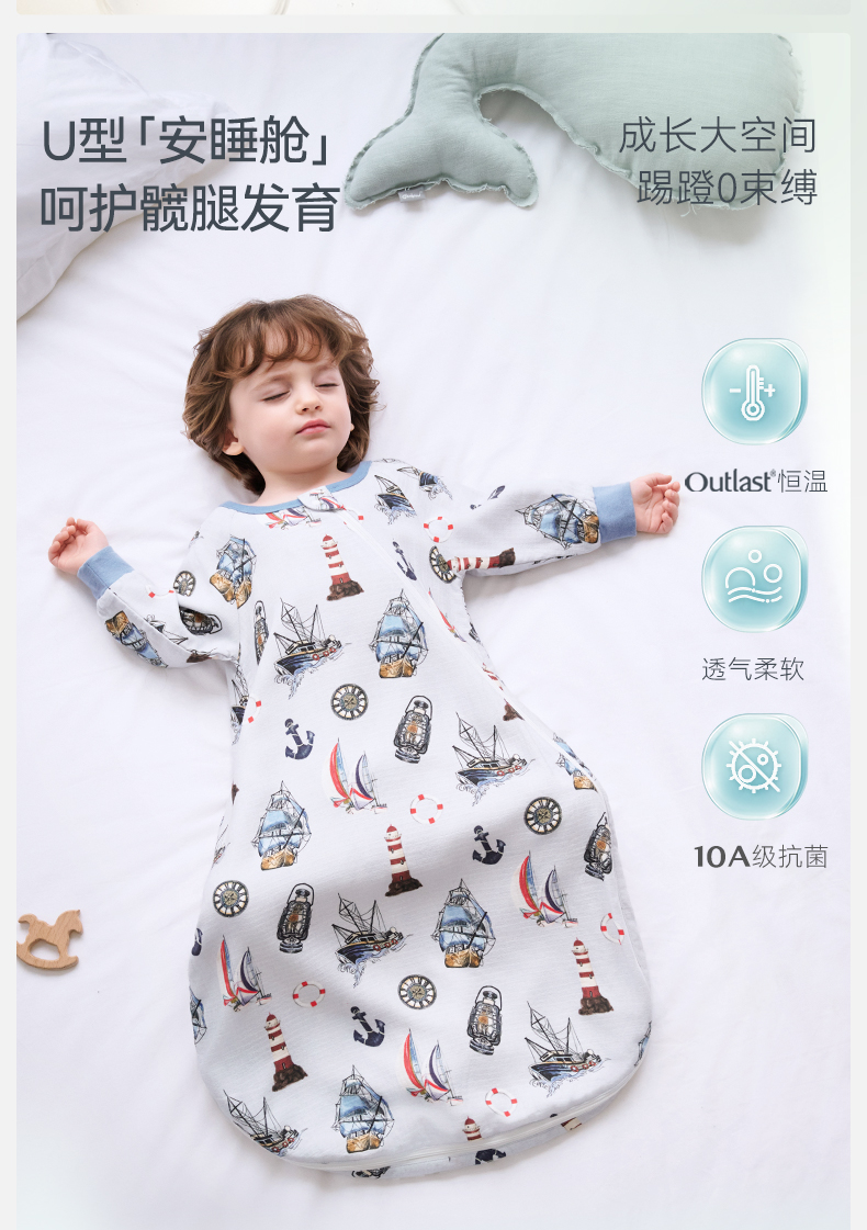 【2026春夏新品】ibaby×outlast太空科技恒温婴儿襁褓睡袋新生儿U型四层纱布睡袋使用温度24-28°C