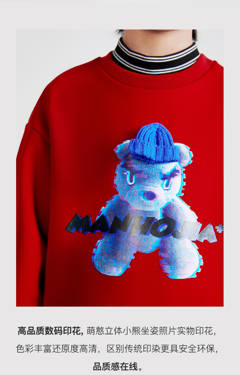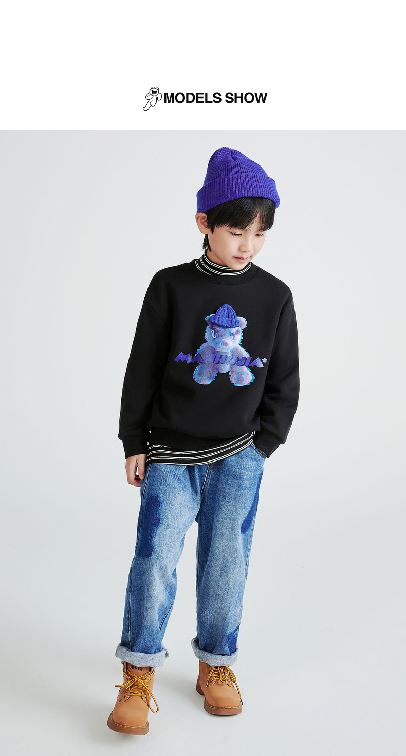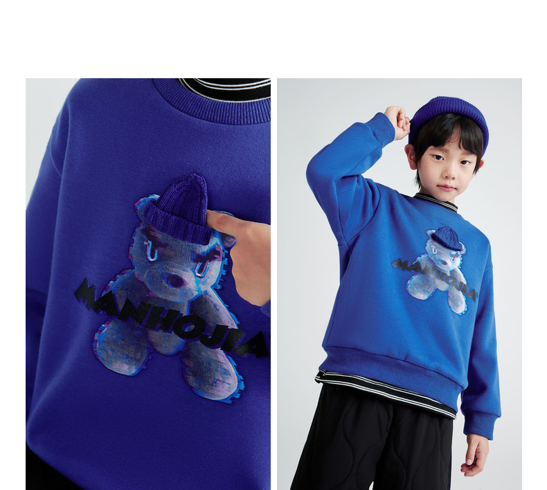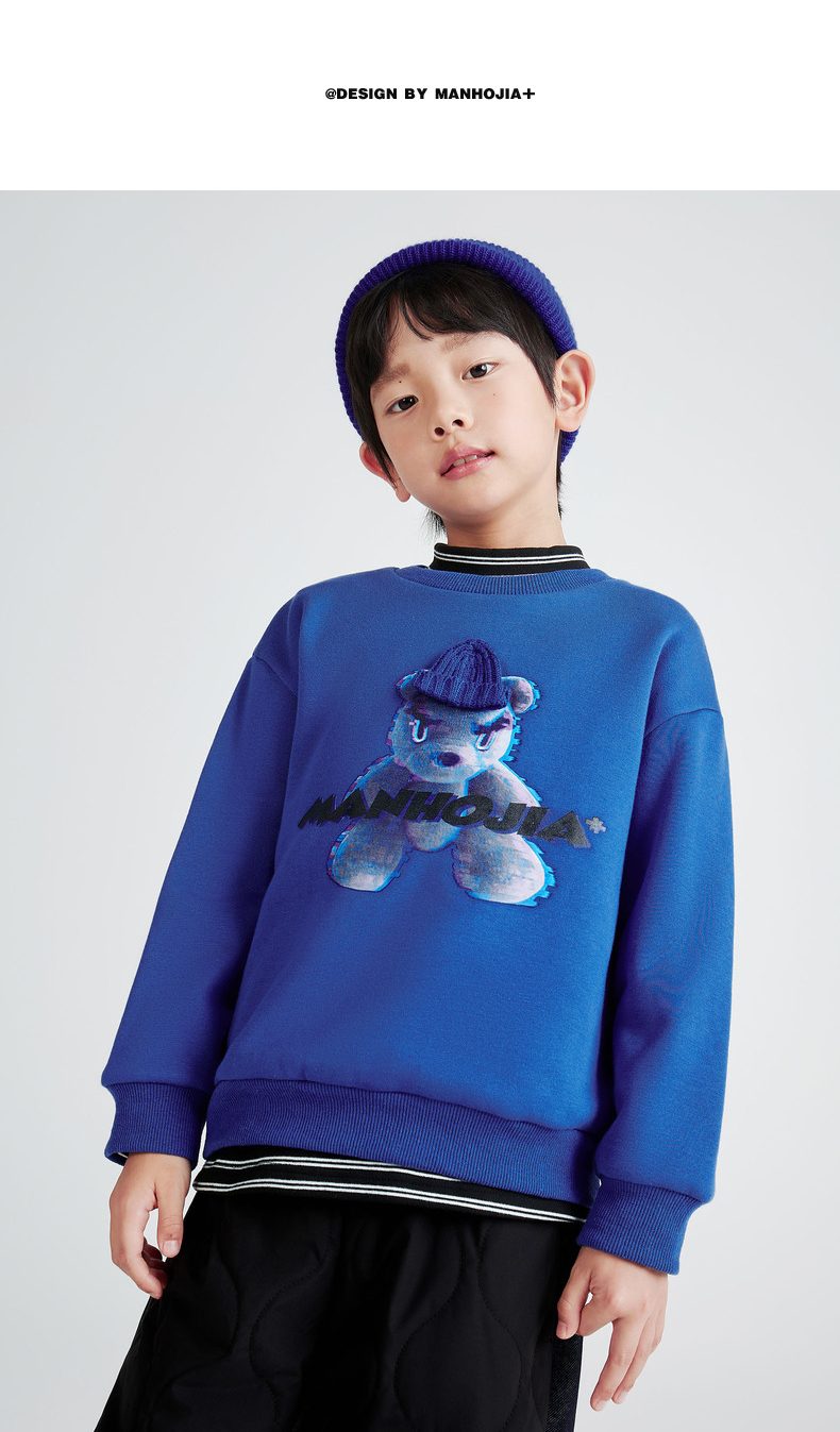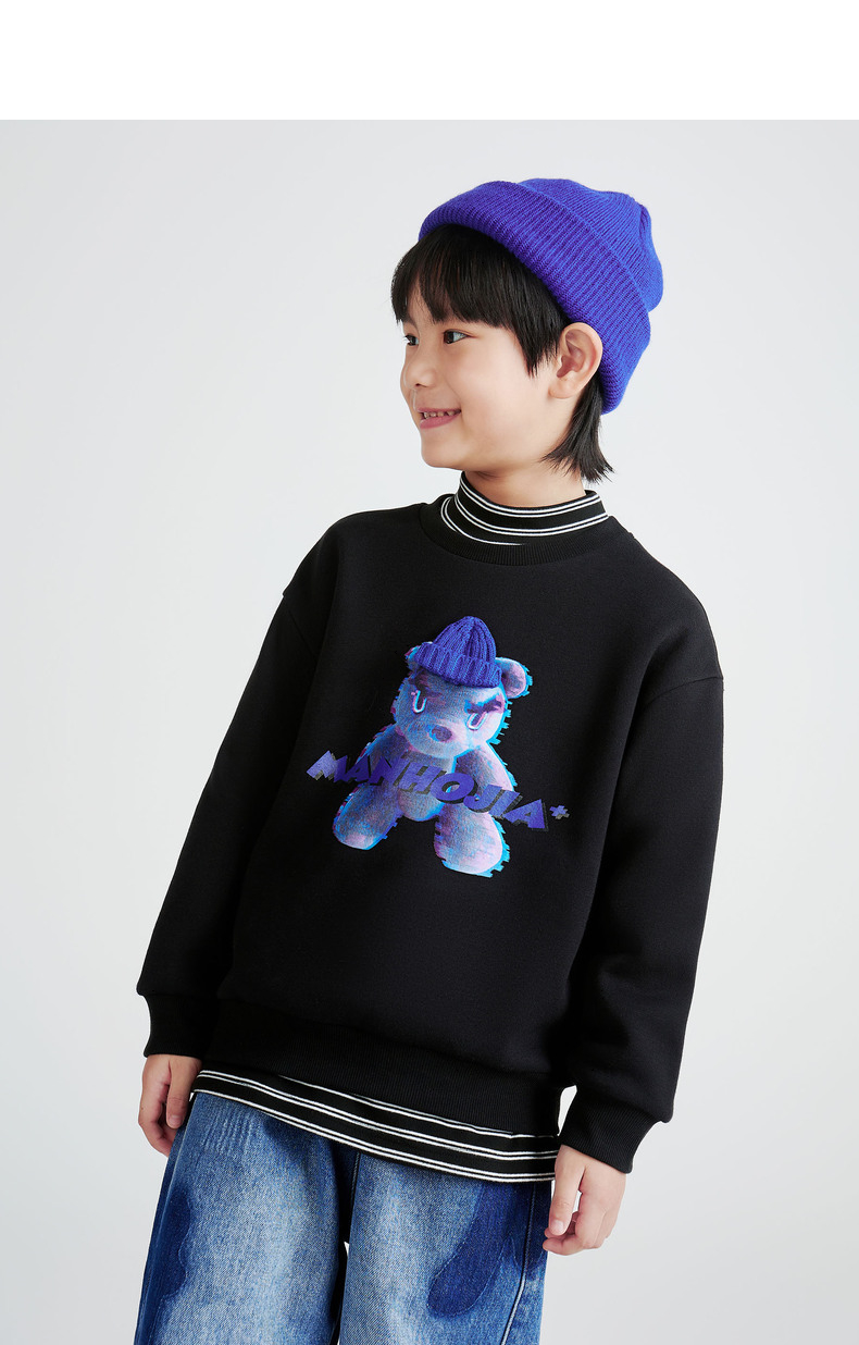 漫画家潮趣童装亲子儿童卫衣冬装摇粒绒印花加厚保暖圆领上衣