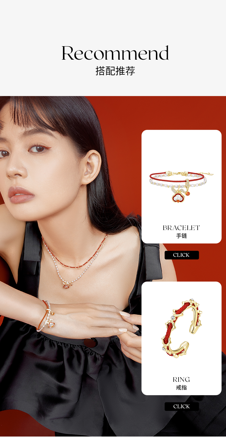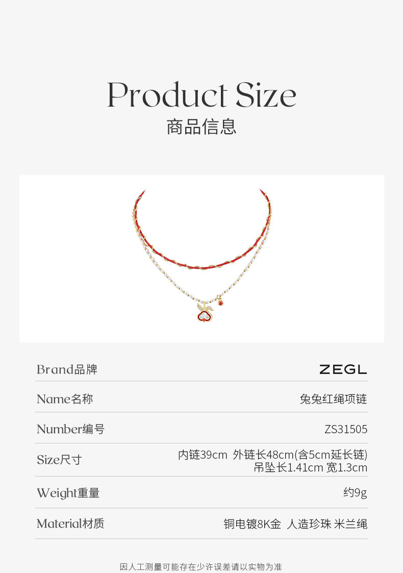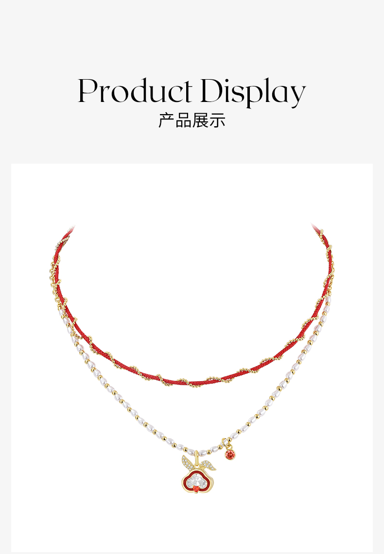 ZEGL设计师本命年系列如意锁兔子项链女生轻奢小众双层红绳锁骨链