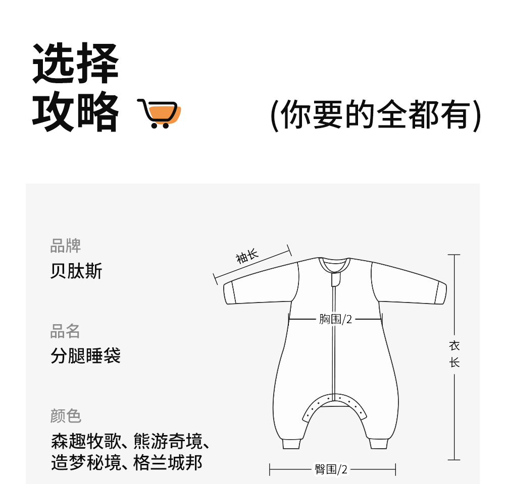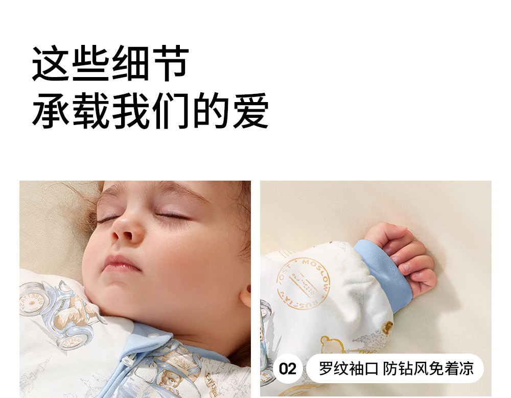 贝肽斯[肽柔]婴儿睡袋分腿秋冬款宝宝纯棉儿童恒温防踢被四季通用