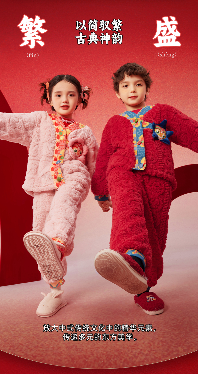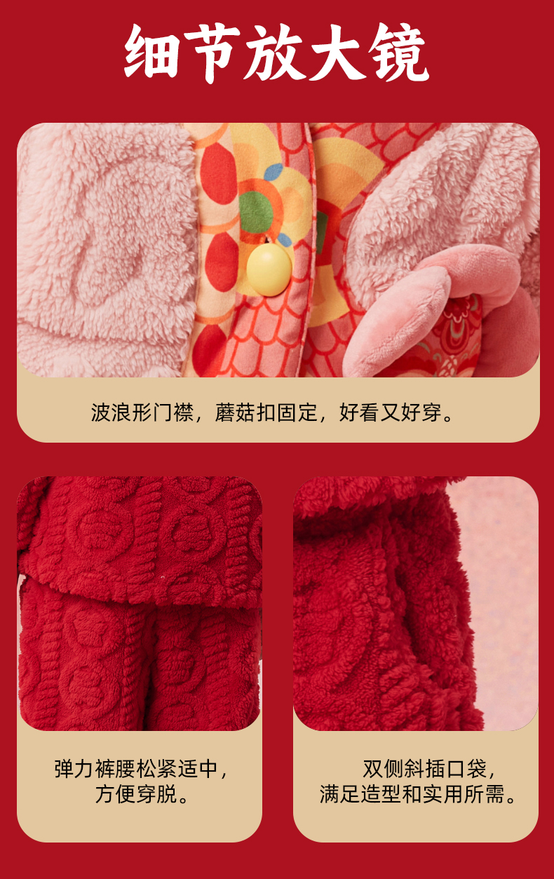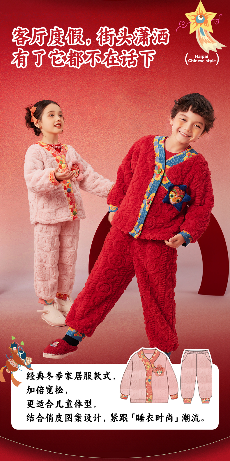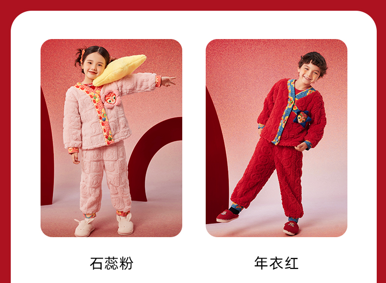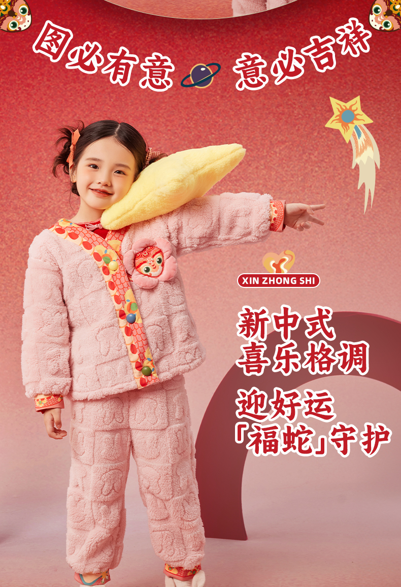 蛇么都旺年衣童装儿童家居服套装2025冬新款男女童睡衣本命年红色保暖套装