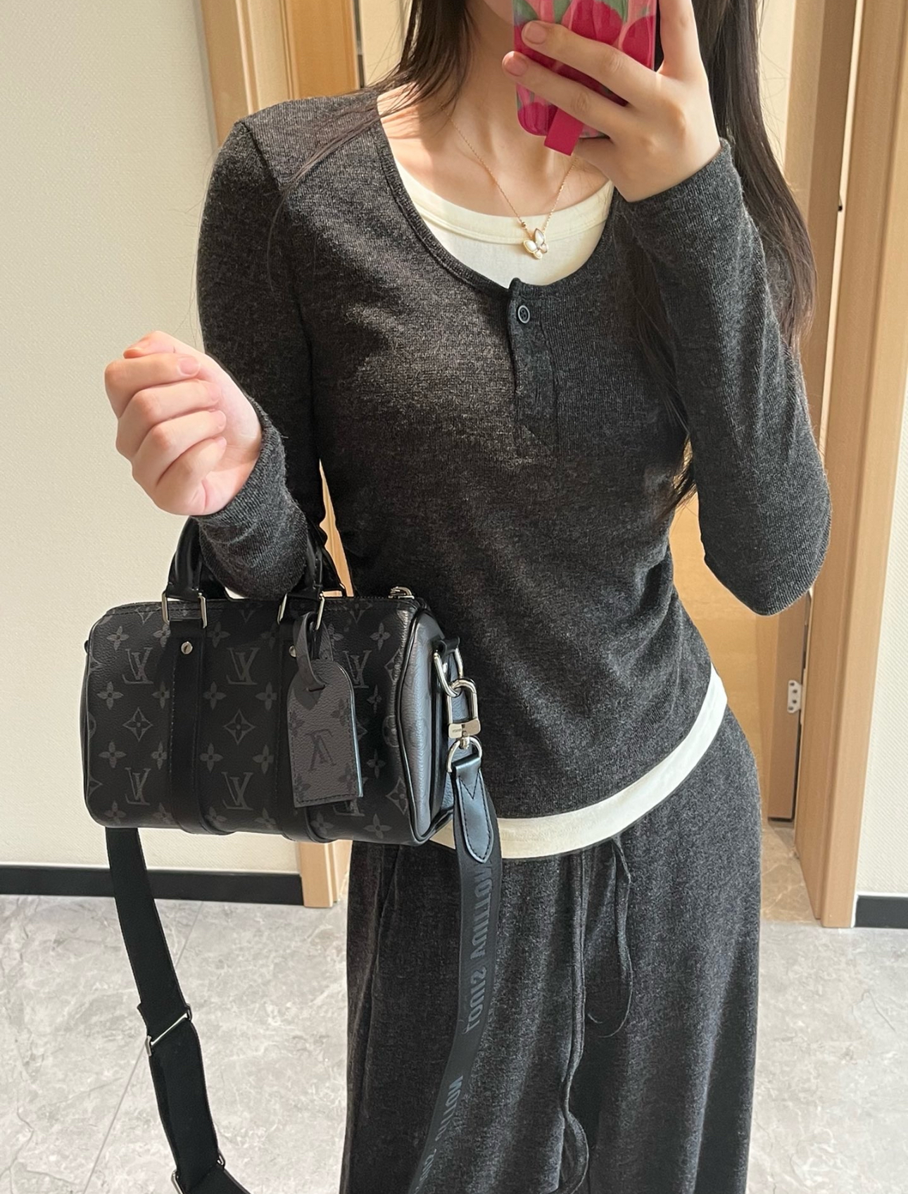 男女通吃 经典黑老花配上keepall 包型简直万能 满足绝大多数男女生一天在外的需求,无论是通勤或是出游都能胜任