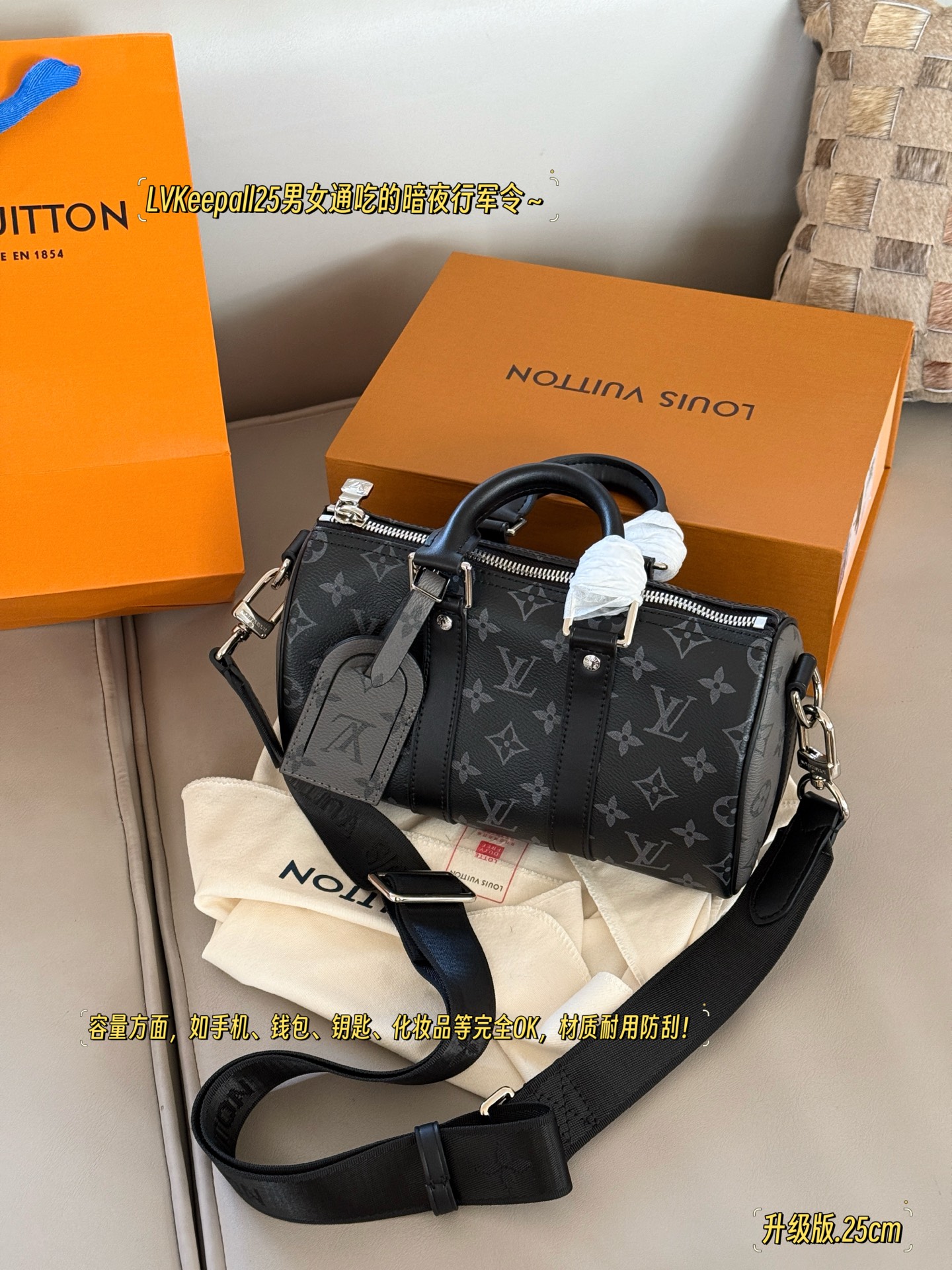 顶级免税版 VIP专柜体验 收到即官网同样 Lv keepall 25黑武士枕头包 男女通吃 经典黑老花配上keepall 包型简直万能 满足绝大多数男女生一天在外的需求,无论是通勤或是出游都能胜任
