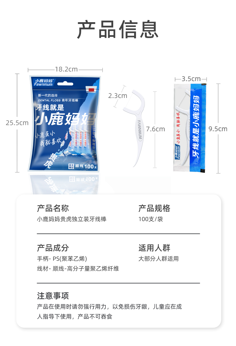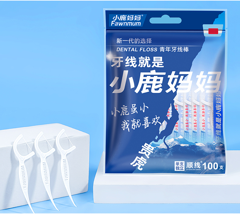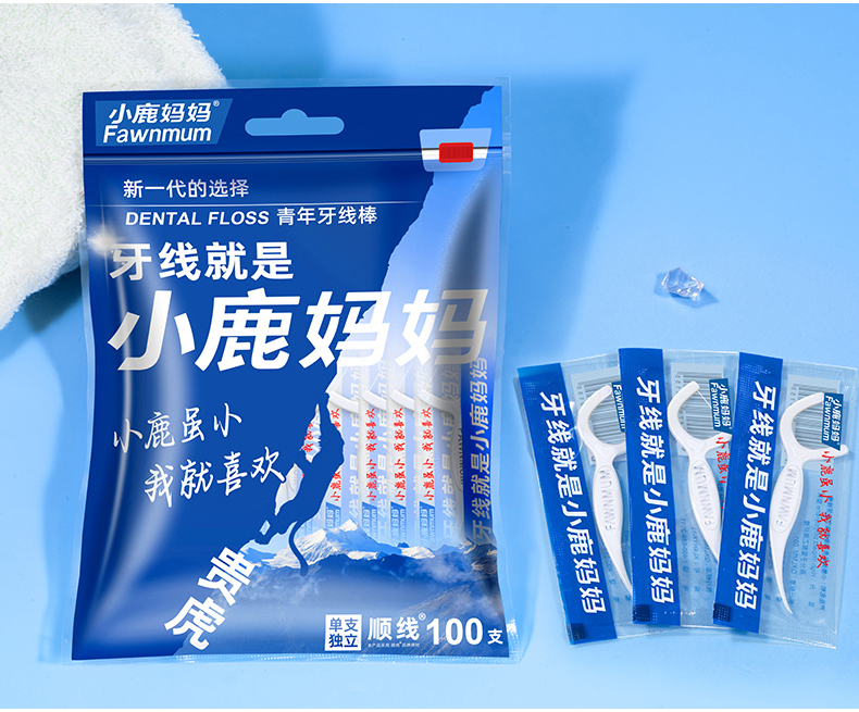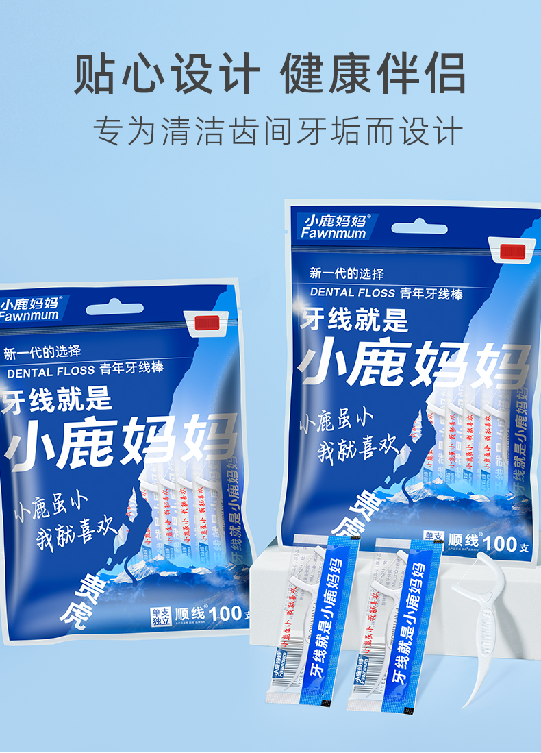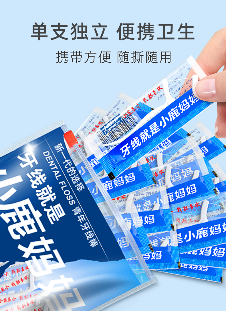 小鹿妈妈 贵虎牙线棒 拉链袋 独立100支 清洁牙缝 齿间清新 一支双用 48小时发货