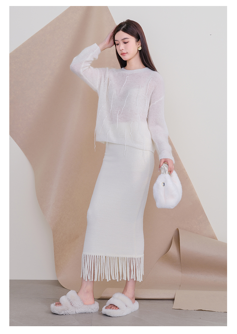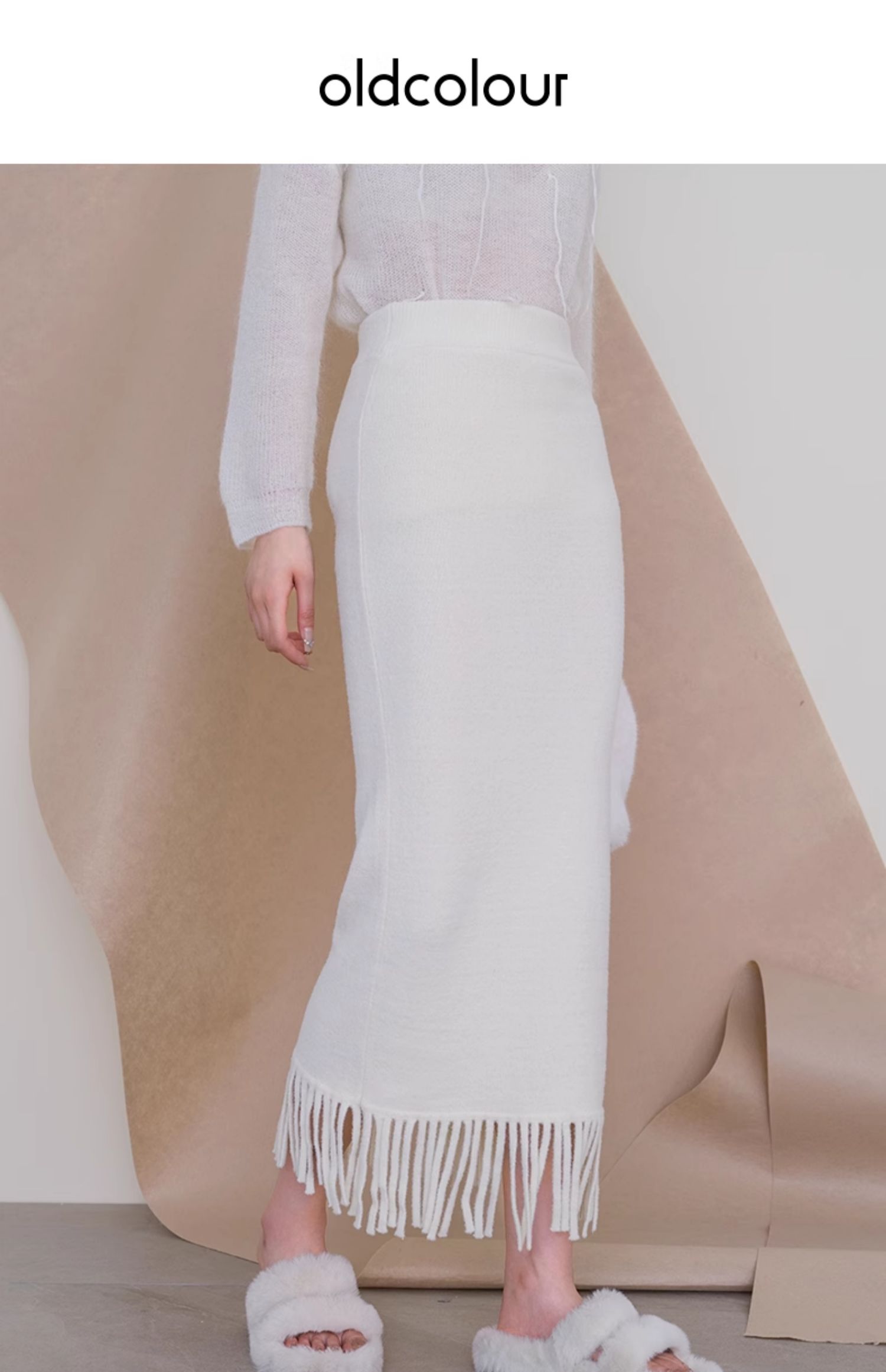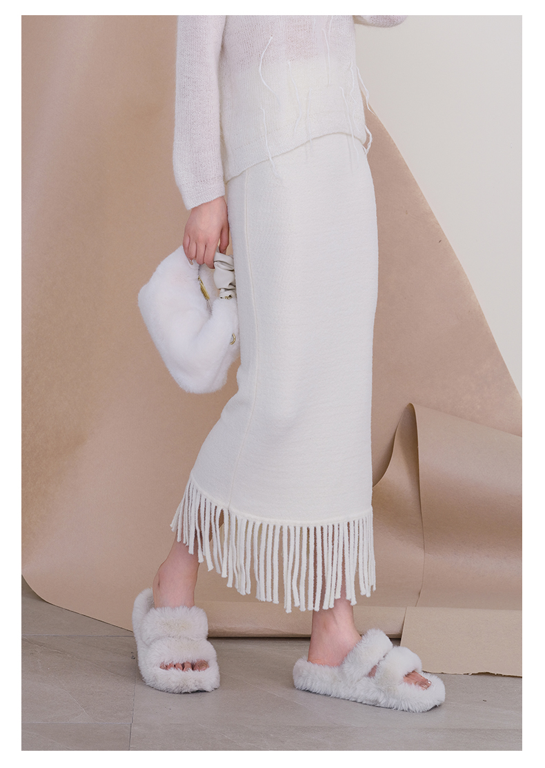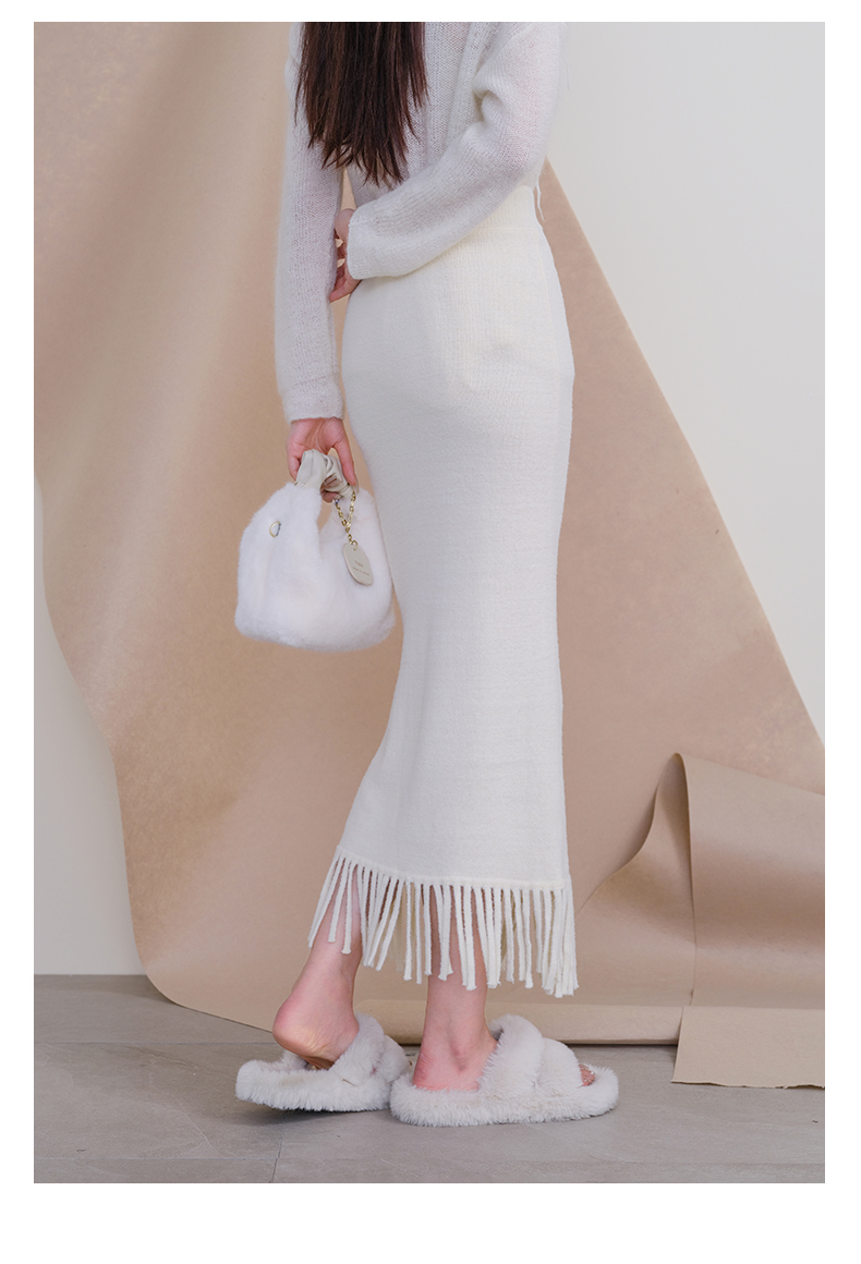 oldcolour欧珂冬季时尚纯色包臀鱼尾流苏毛织半裙女P460603A1