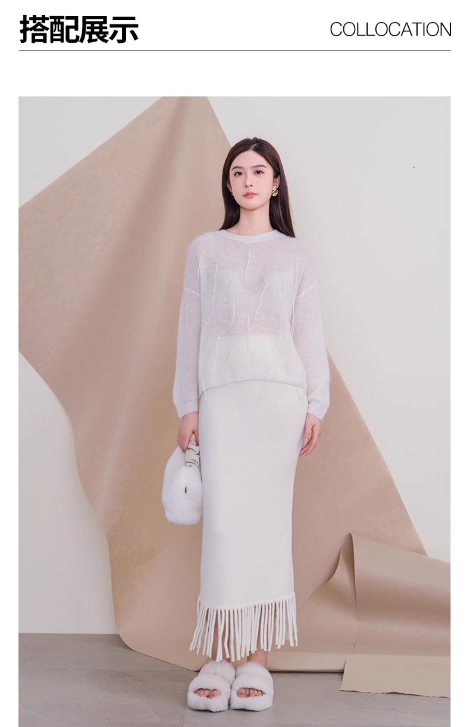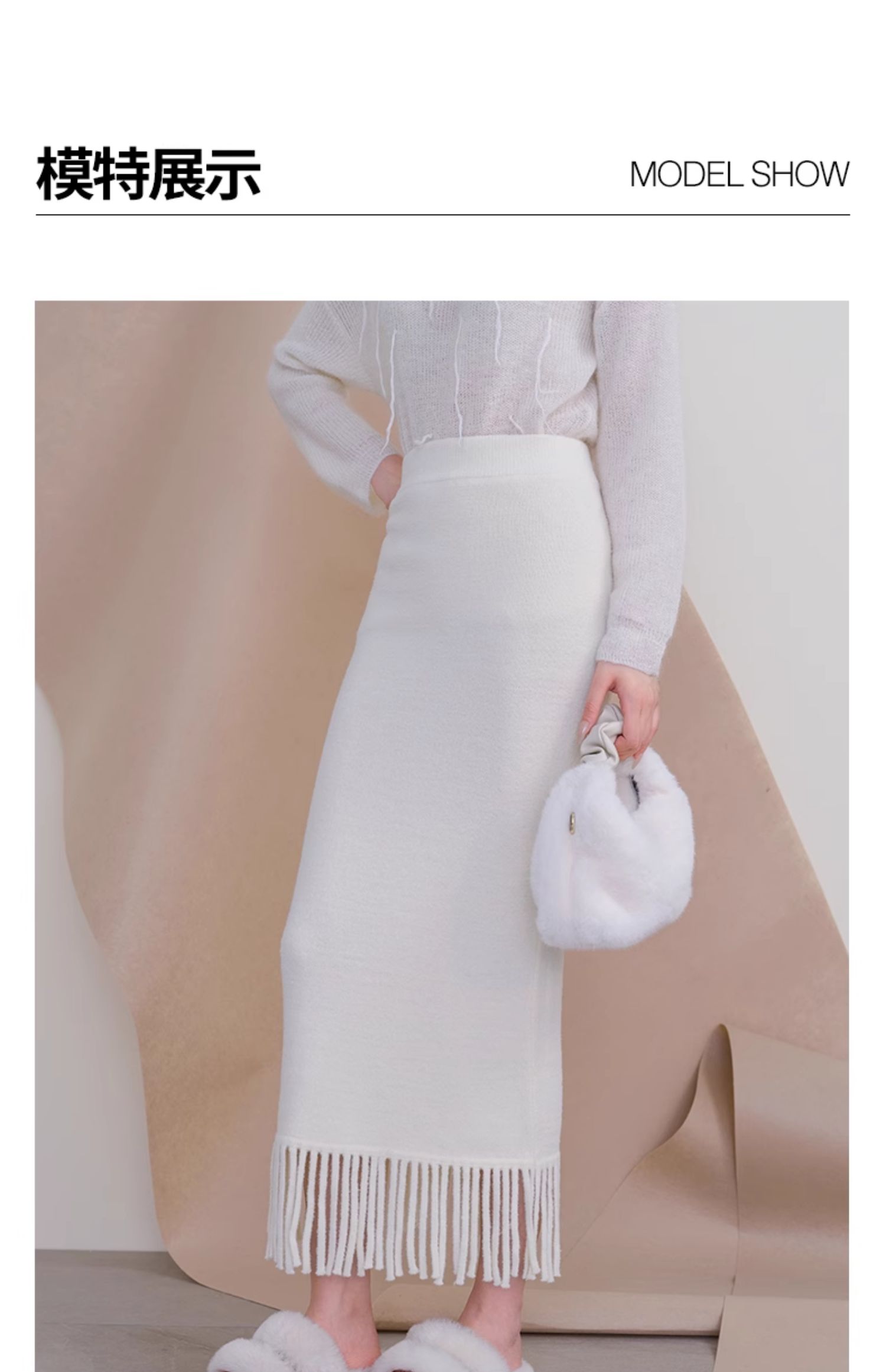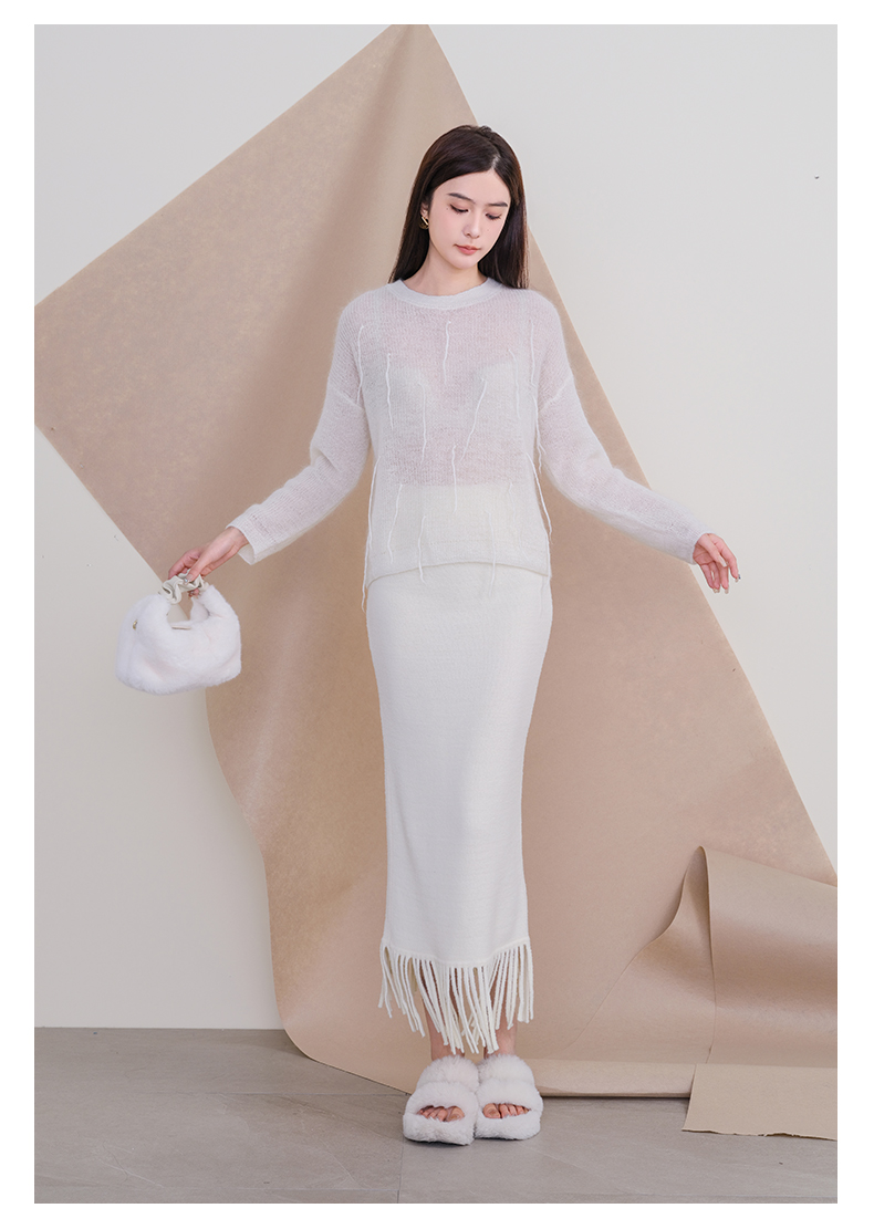 oldcolour欧珂冬季时尚纯色包臀鱼尾流苏毛织半裙女P460603A1