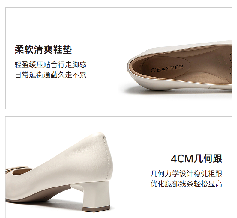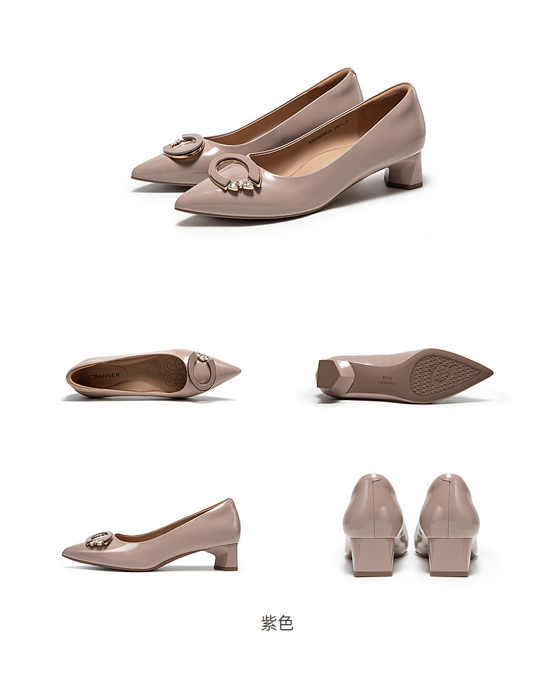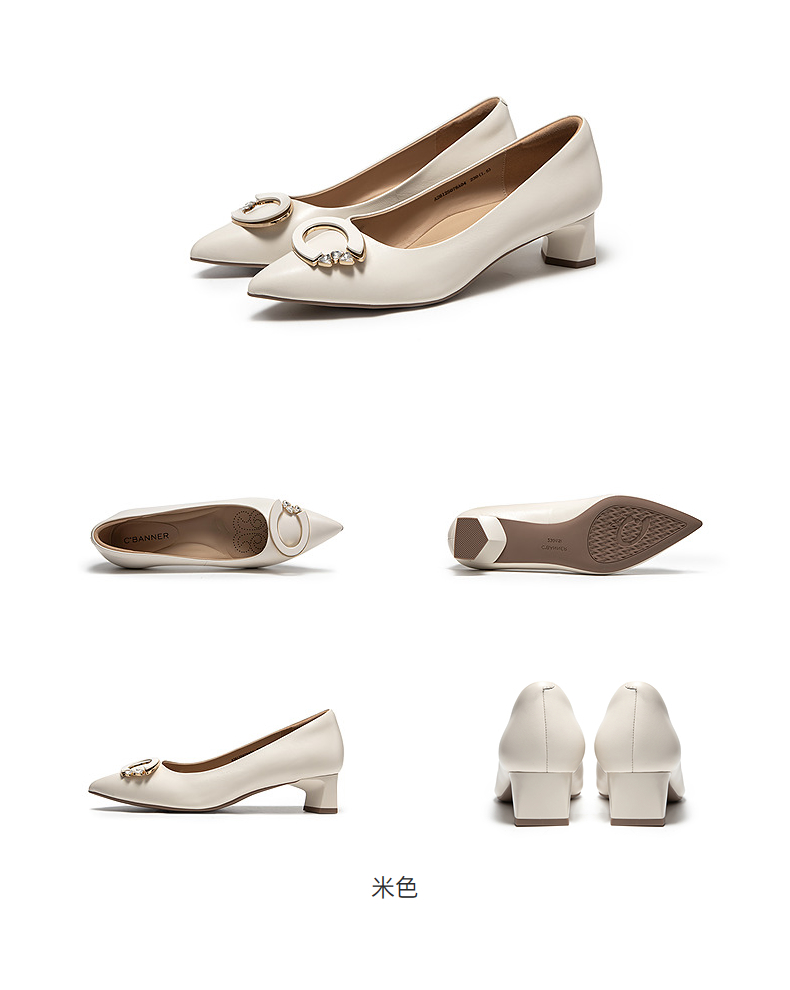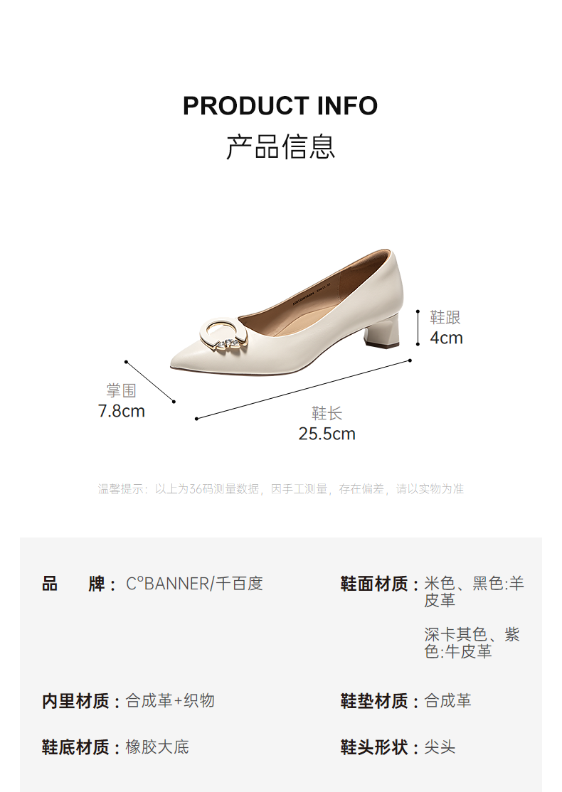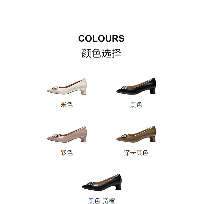 千百度裸色尖头粗高跟鞋女2026春季新款通勤舒适小皮鞋浅口单鞋A26125078