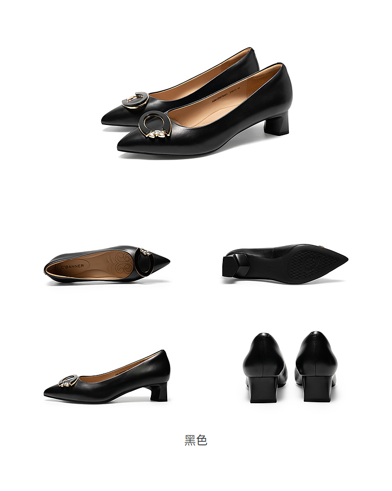 【静音系列】千百度小猫跟浅口单鞋女秋季通勤时装单鞋A24482913