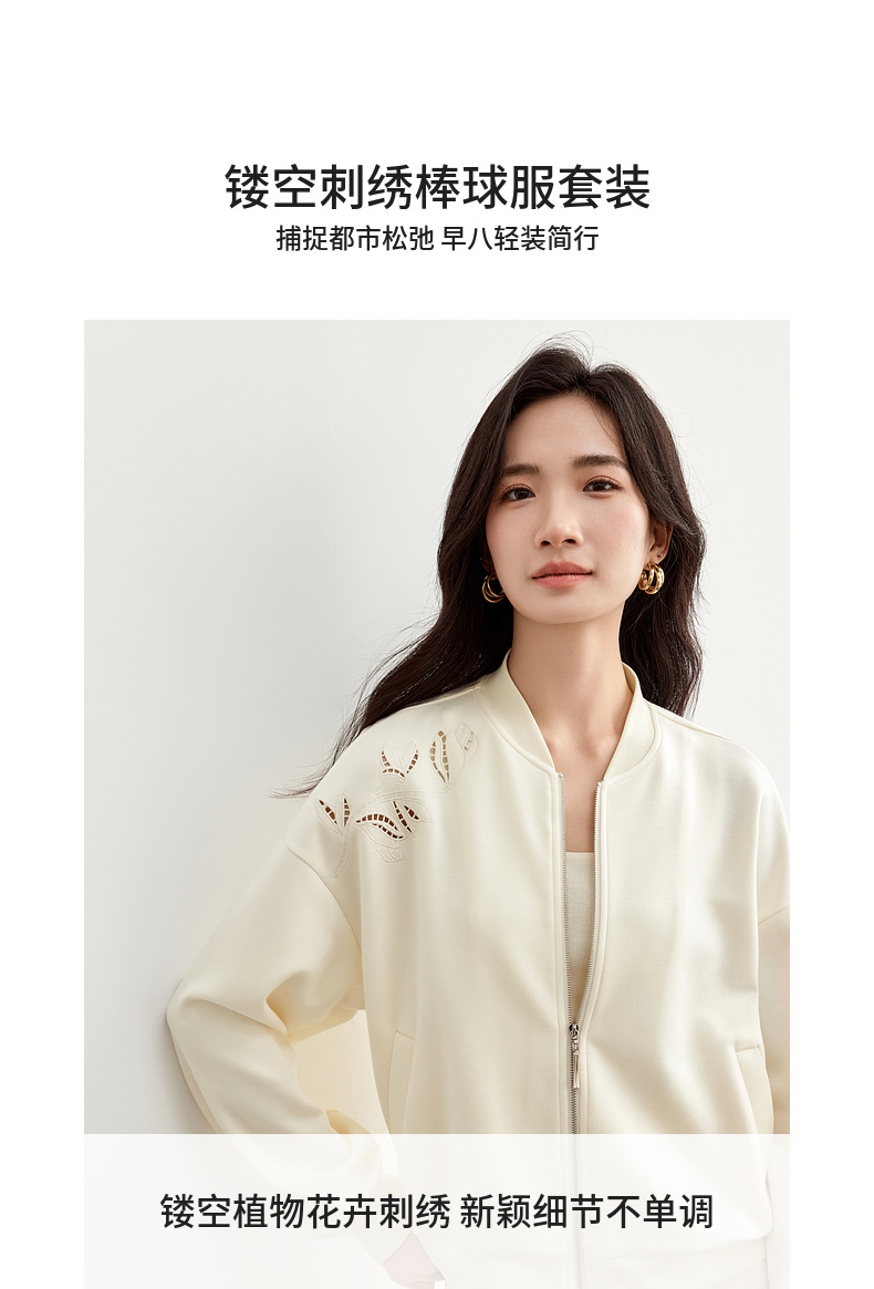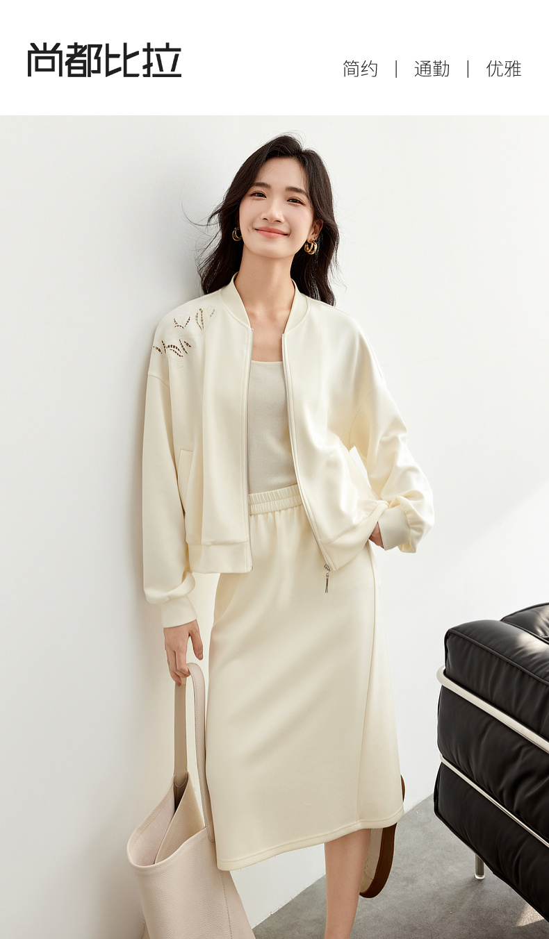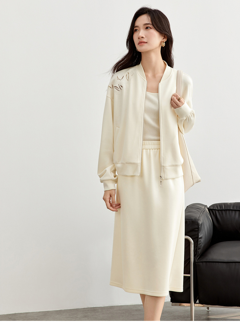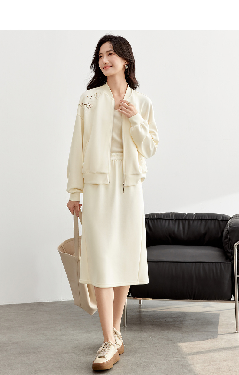 【内购】植物花卉宽松棒球服外套&松紧腰微A字中长半身裙-151Z58315