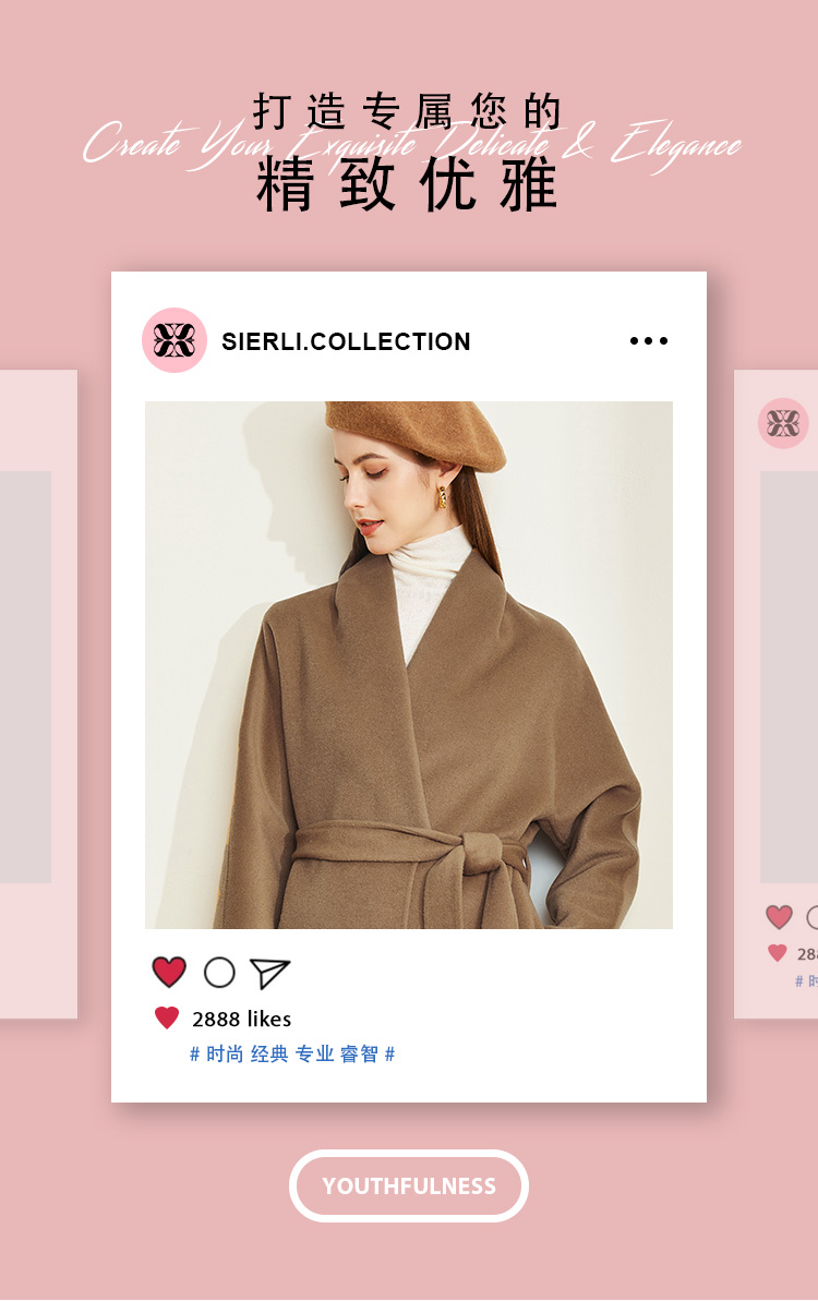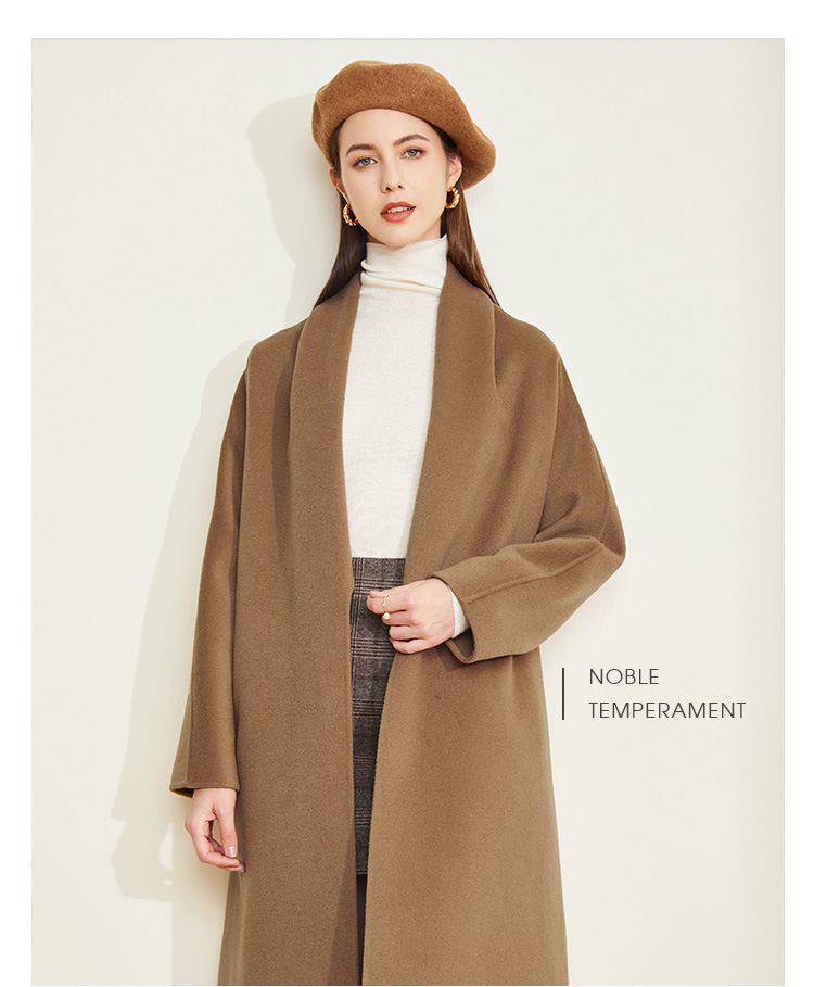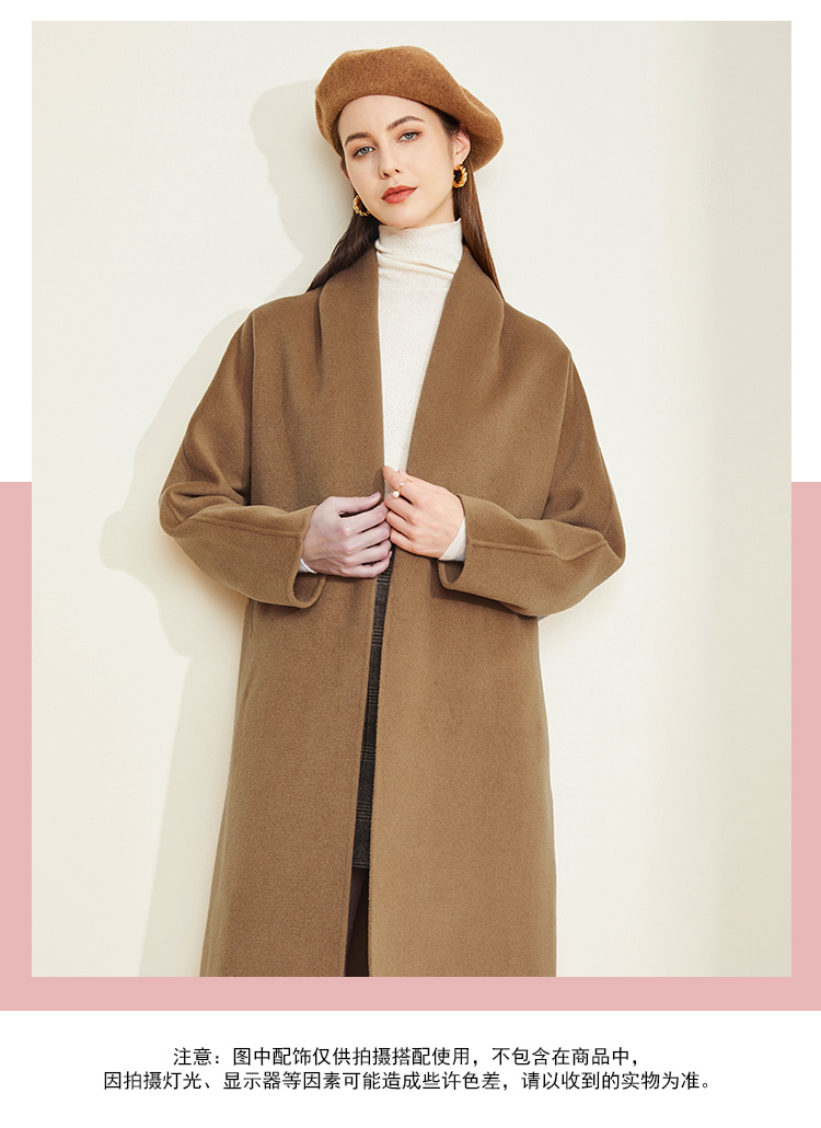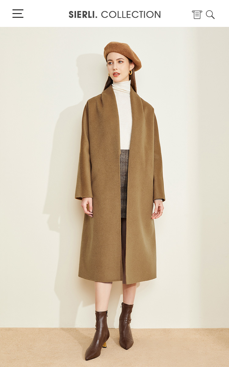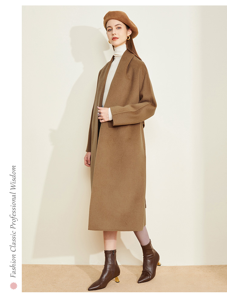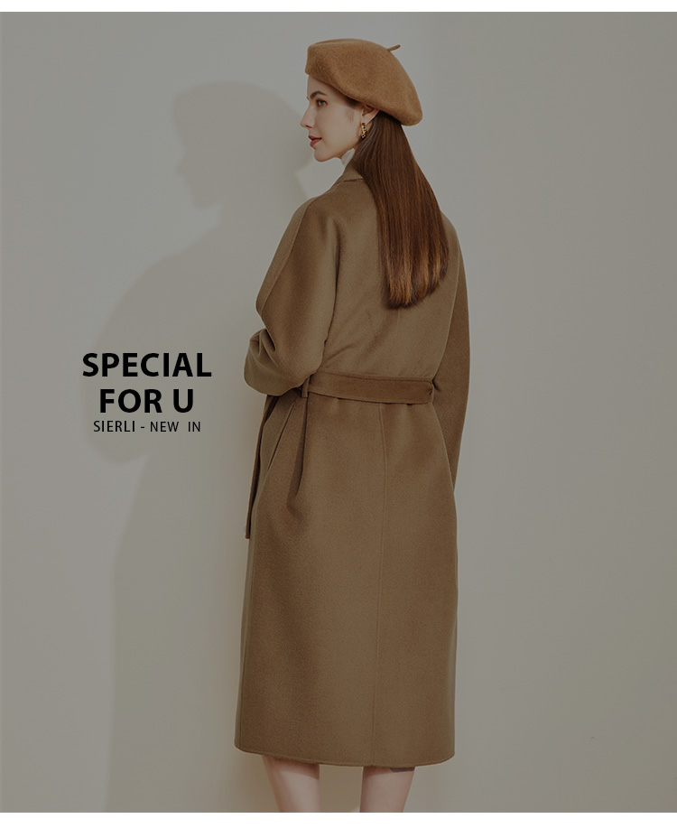 LH9Q8斯尔丽2021瑟俪秋冬新款纯色简约大方气质系带双面呢长款女式大衣