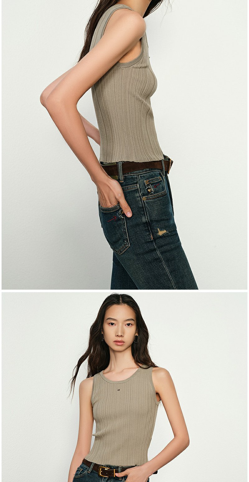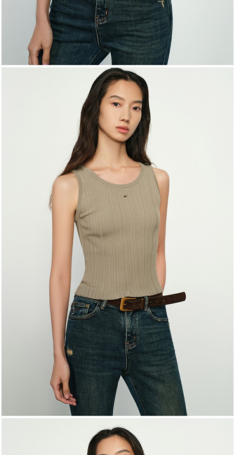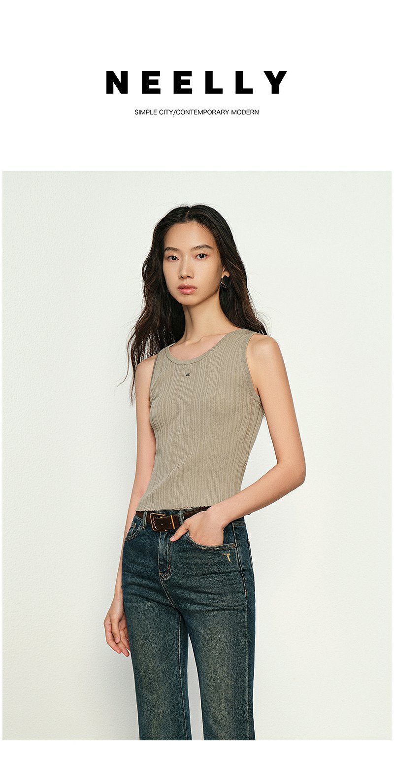 NEELLY纳俪商场同款春季新款坑条肌理针织背心女随性修身显瘦上衣N25022A01073