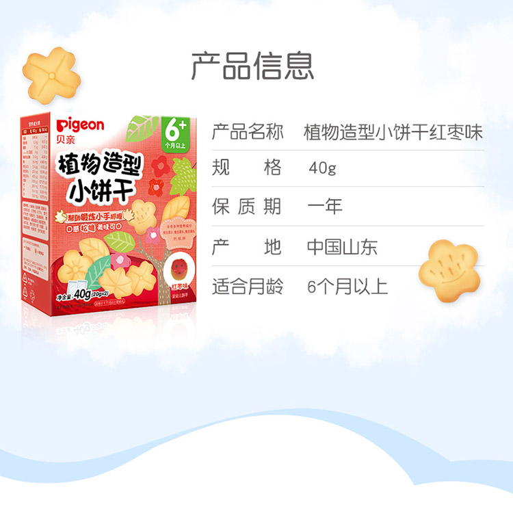 Pigeon贝亲婴儿辅食植物造型小饼干-红枣味40g(6个月以上)[FPLFB10]