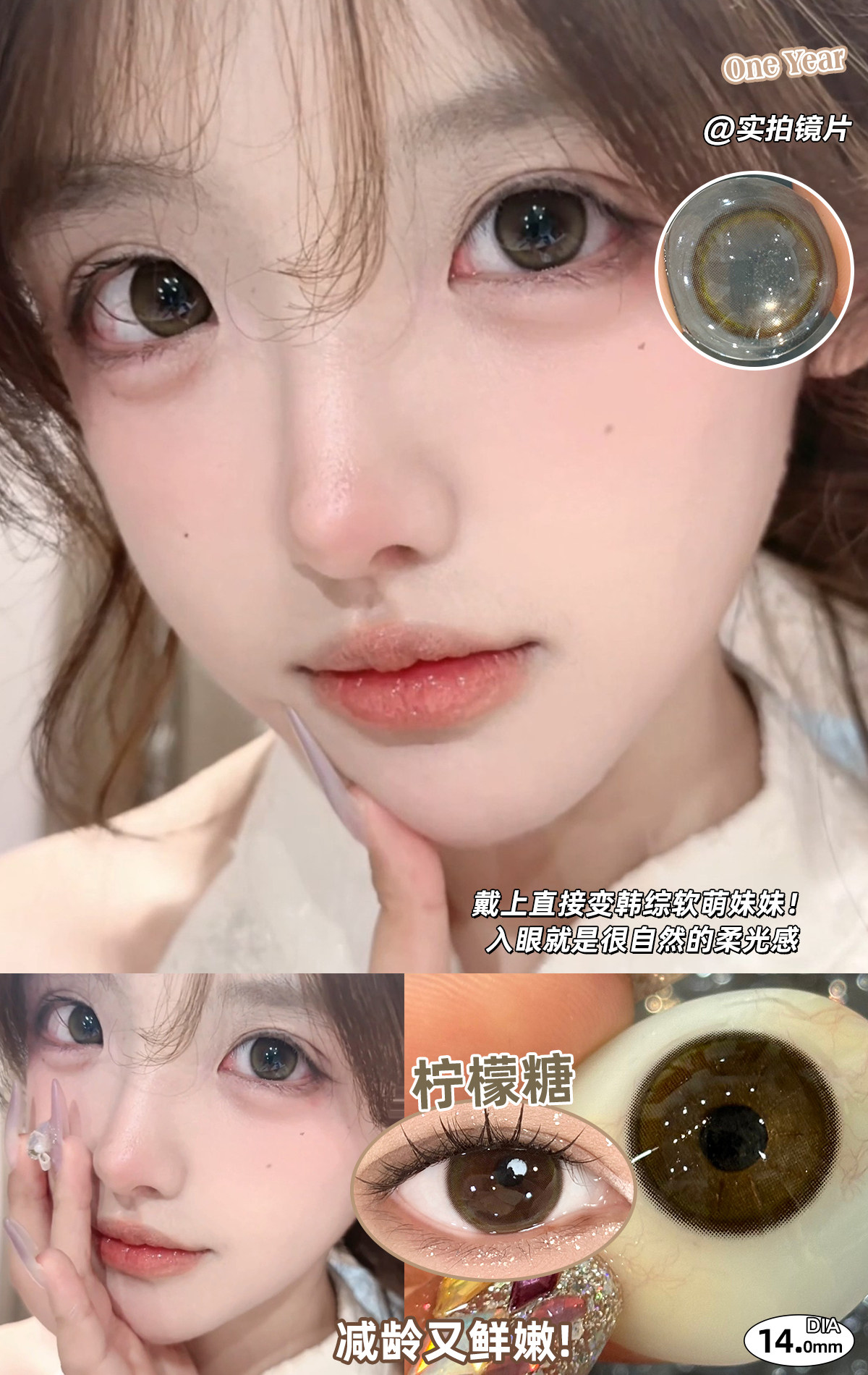 AnSerua 树莓酱/柠檬糖 14.0mm 含硅水凝胶 年抛 粉/棕绿