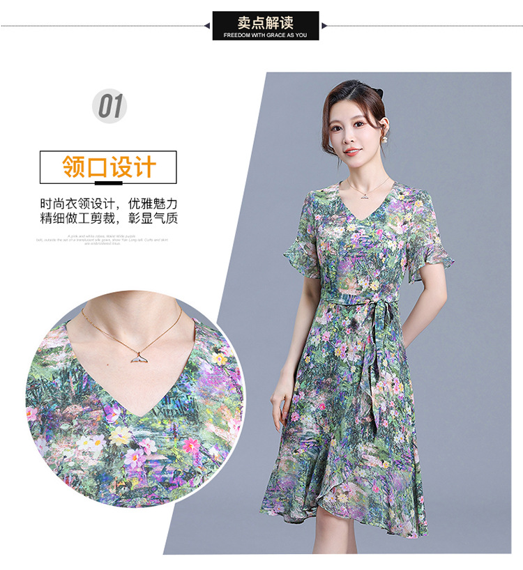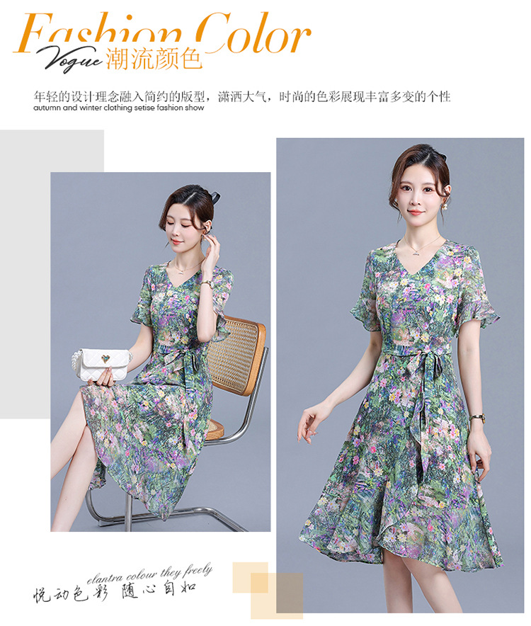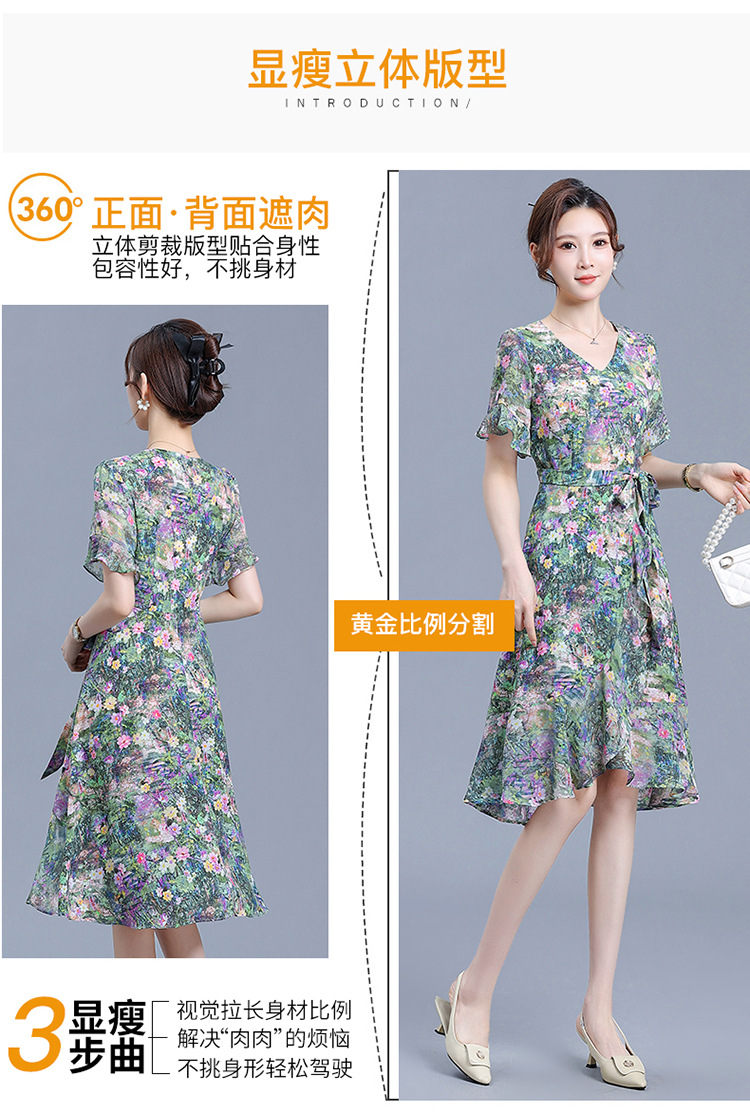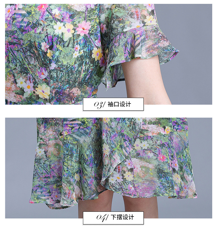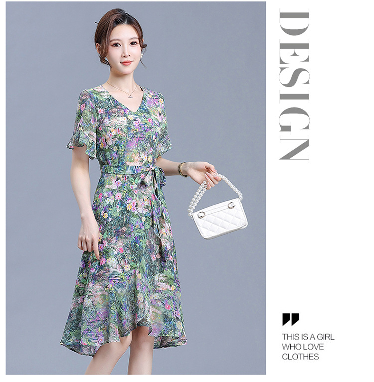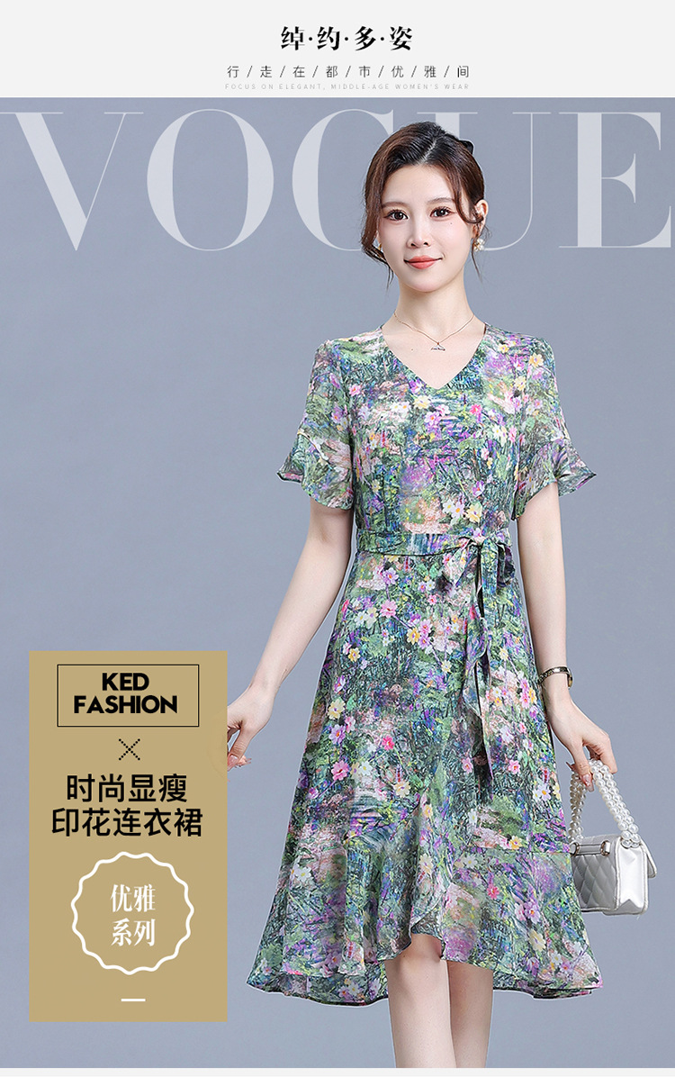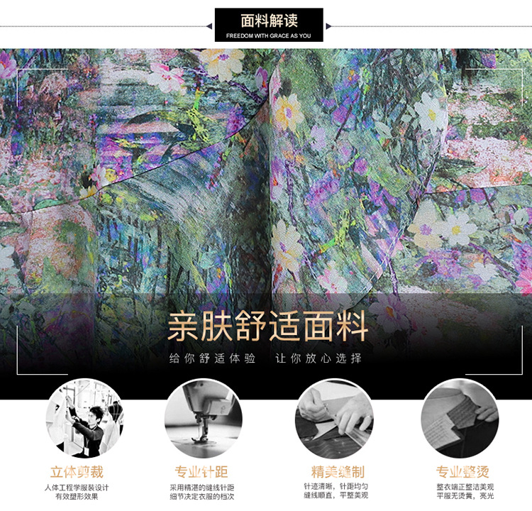 时尚不对称鱼尾裙,中长款印花连衣裙QYM-KED-6459-Y