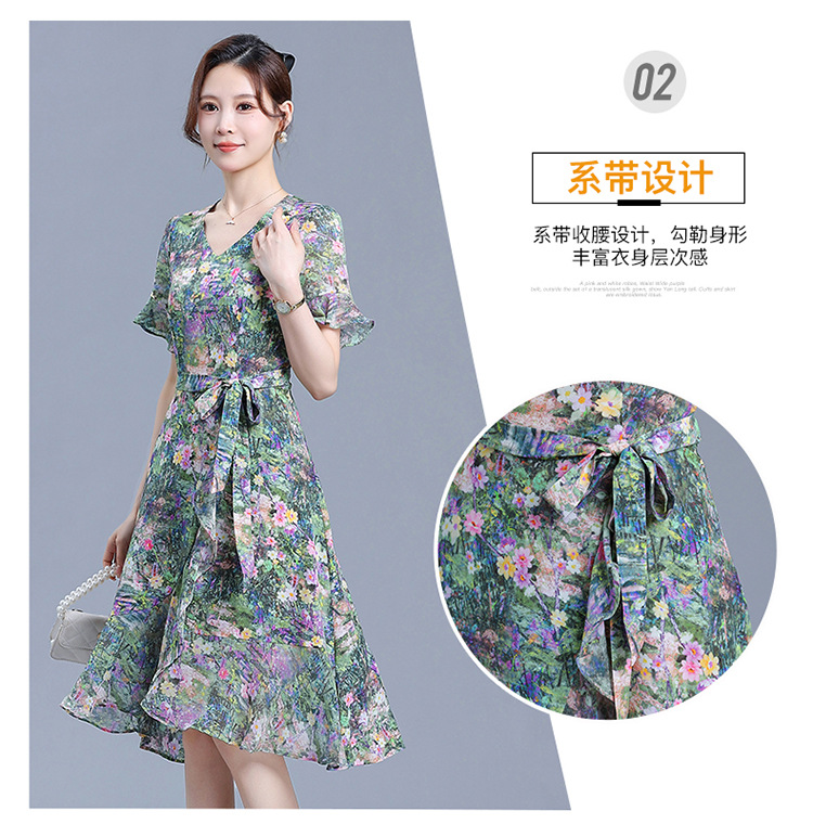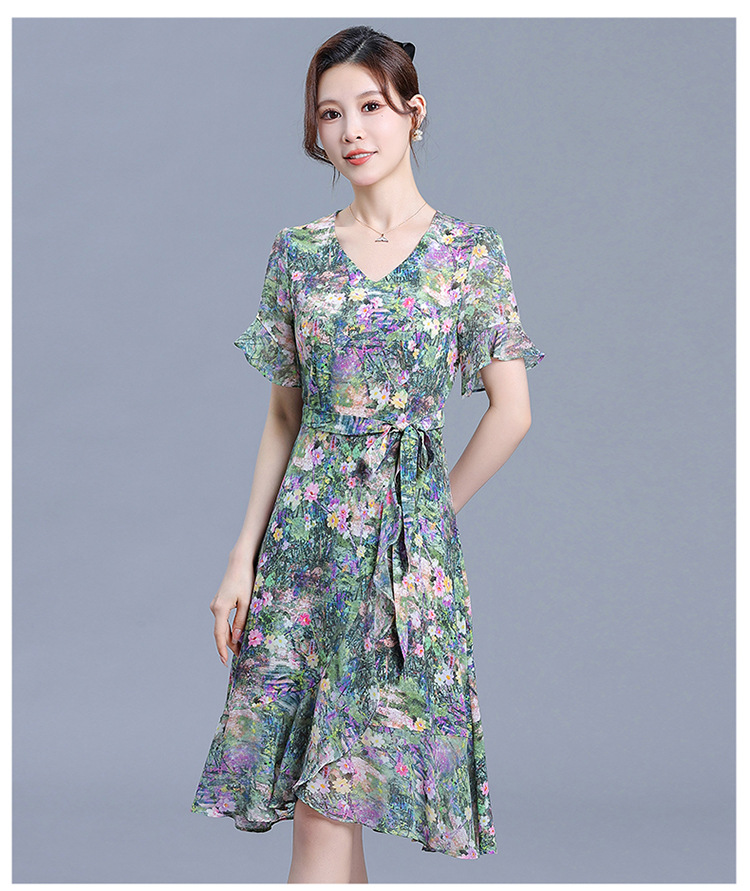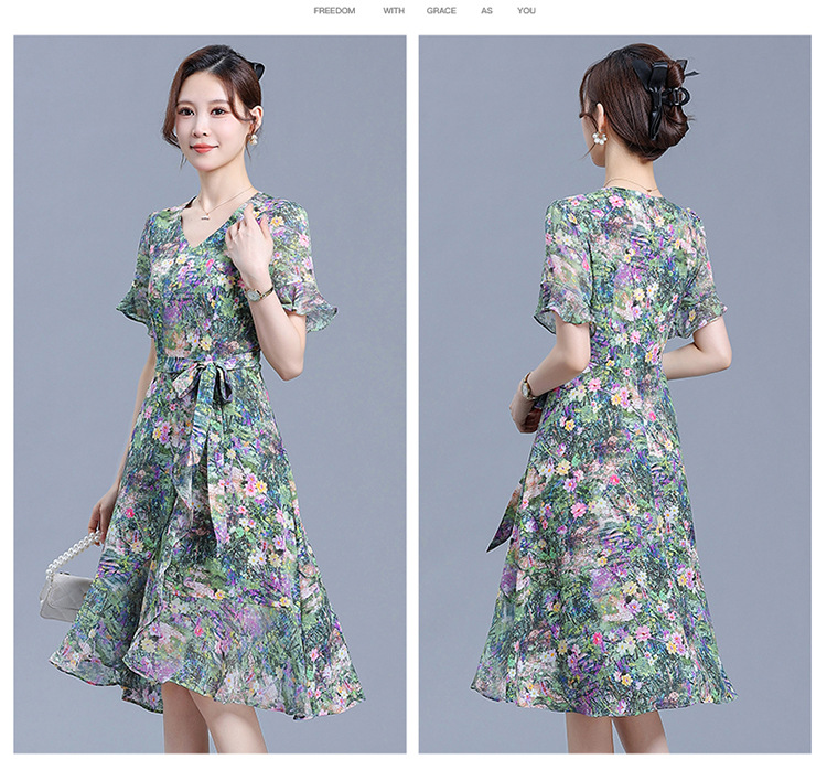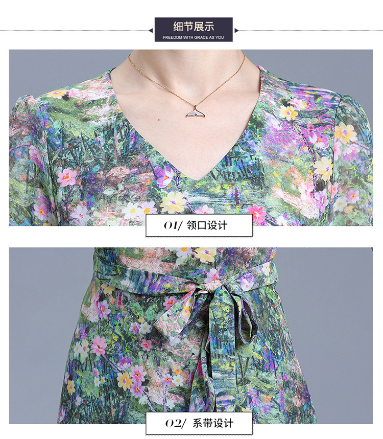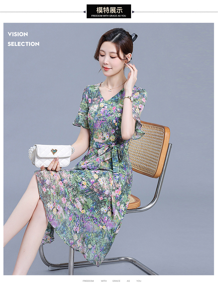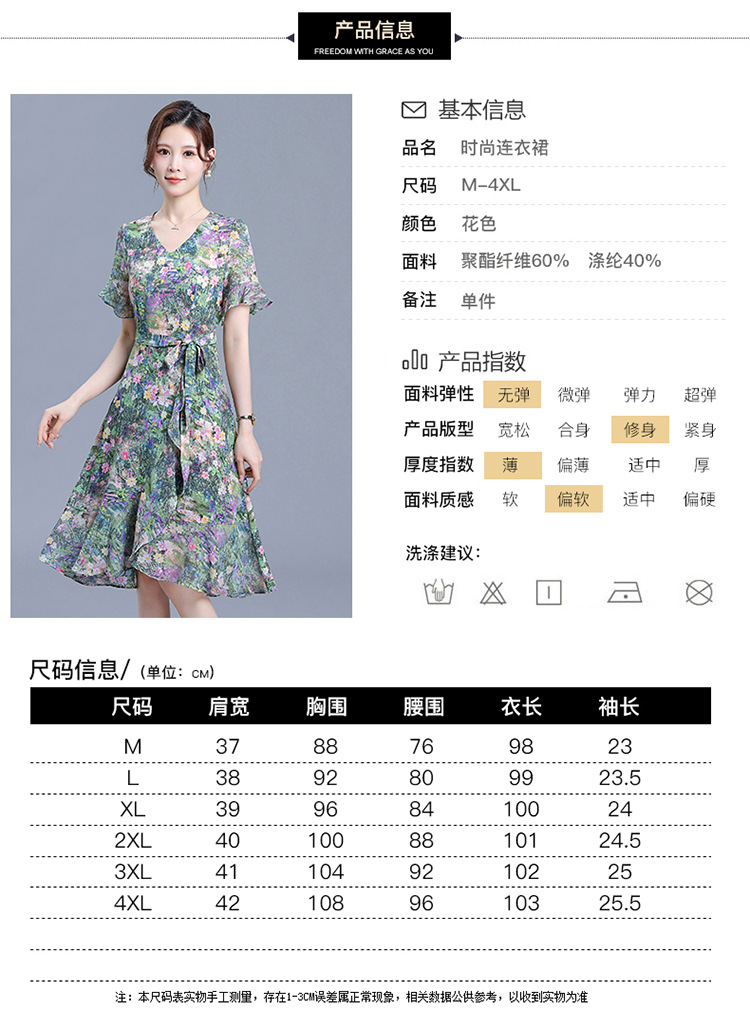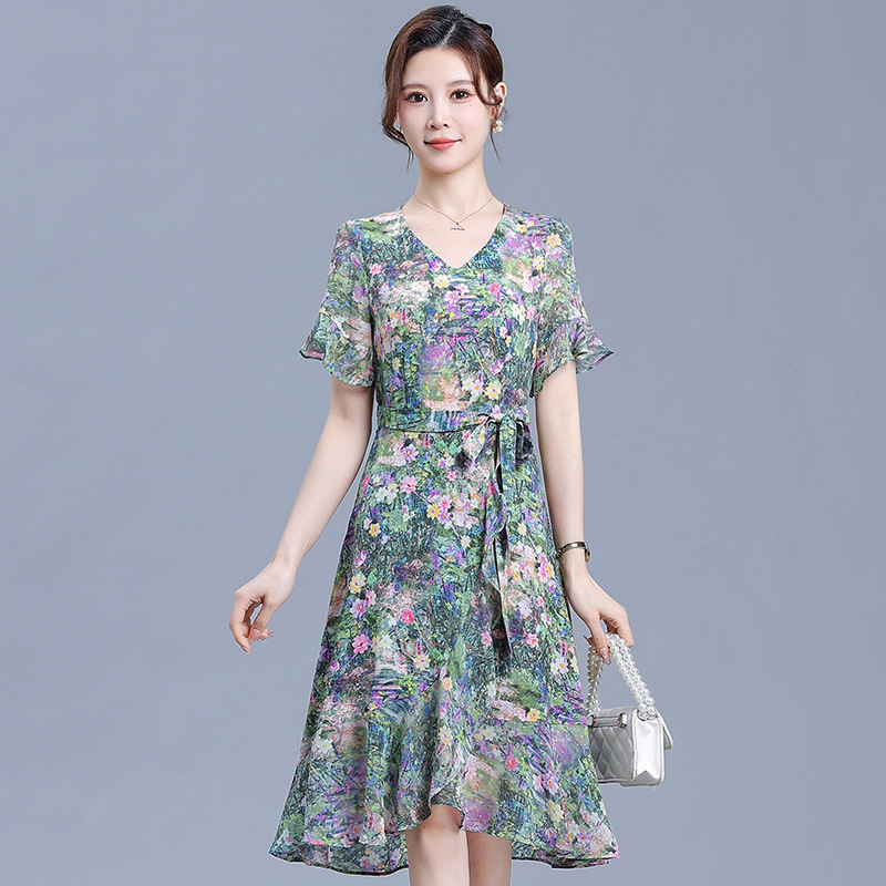 时尚不对称鱼尾裙,中长款印花连衣裙QYM-KED-6459-Y